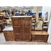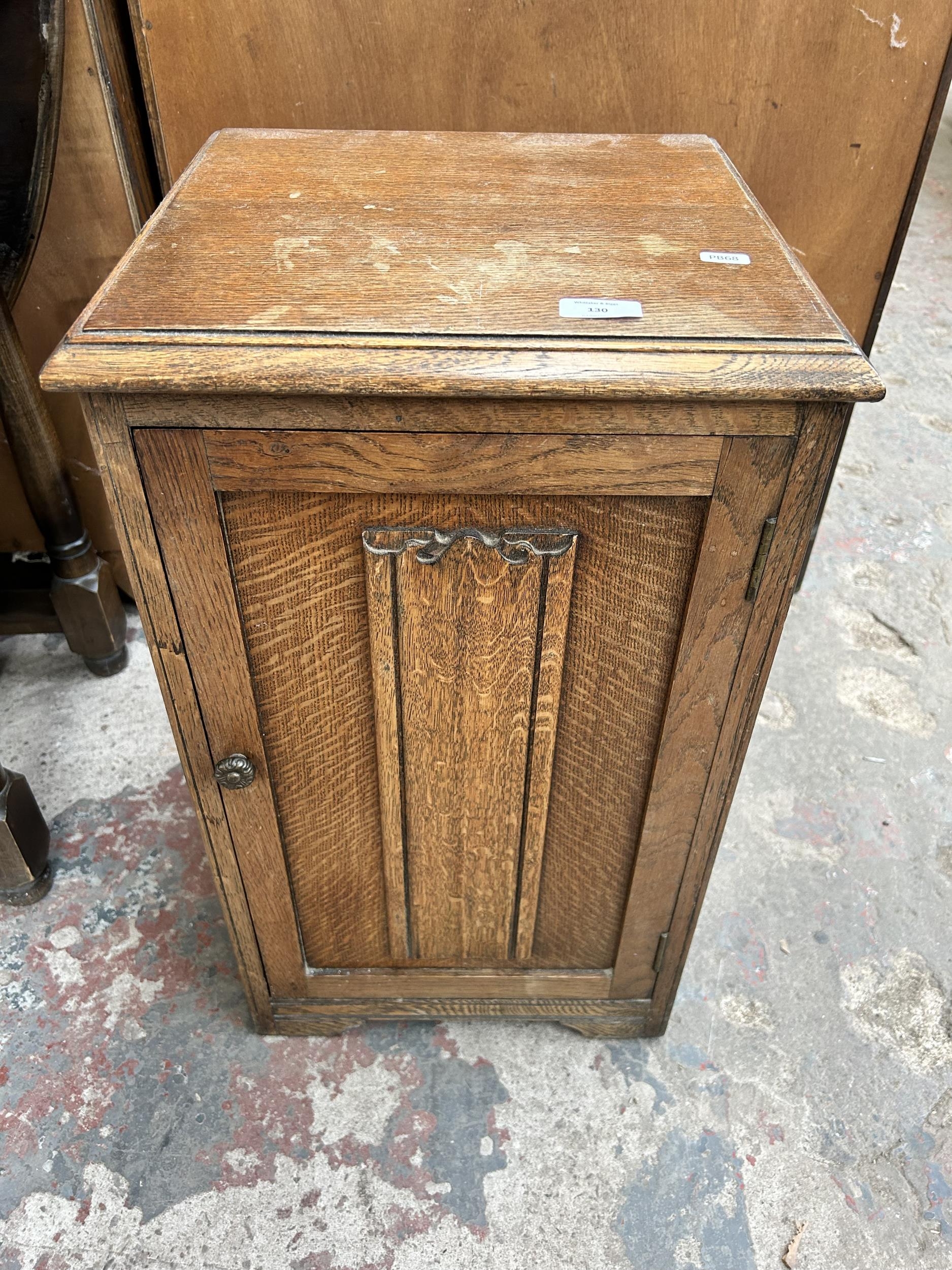 A mid 20th century oak linenfold bedside cabinet