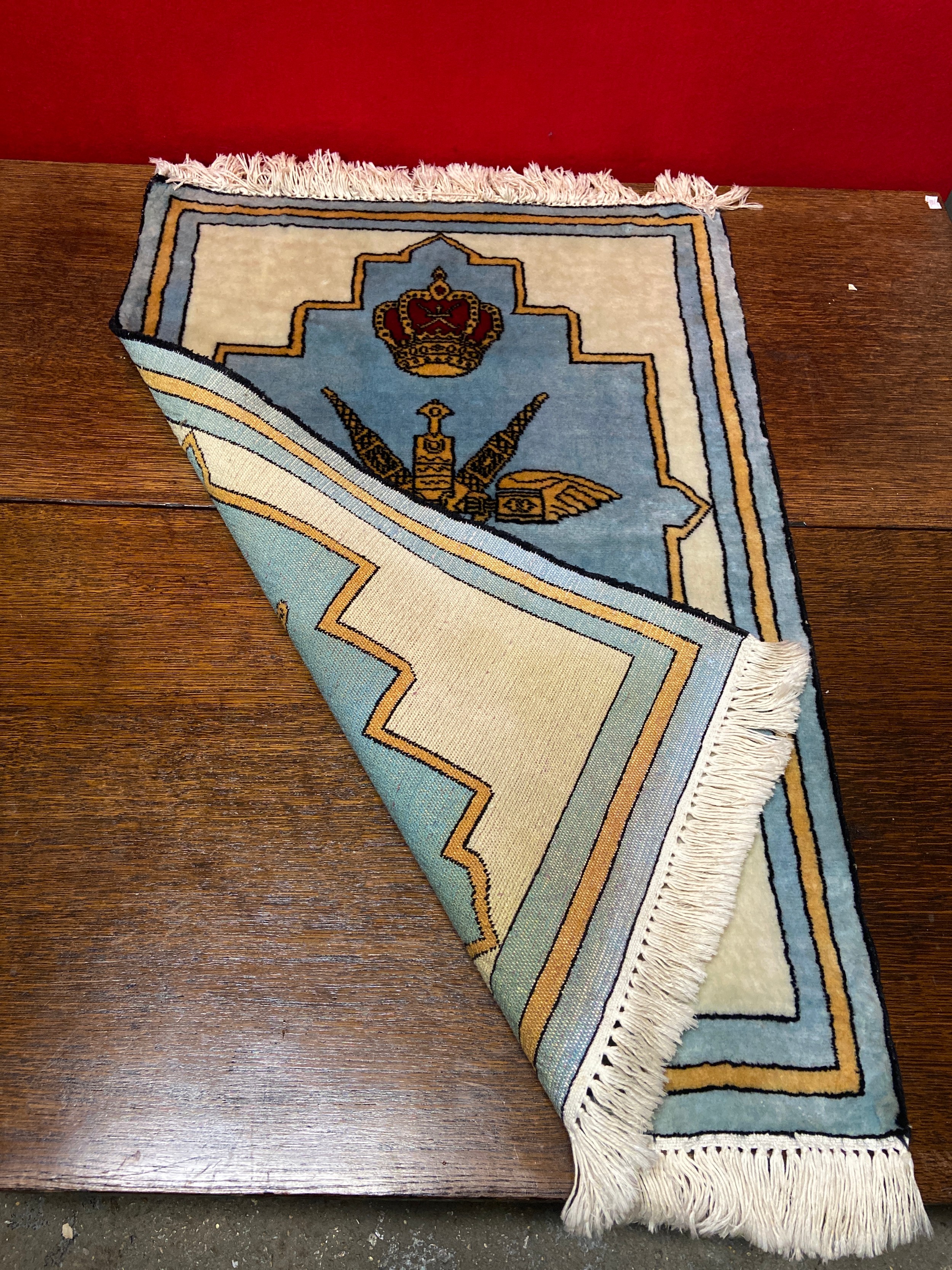 Provenance of Group Commander Wood (previous lot), brought back after serving in the region. Approx 97cm (incl fringe) x 59cm.