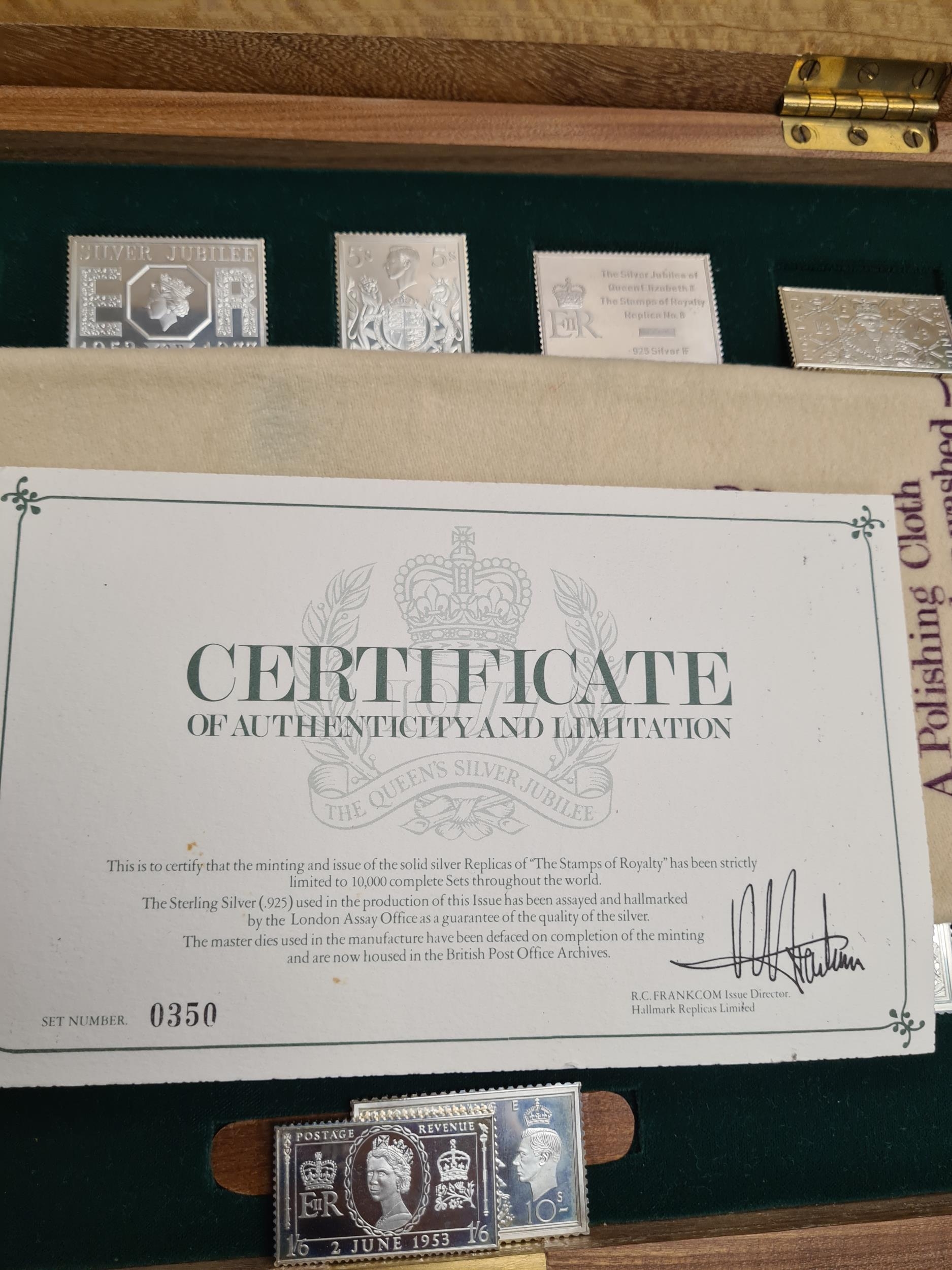 The Stamps of Royalty, a set of 25 silver stamps, in a fitted case, with certificates, and with the compliments of Hallmark Replicas Ltd.' Condition Report: No obvious damage