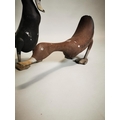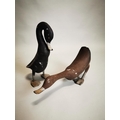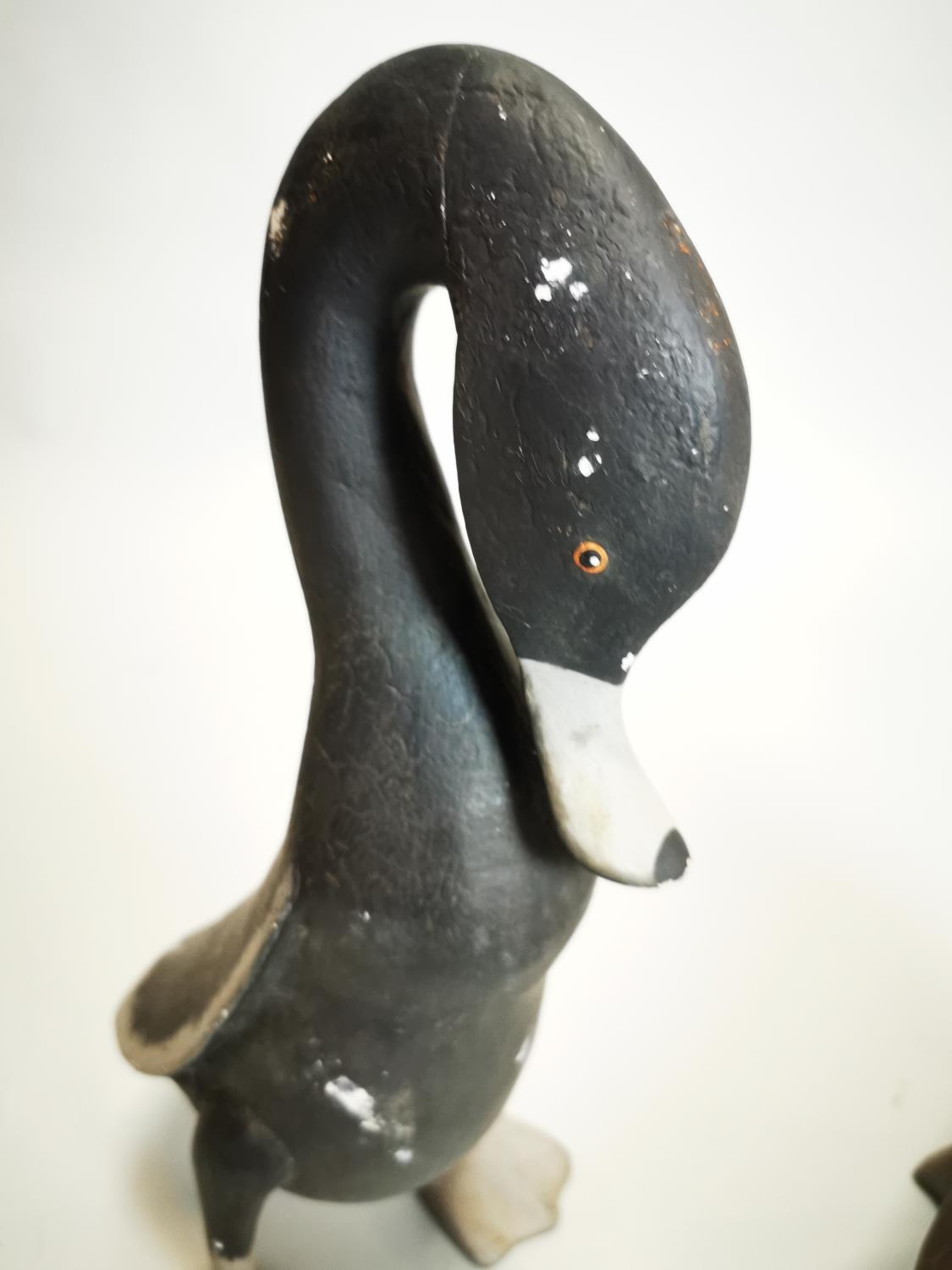 Pair of decorative hand painted metal ducks {38 cm H and 24 cm H}.
