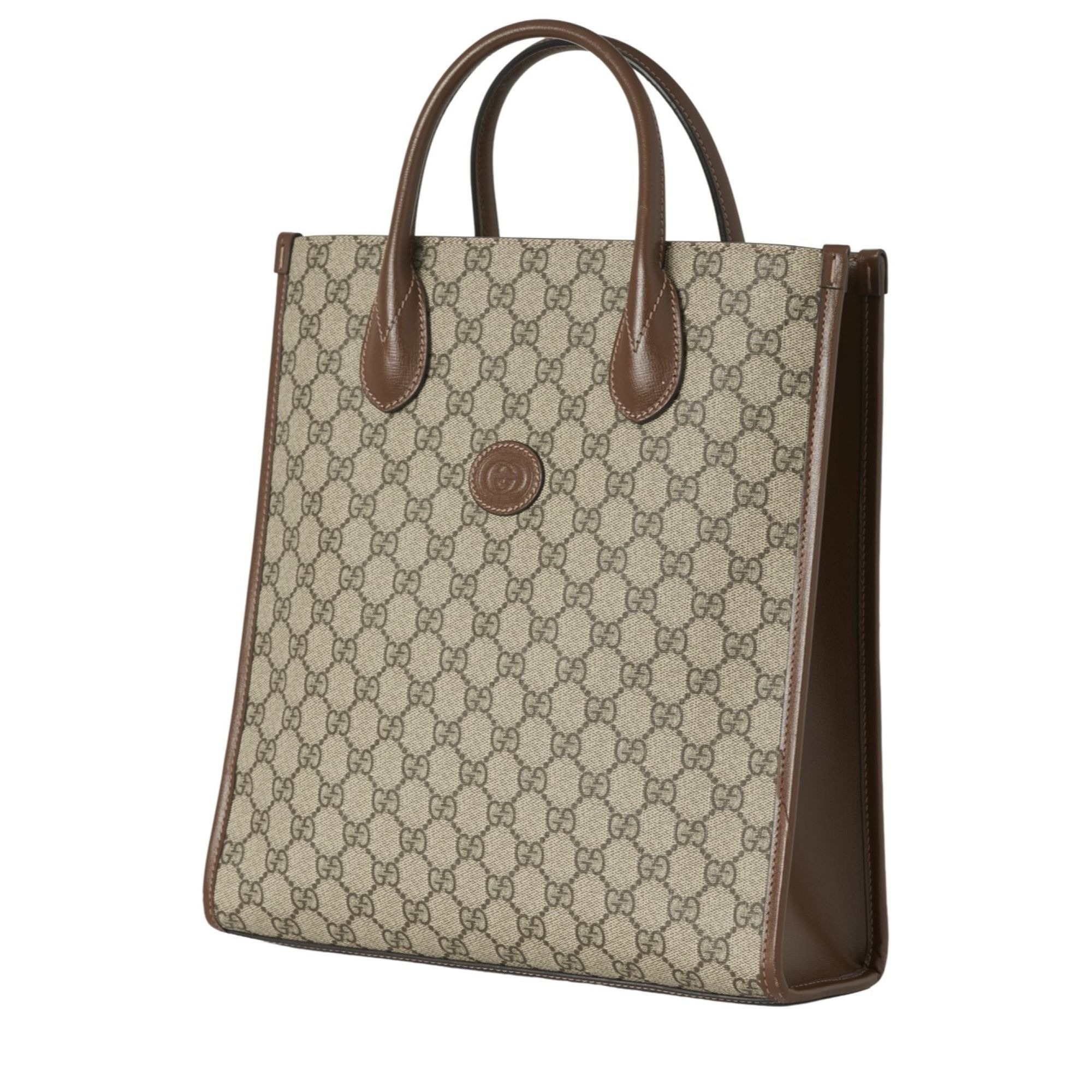 Gucci, a Supreme GG tote bag, featuring a GG coated canvas exterior with brown leather trim, dual looping top handles, detachable crossbody strap and a lobster-clip fastening, measuring 9.5 by 30 by 33cm