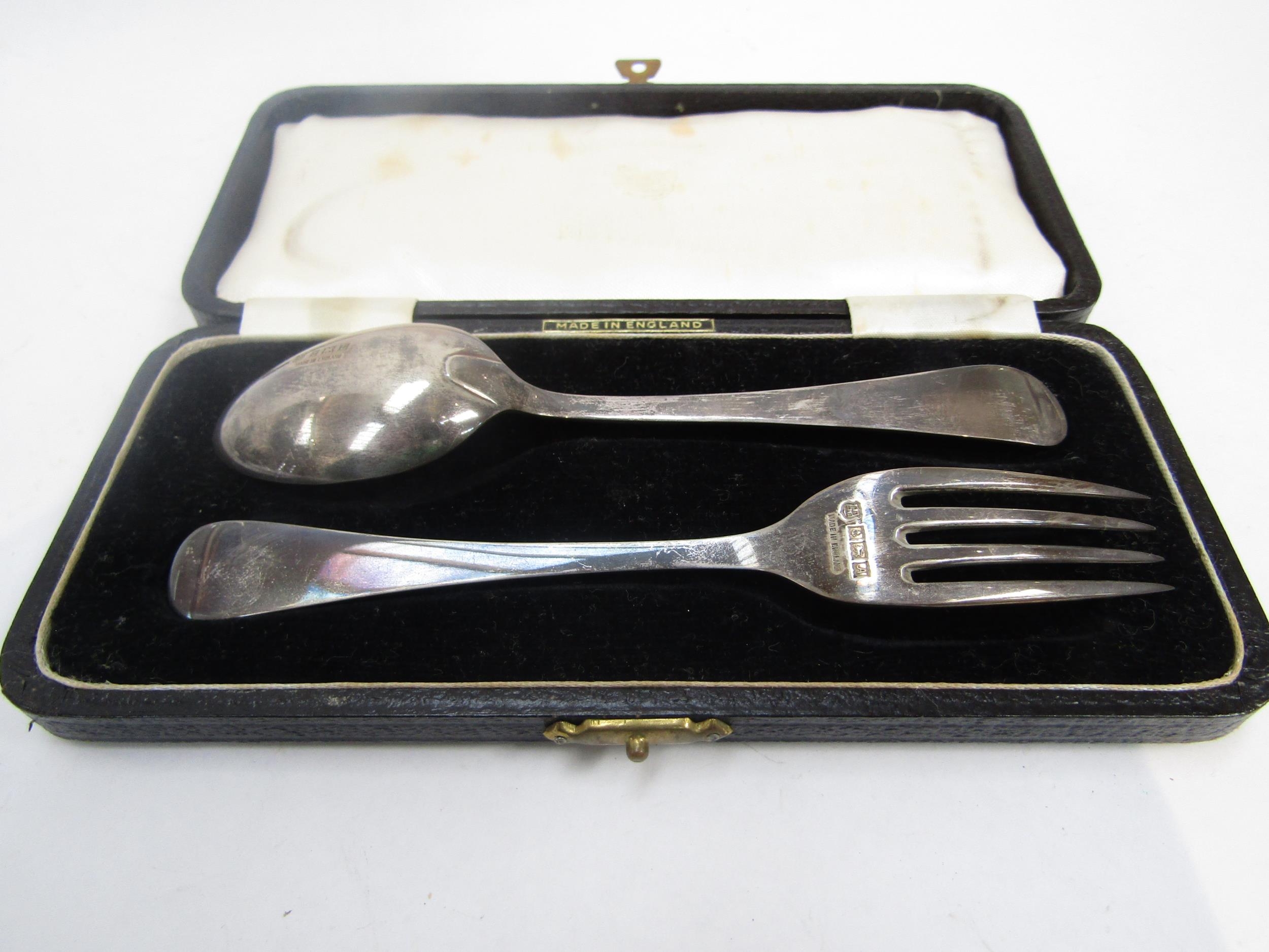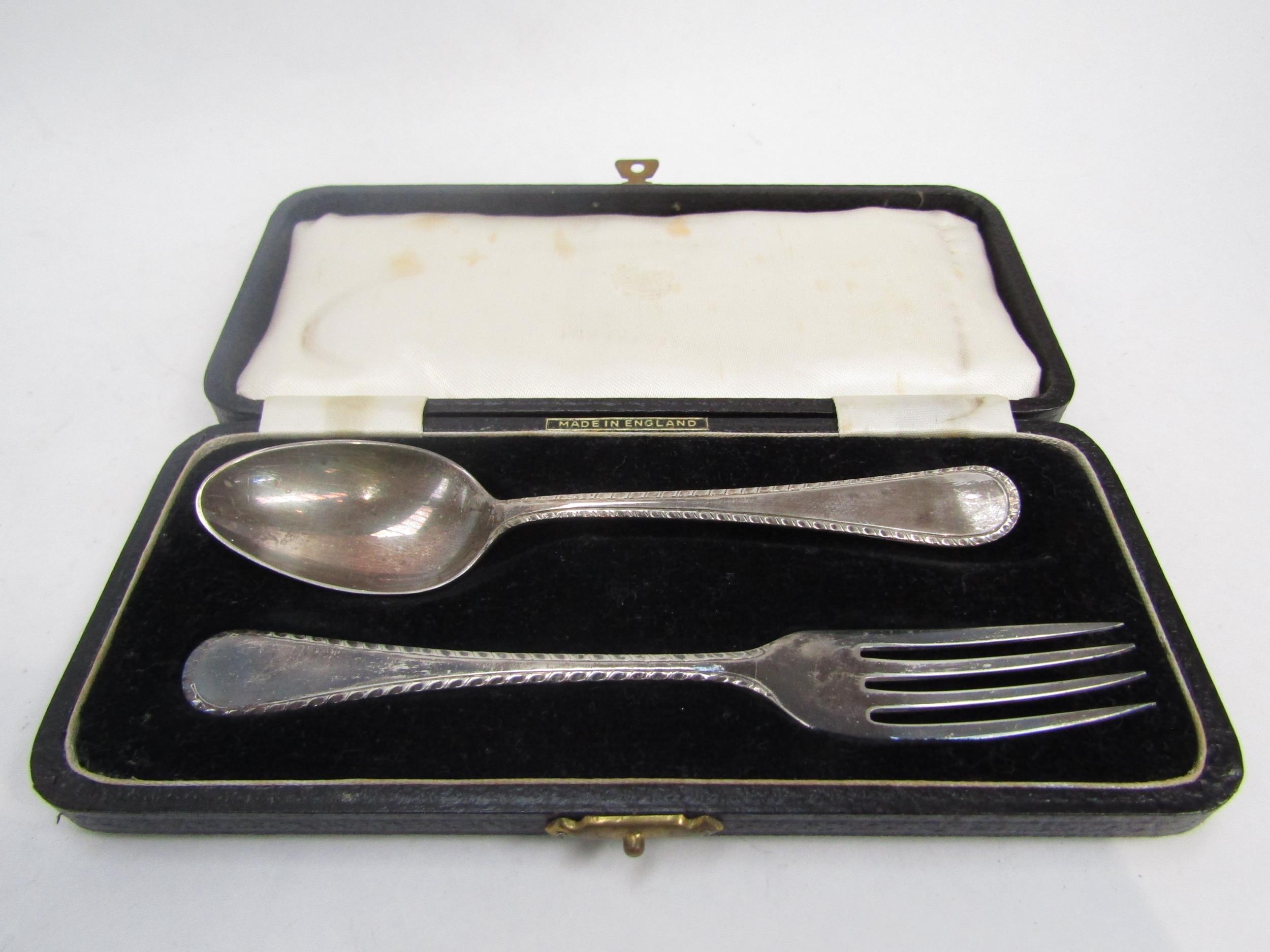 A silver two piece Christening set by Barker Brothers silver Ltd Birmingham 1951, 51g