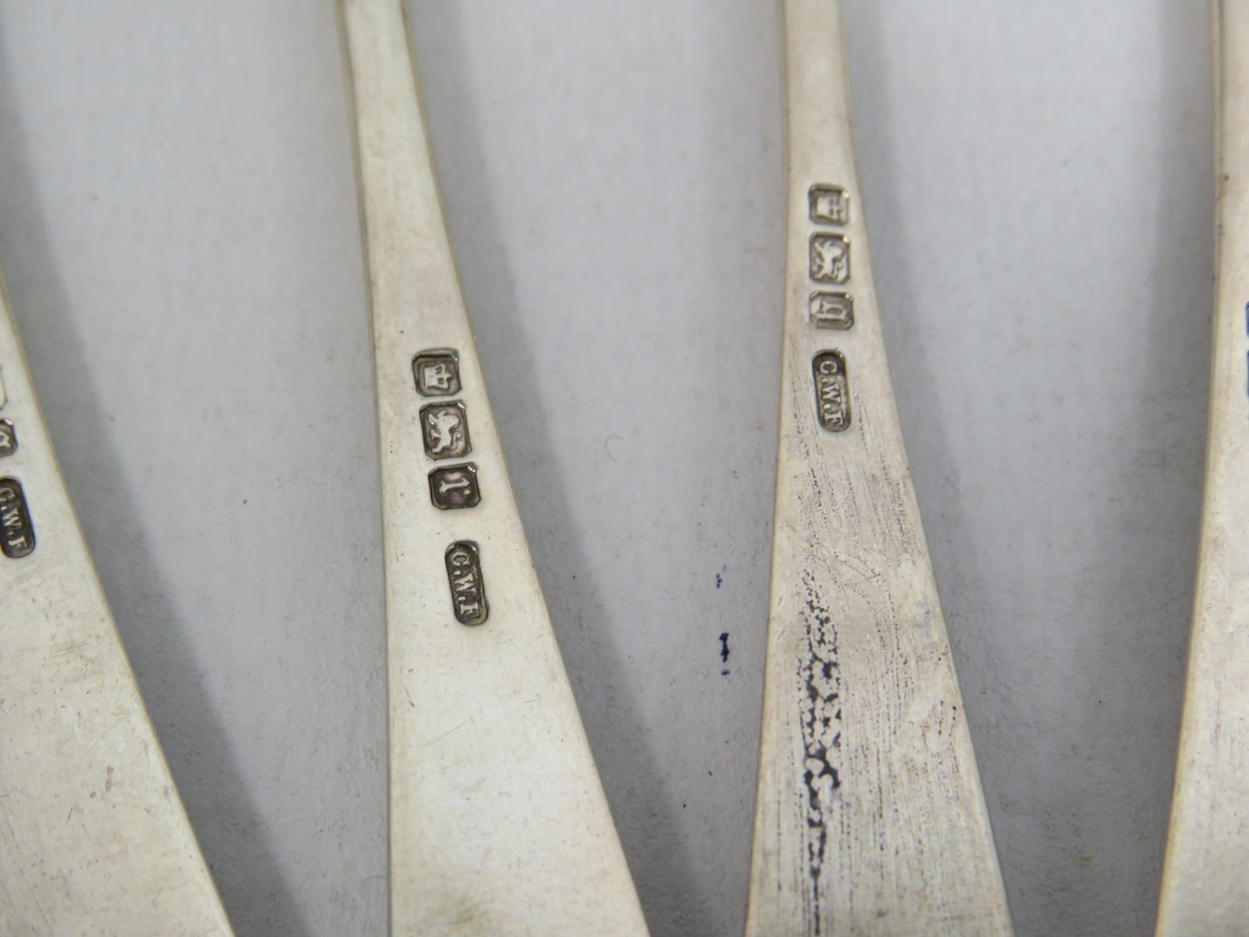 6 Sheffield sterling silver C.W Fletcher and son Coffee spoons 1909, 95.7 grams.