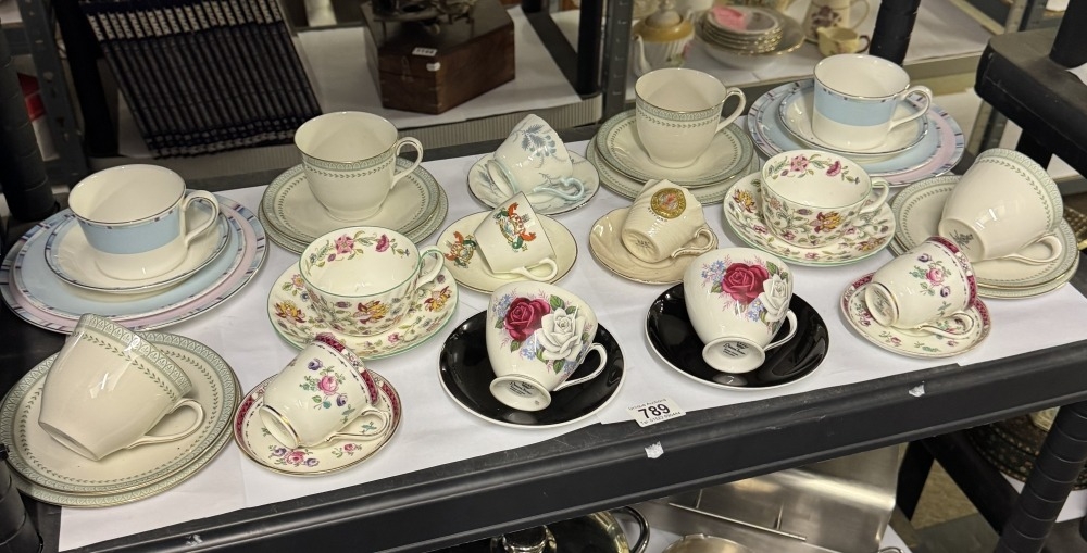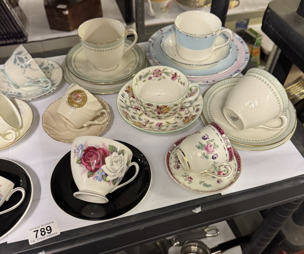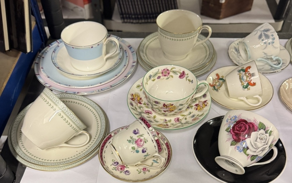 A quantity of trios and cups and saucers including Royal Doulton, Wedgwood, Minton etc