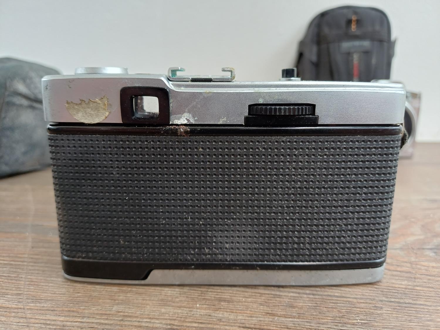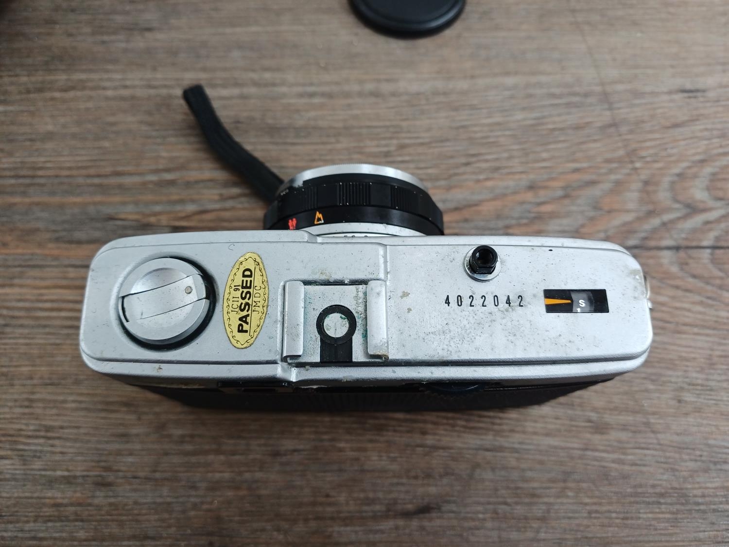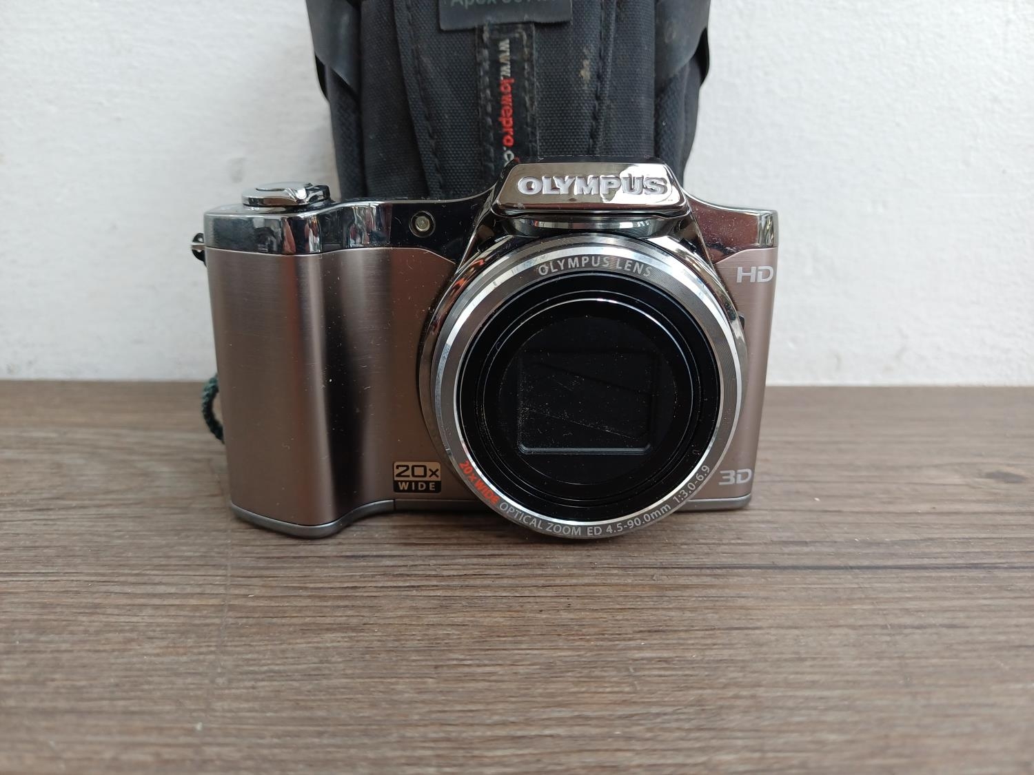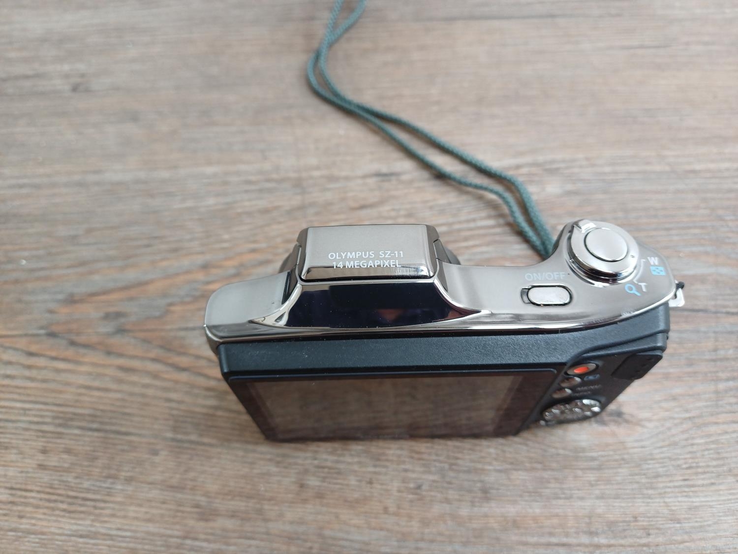 Two cased compact cameras, one Olympus Trip 35 fully-automatic 35mm with lens cap and wrist strap and one Olympus SZ-11 14mp CCD sensor digital