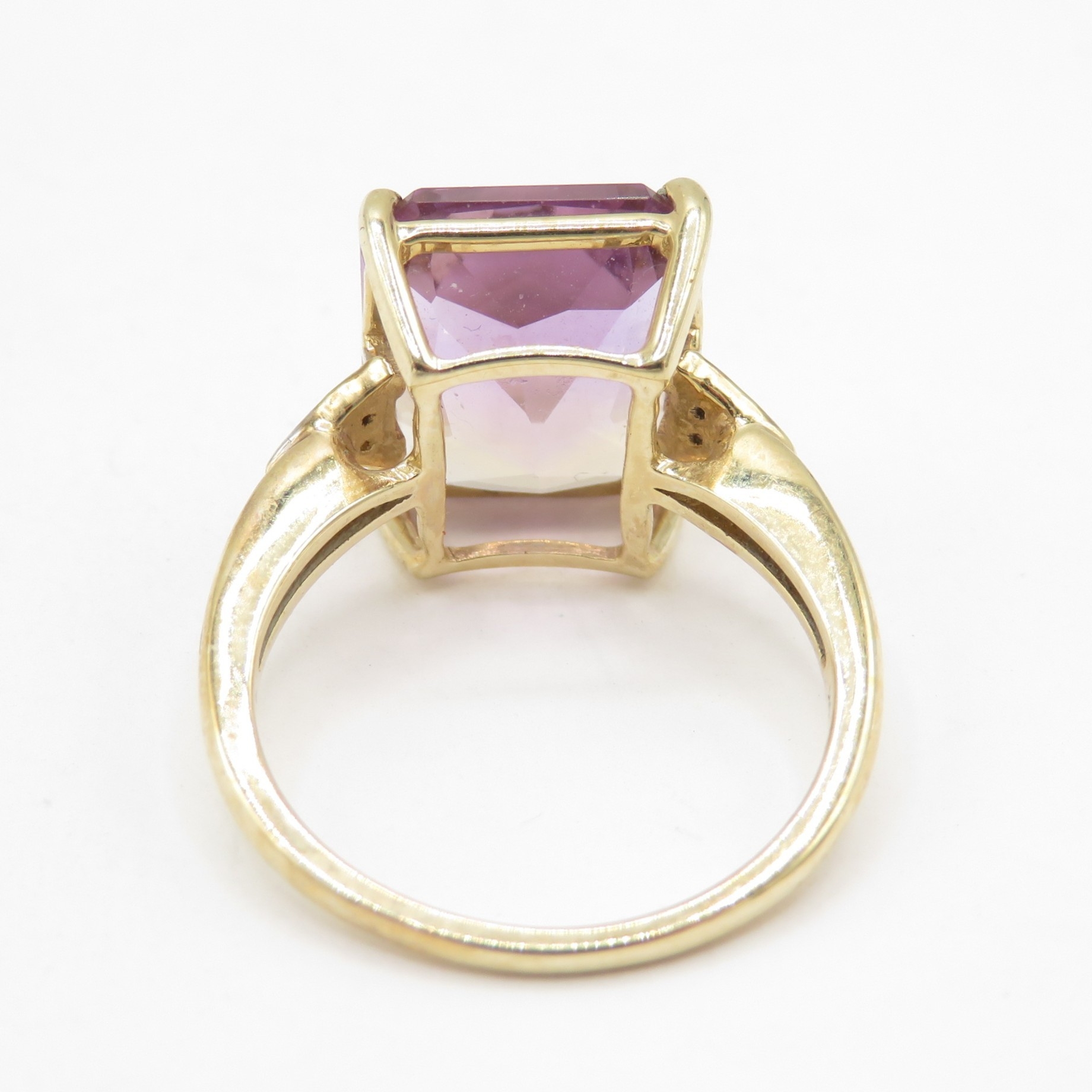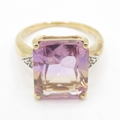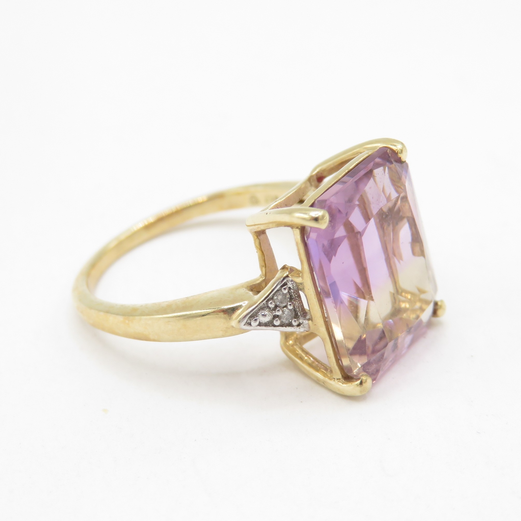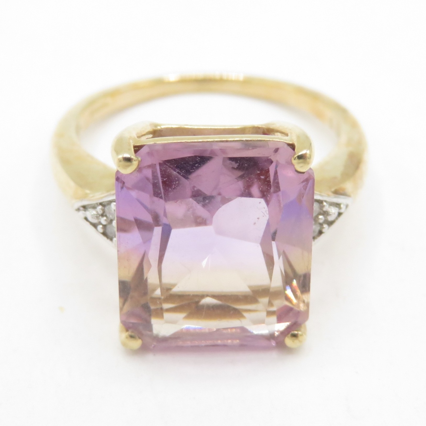 9ct gold colour changing quartz solitaire ring with diamond shoulders (3.1g) Size J 1/2
