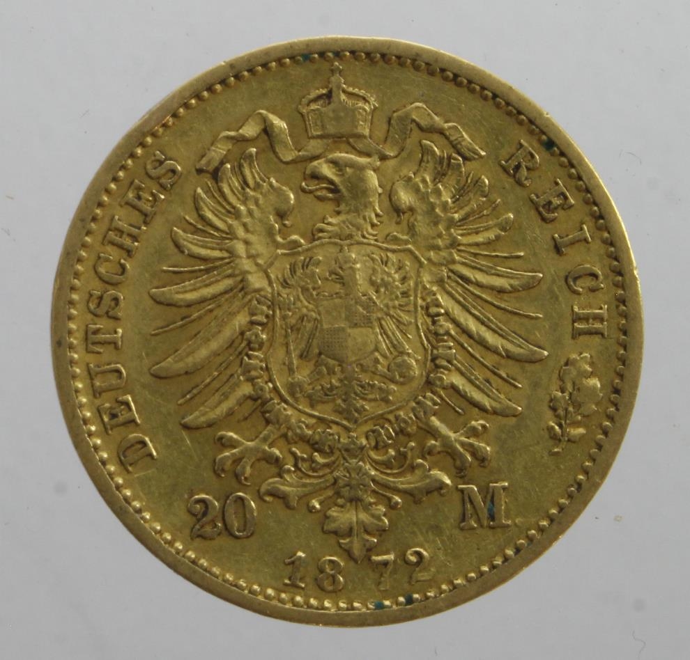 German States, Prussia gold 20 Mark 1872B, VF (0.2305 troy oz AGW)