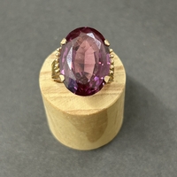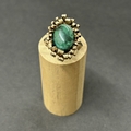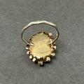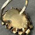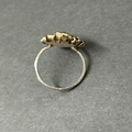 An unusually constructed ring, the shank marked for 9ct white gold, the top with scrolls of yellow metal and green stone set, approx. size R, weight approx. 6g