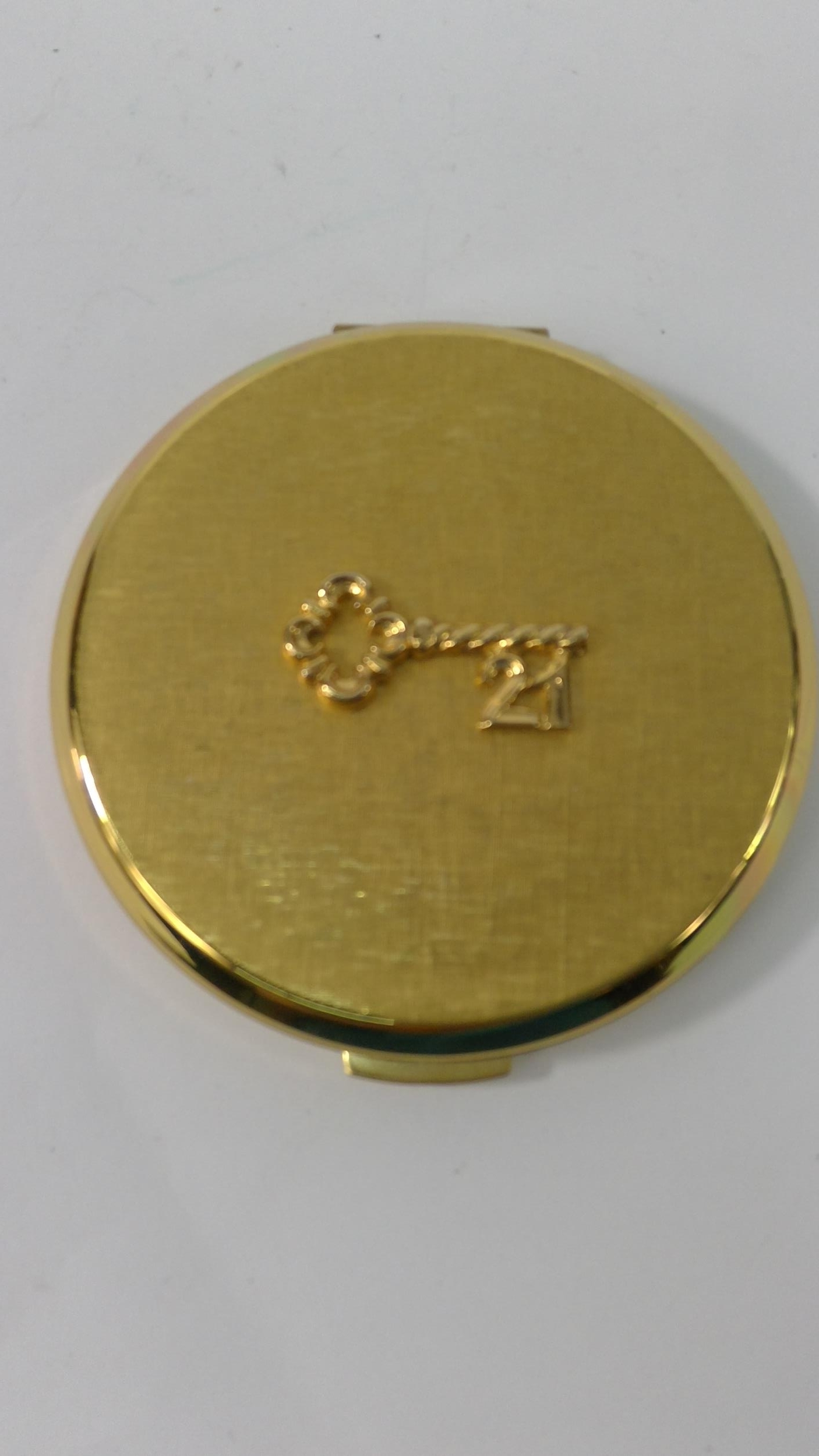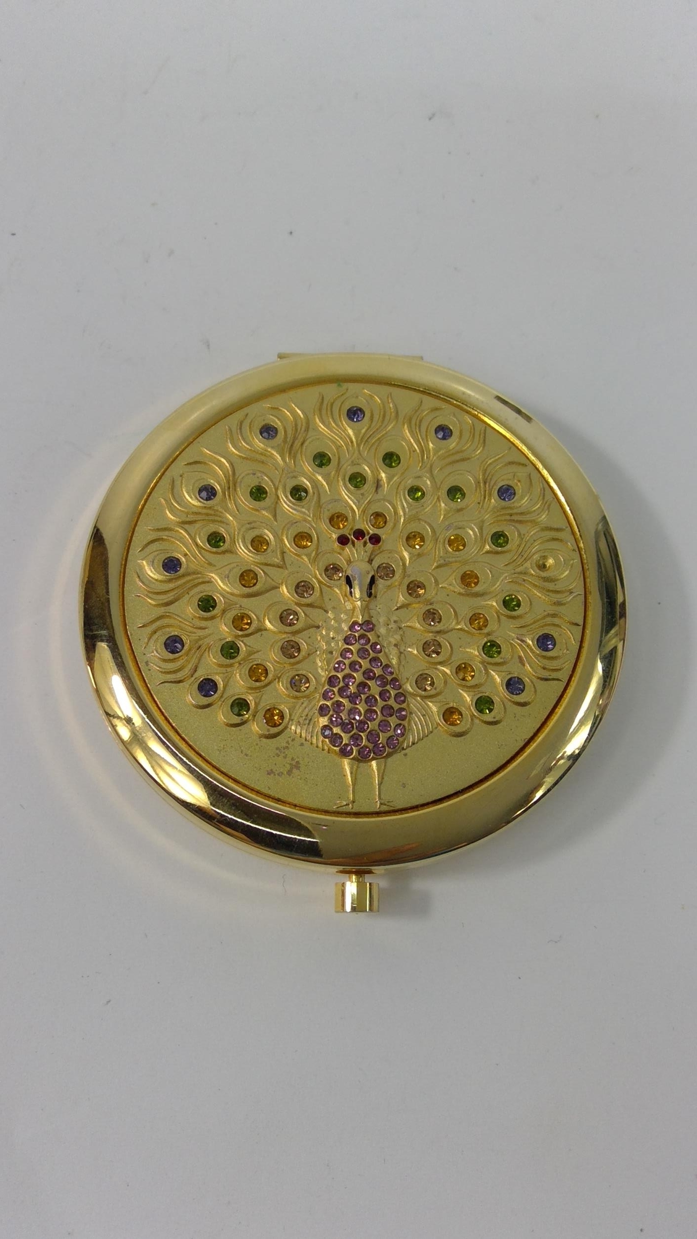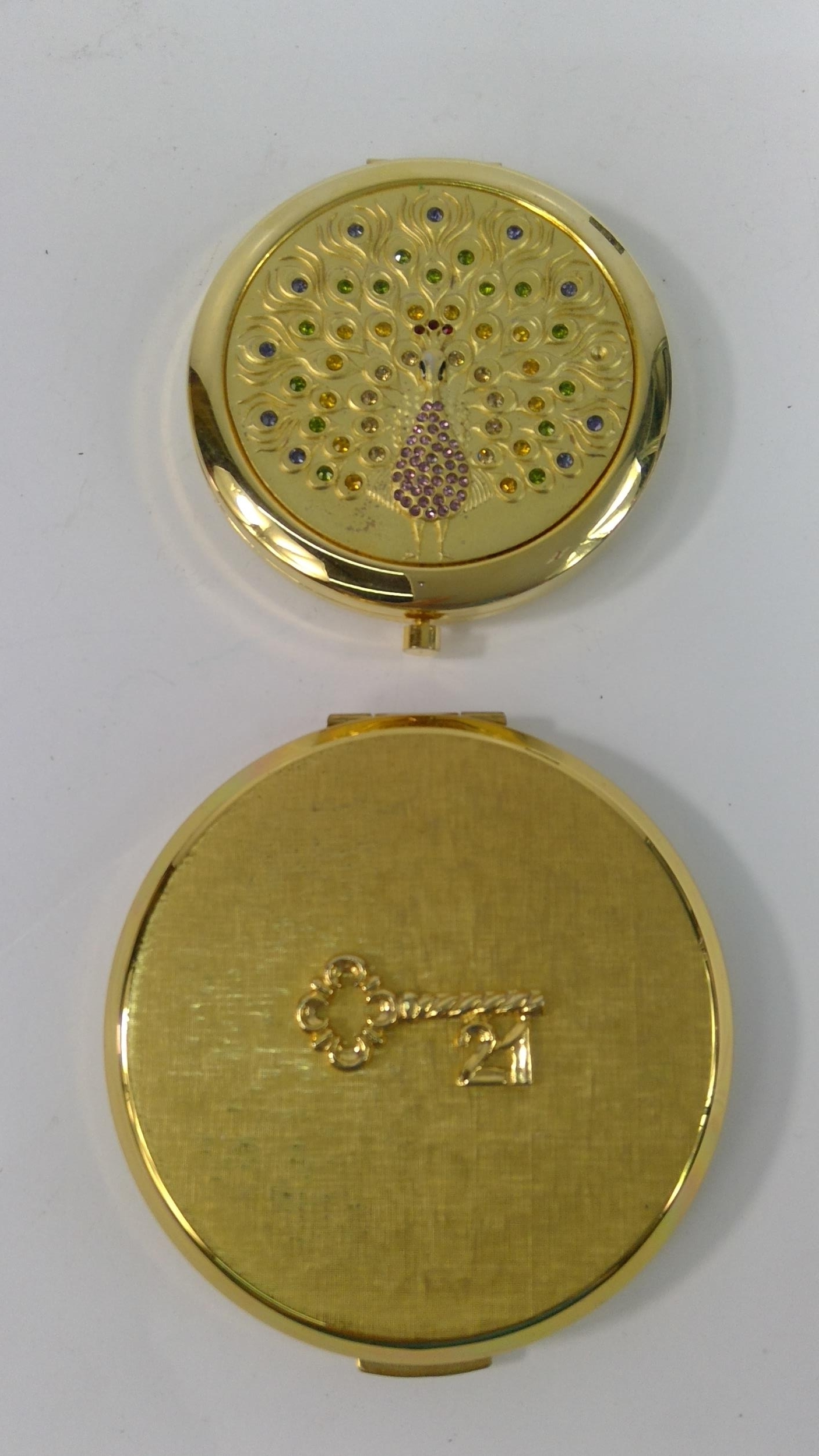 An unused 1970's 21st Birthday compact and a compact with peacock design