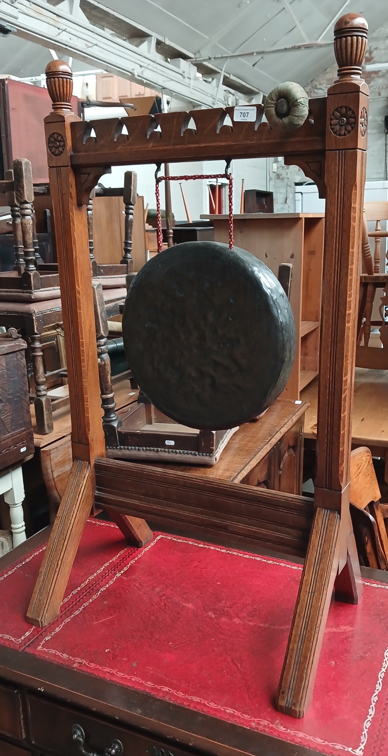 Diameter of gong 34cm. A couple of very small marks (2-3mm) on face of gong but generally in good condition