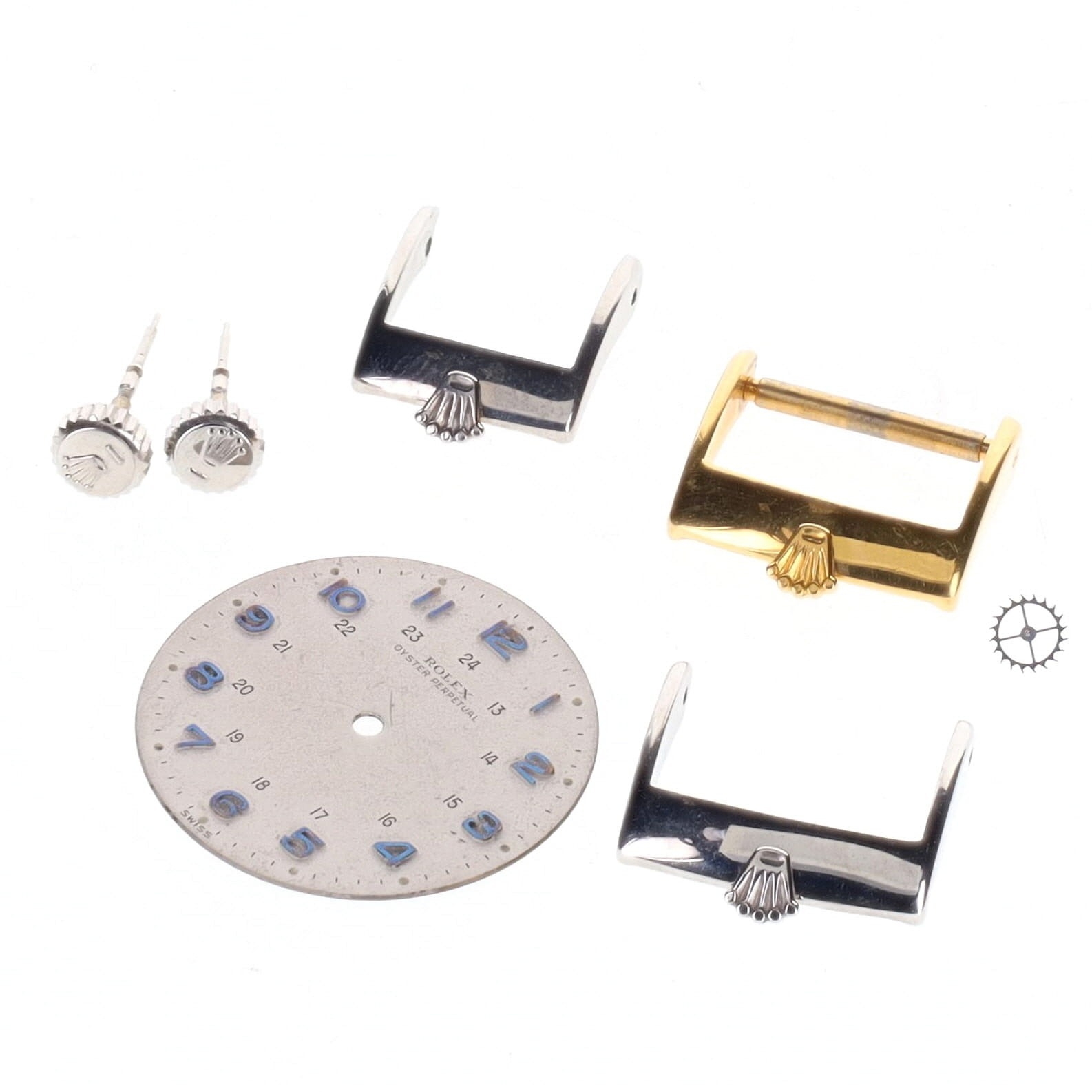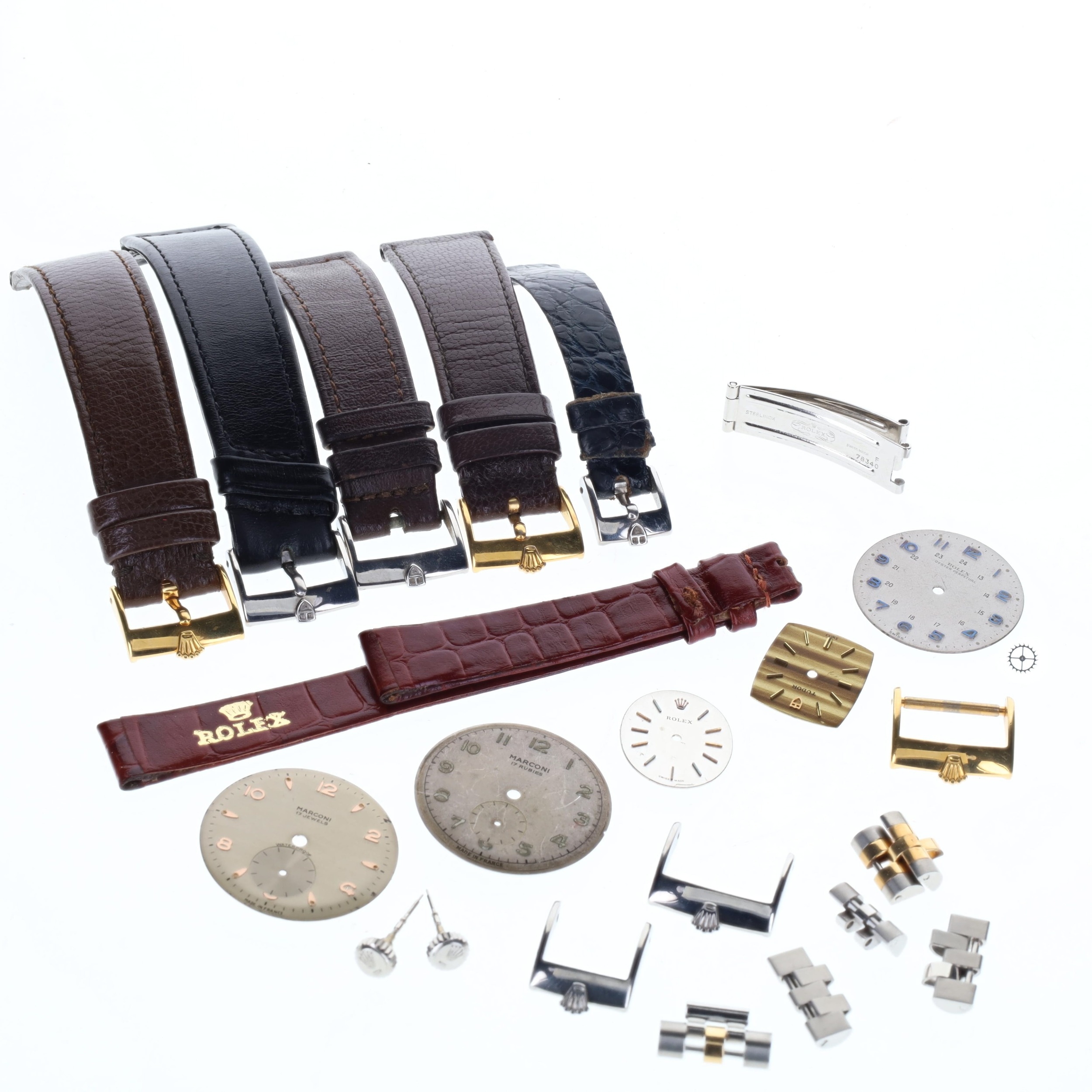 This lot includes a variety of Rolex and Tudor branded parts, straps and accessories which include as follows: