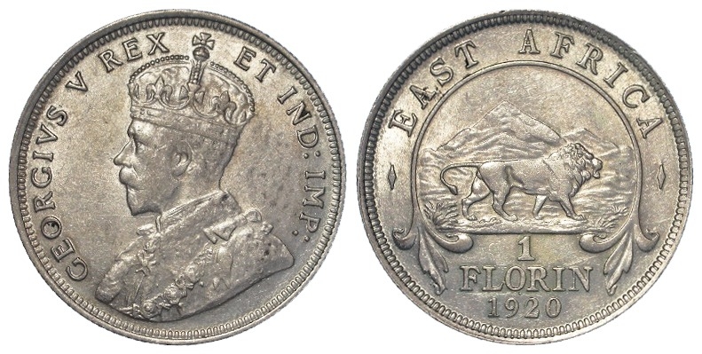 East Africa (Kenya) 1 Florin 1920H (mintmark weak) KM# 17, scarce, EF.