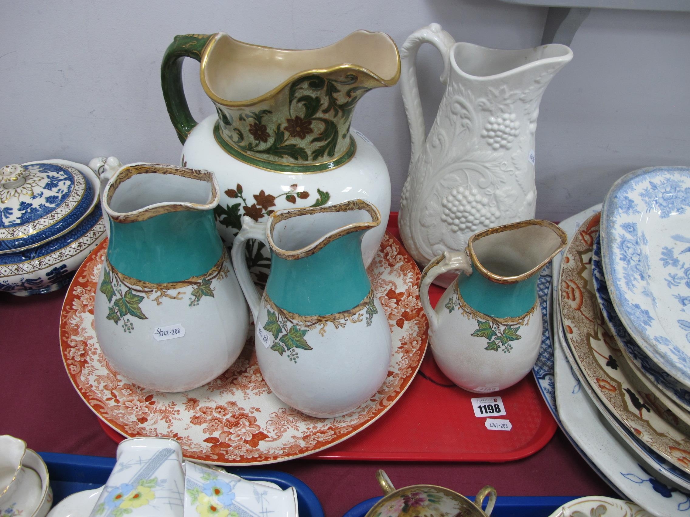 A Set of Three XIX Century Graduated Jugs, Royal Doulton jug, Mintons plate, Portmeirion jug (6).