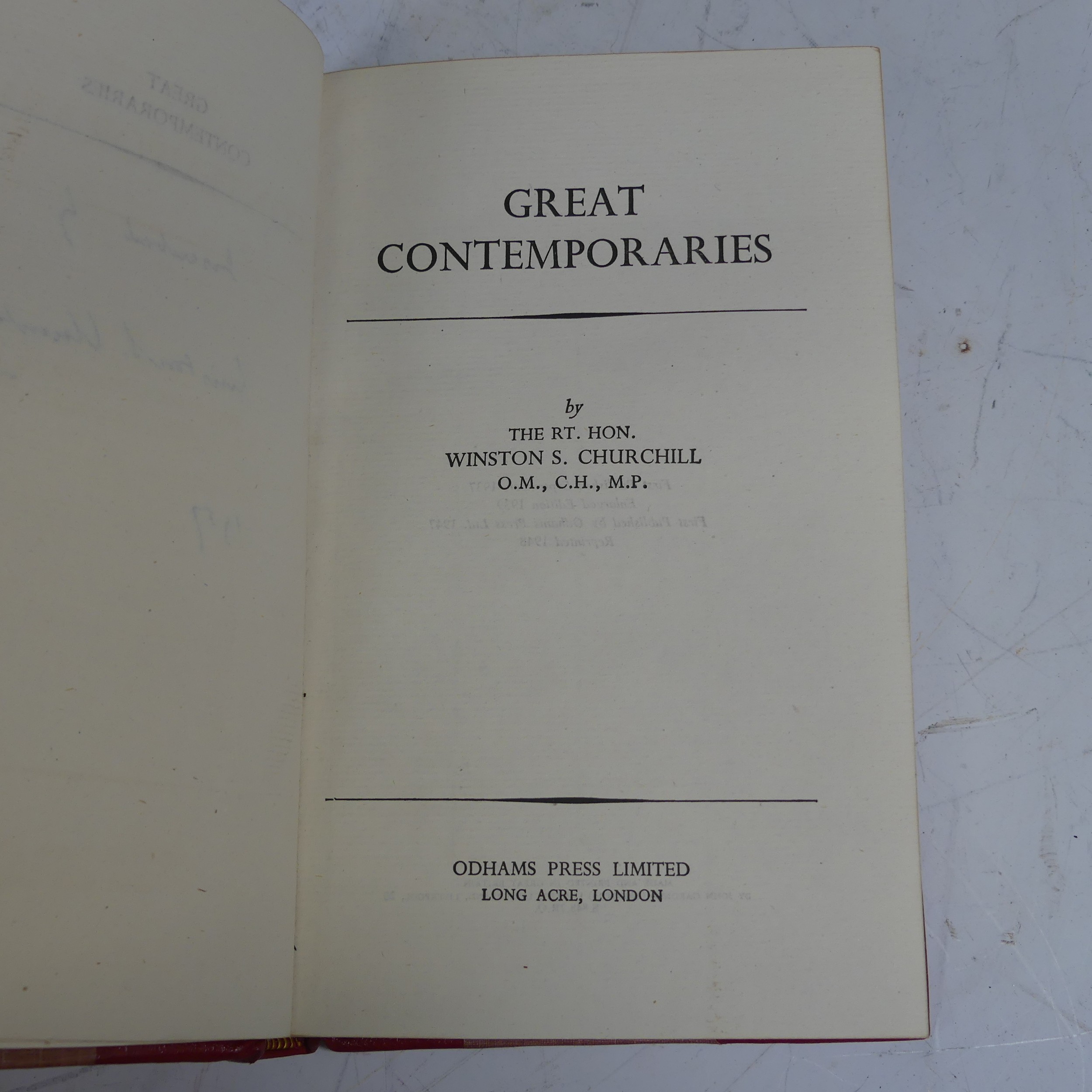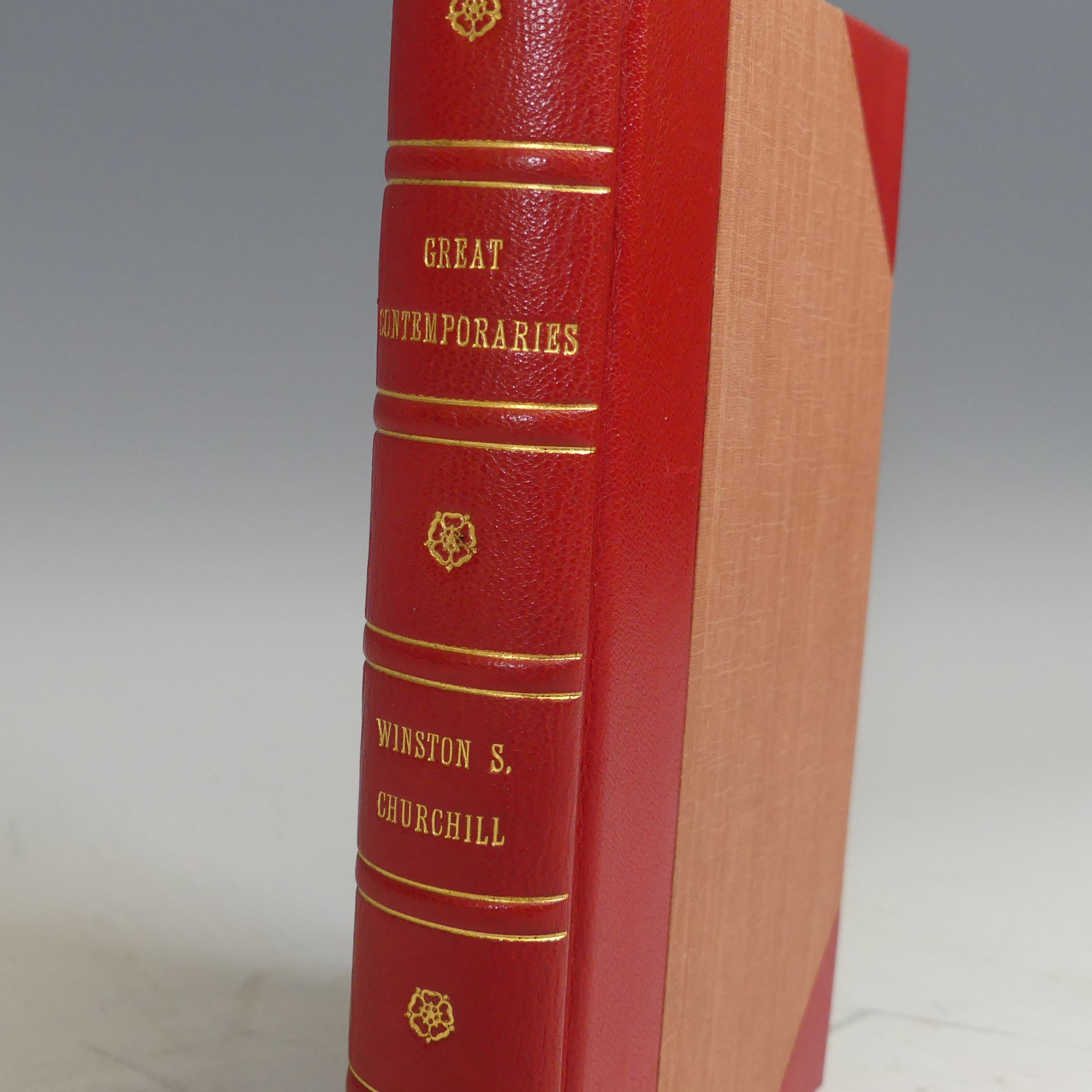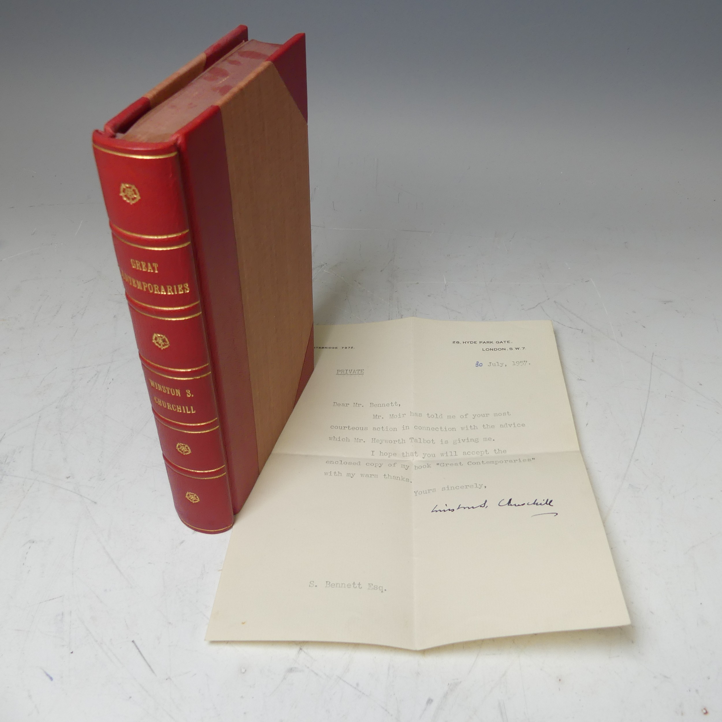 Churchill (Winston S.); 'Great Contemporaries', Odhams Press reprint, 1948, half red gilt tooled morocco, signed by the author 'Inscribed by Winston S. Churchill 1957', together with accompanying typed letter presentation dated 30th July 1957 'Dear Mr. Bennett, Mr Moir has told me of your most courteous action in connection with the advice which Mr. Hayworth Talbot is giving me. I hope that you will accept the enclosed copy of my book "Great Contemporaries" with my warm thanks.