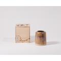 A Japanese stoneware cylindrical jar, c.2000, with pale body and brown glaze, 10cm high, together with an unrelated Kazu Yamada signed wooden box (2)ÿ