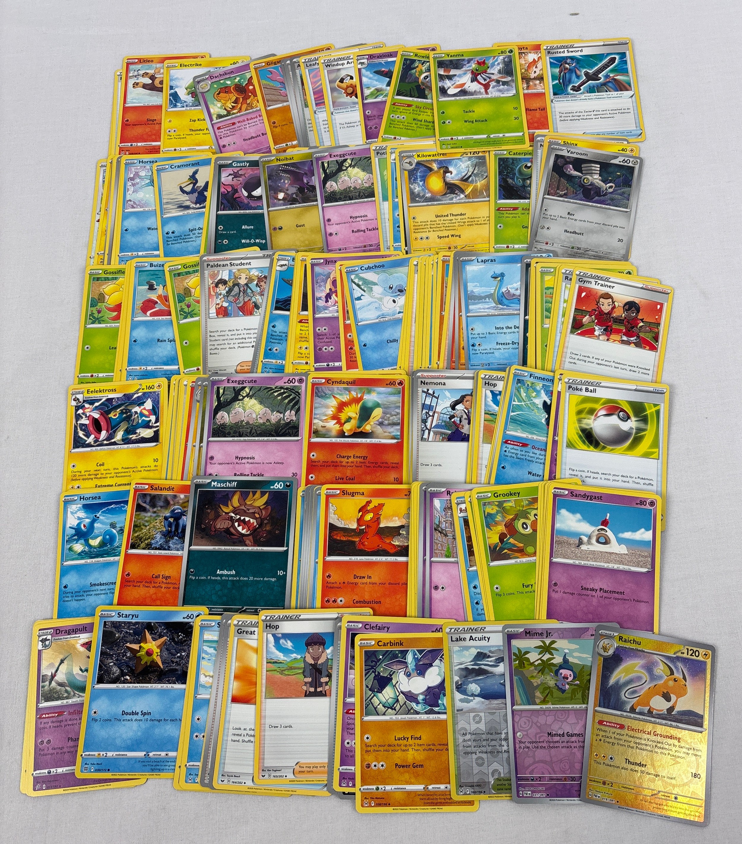 200 mixed Pokemon trading cards. To include 197 basic and trainer cards and 3 holo's.
