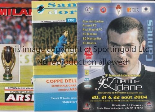 ARSENAL Over 65 away programmes for overseas matches 1979 - 2008 including 12 pirate issues v Dynamo Kiev 1998/9, 15 pirate issues v Shakhtar Donetsk 2000/1 and 22 pirate issues v Dynamo Kiev 2008/9 and 2 Youth Tournaments for Cannes 2004 and Den Haag 1998. Good
