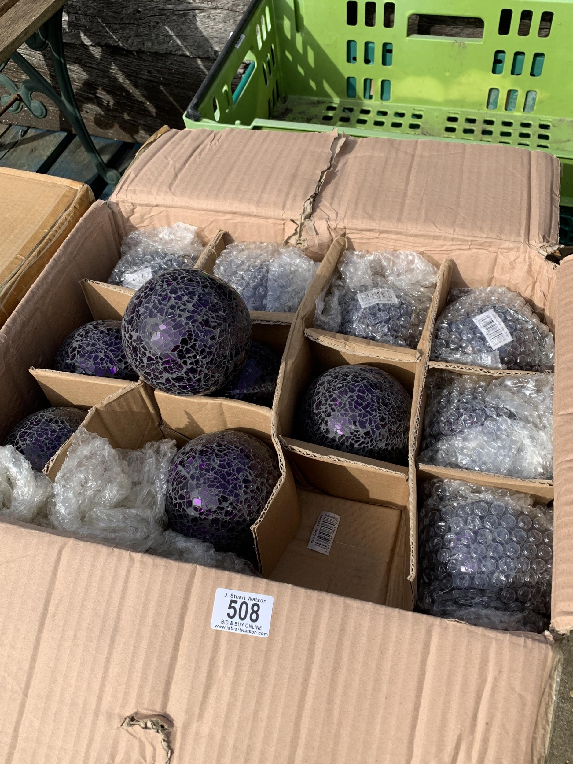 Two Boxes of 48 Purple Crackle Glass Balls each 10 cms diameter