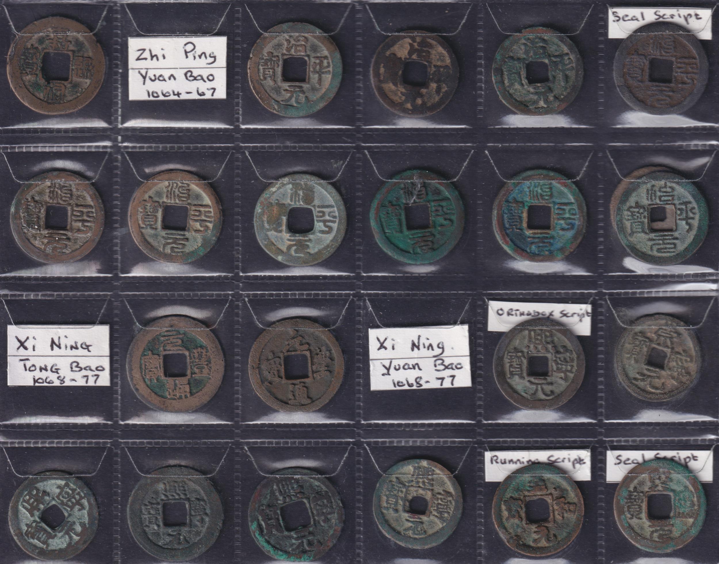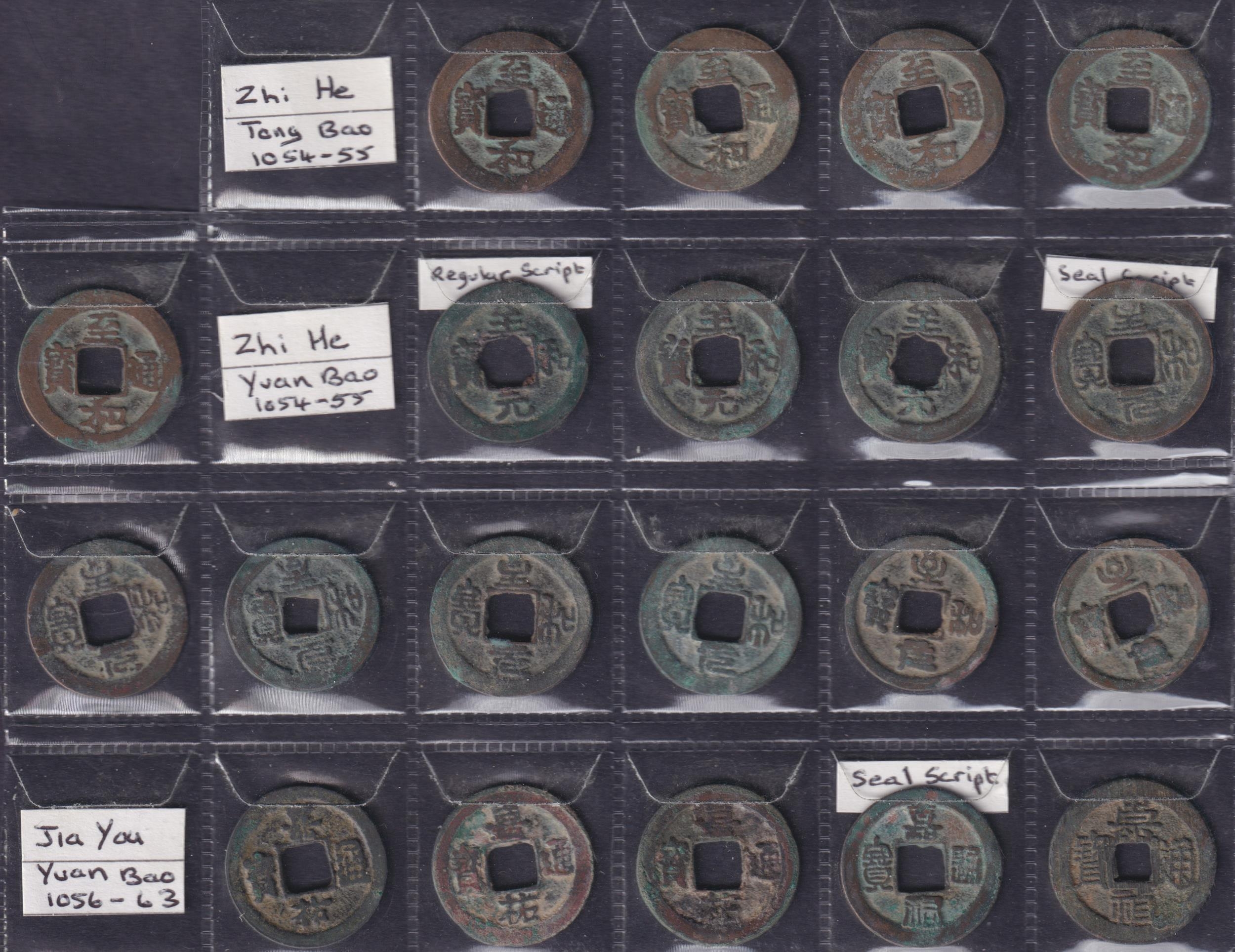 Medieval China: Northern Song 1 Cash Coins (1054–1098 AD), a group of 66 copper 1 cash coins of the Northern Song dynasty. Includes Zhi He (5 Tang Bao, 10 Yuan Bao), 6 Jia You, 10 Zhi Ping, 16 Xi Feng (3 Tang Bao, 12 Yuan Bao), 5 Yuan Feng & 14 Yuan You. Various scripts. Grades G–F.