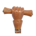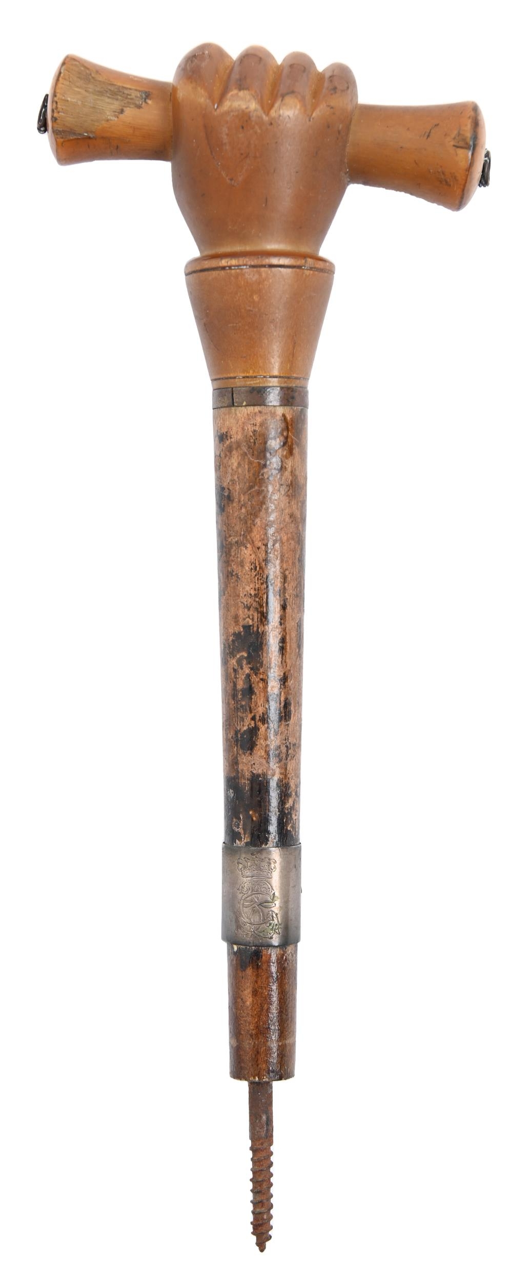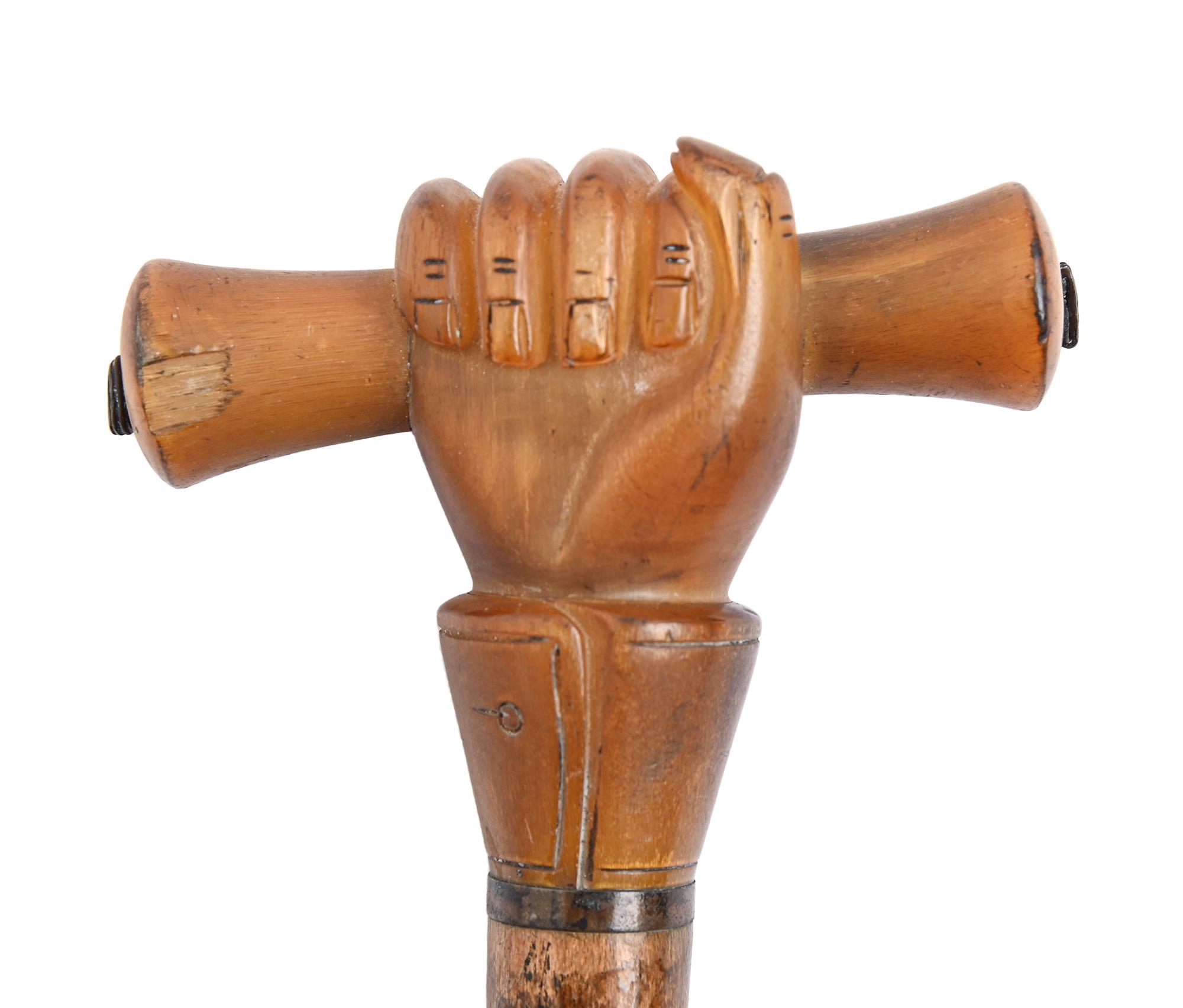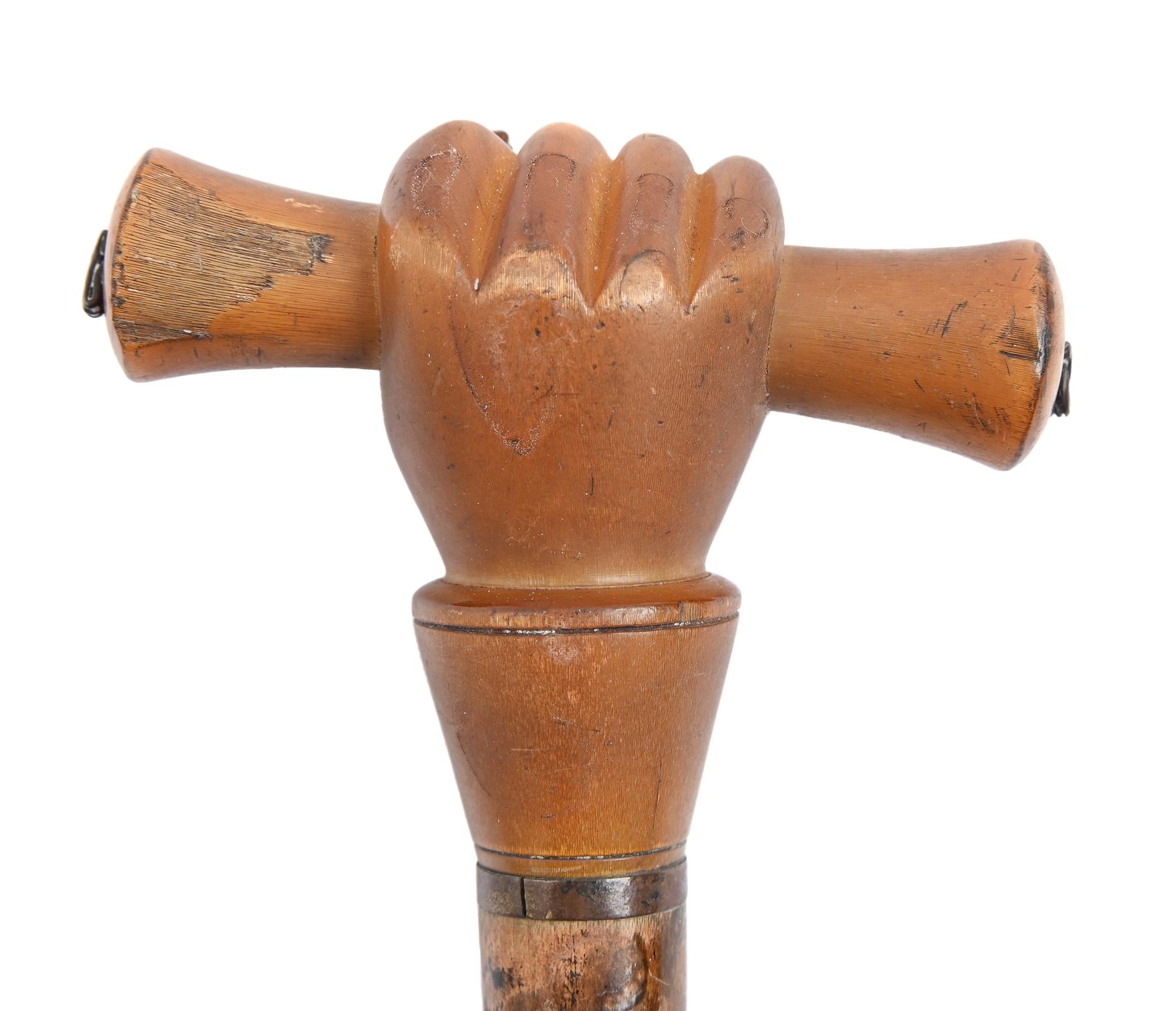 A cane or parasol handle, 19th c, the pommel carved as a baton in a clenched fist, 20cm h