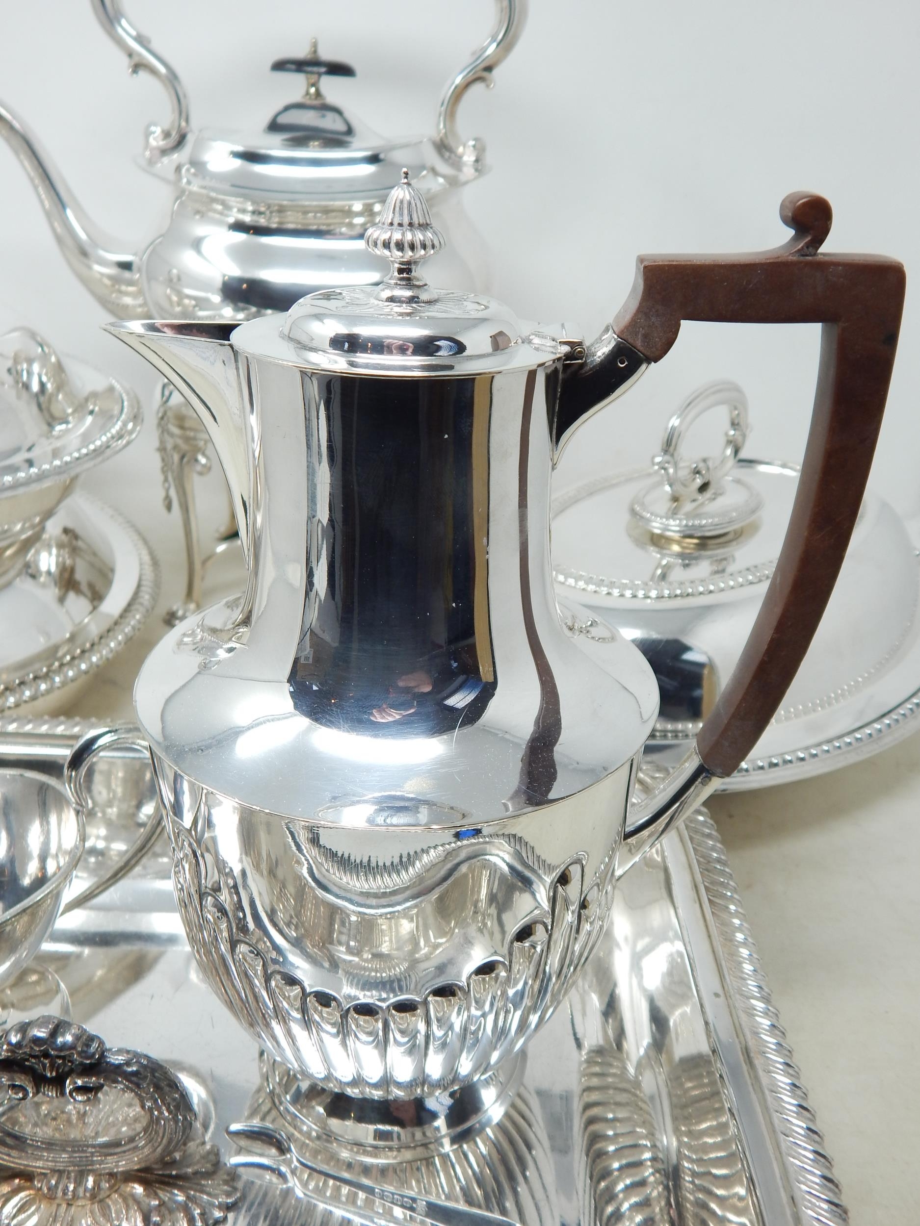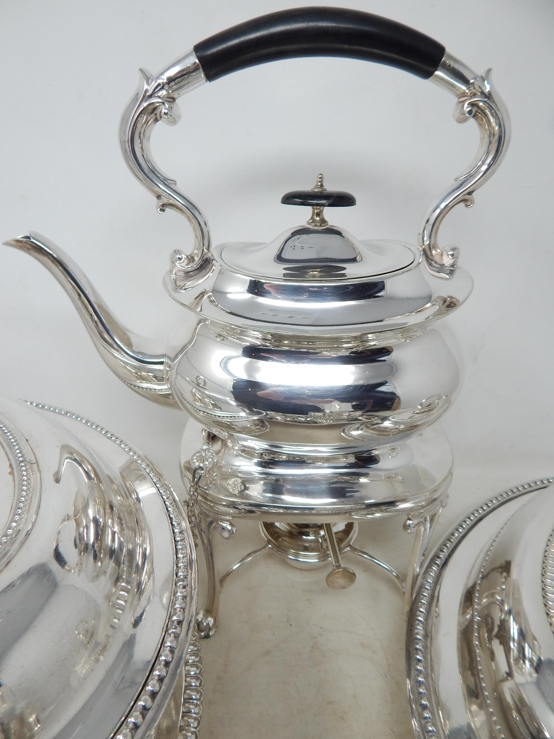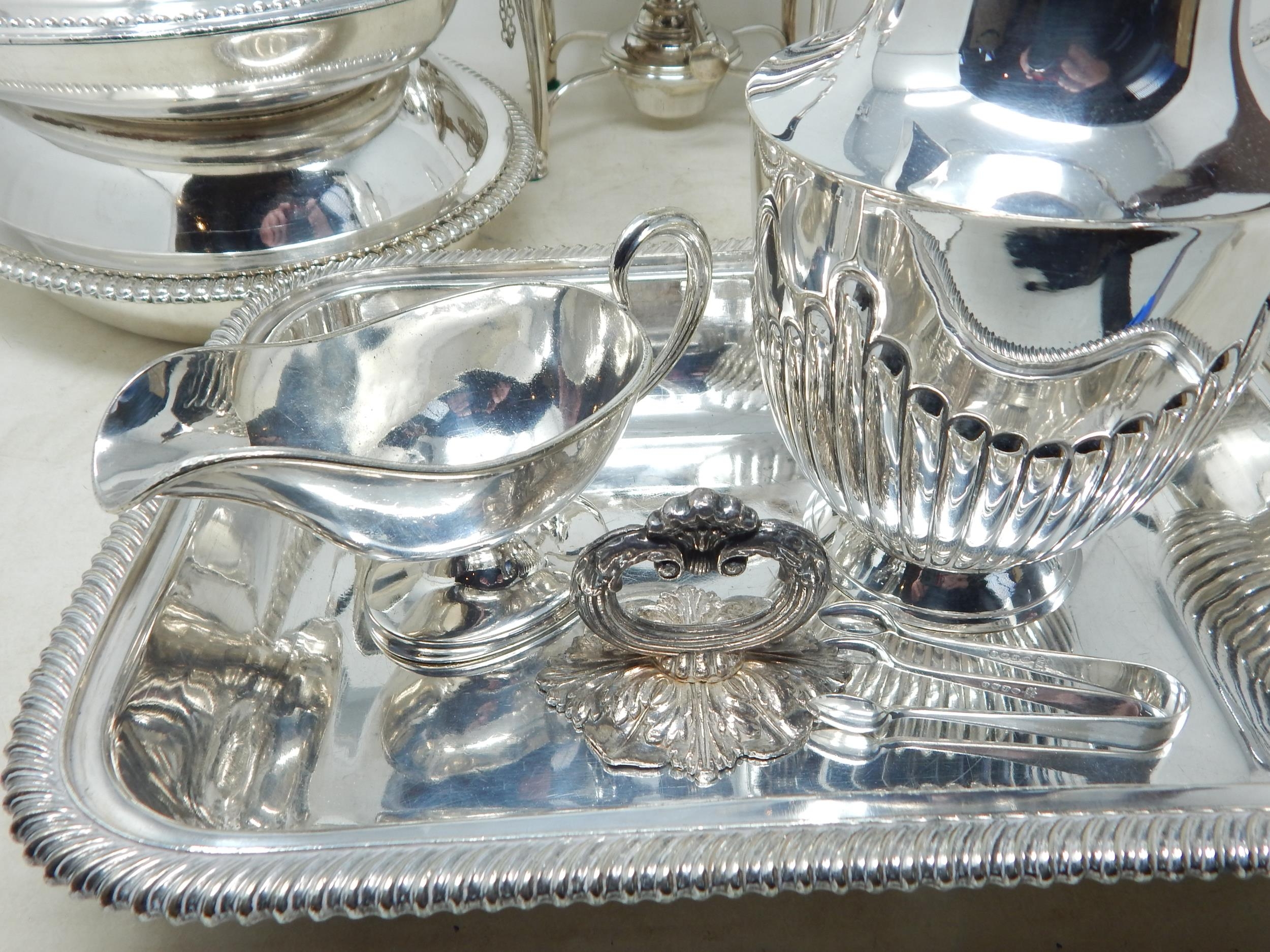Quantity of 19th Century & Later Silver Plated Wares to Include a Tea Kettle on Stand with Burner, Entree Dishes etc (lot)