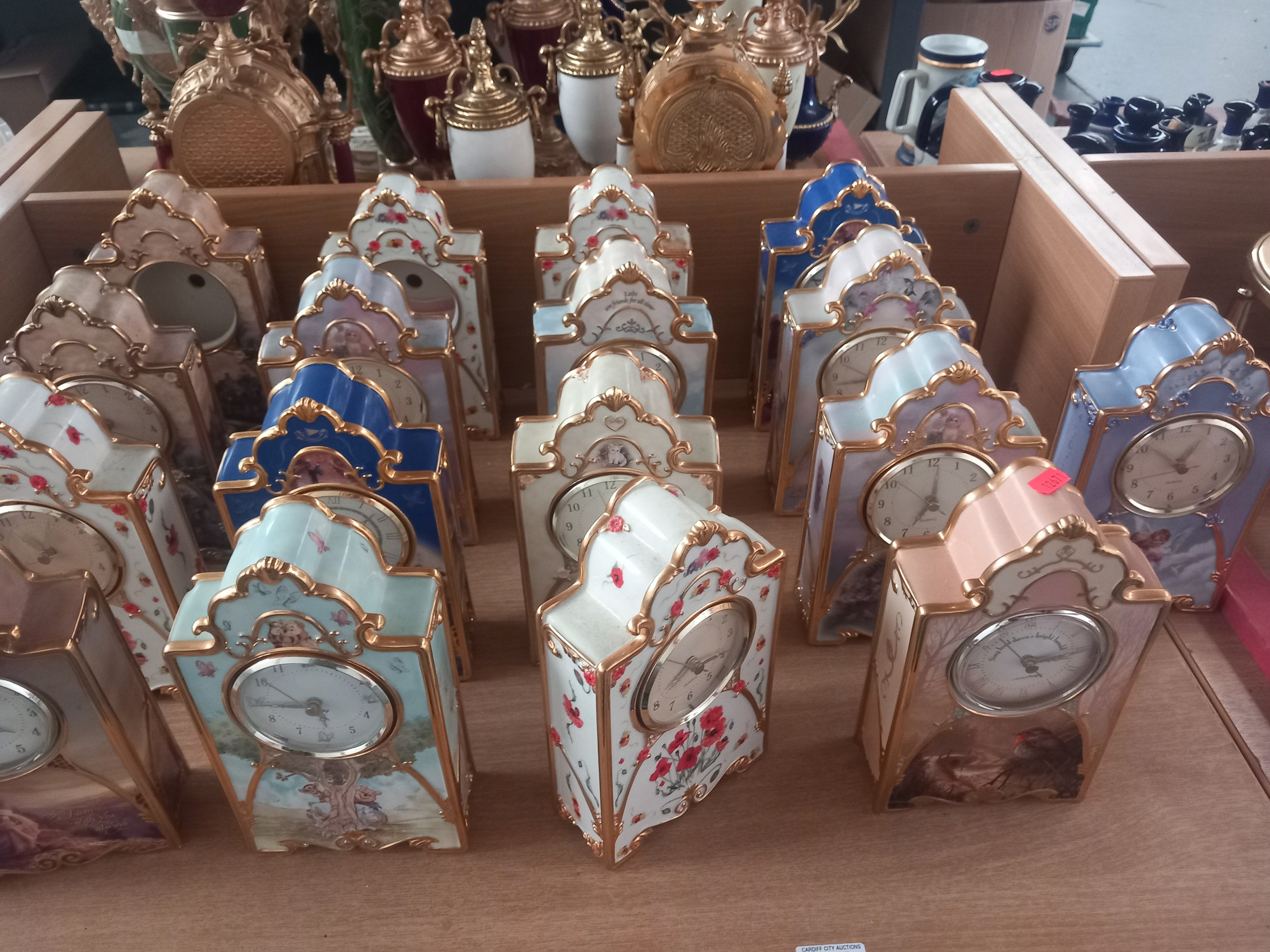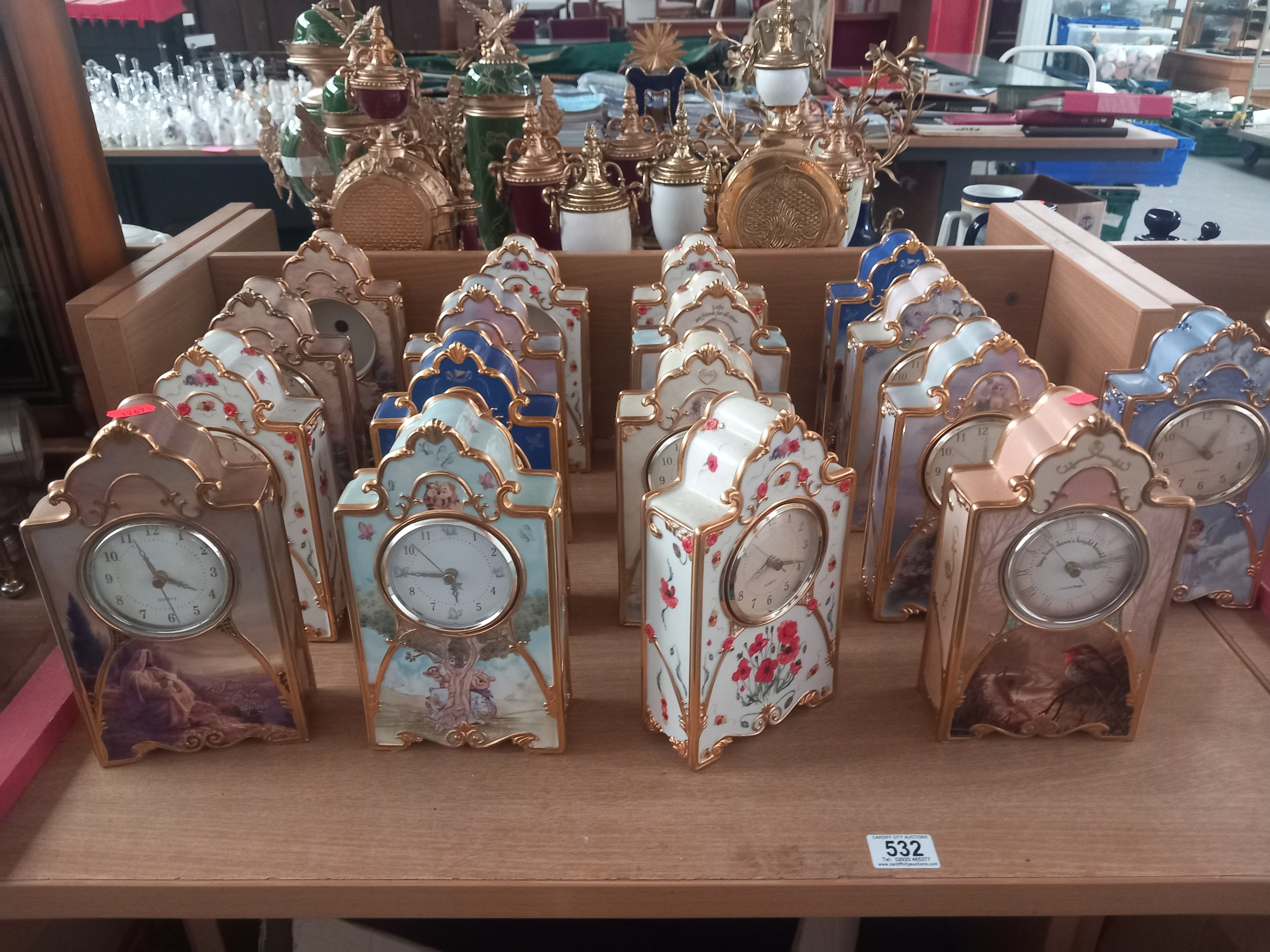 A quantity of china clocks and clock cases - Bradford editions etc