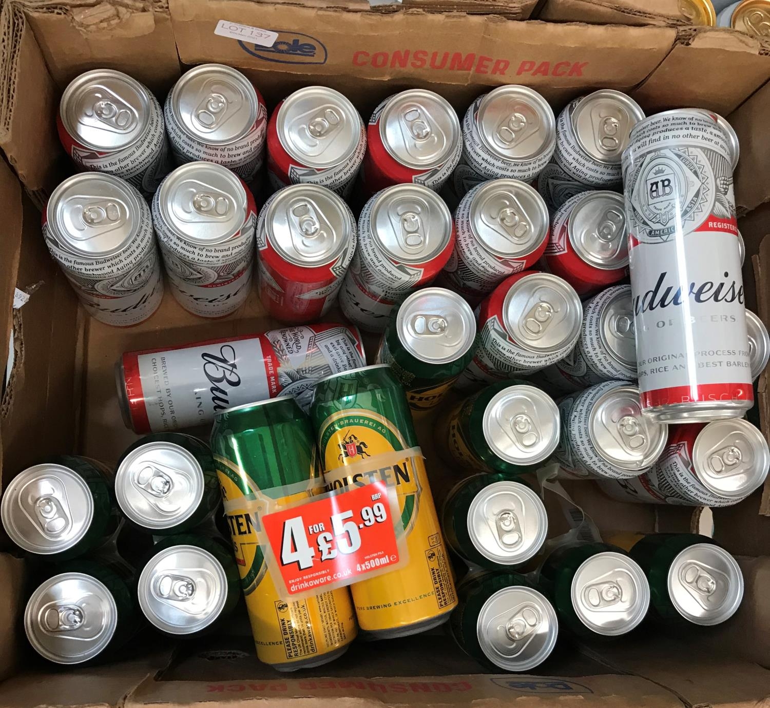 MIXED BOX OF BUDWEISER 568ML CANS AND HOLSTEN PILS 500ML