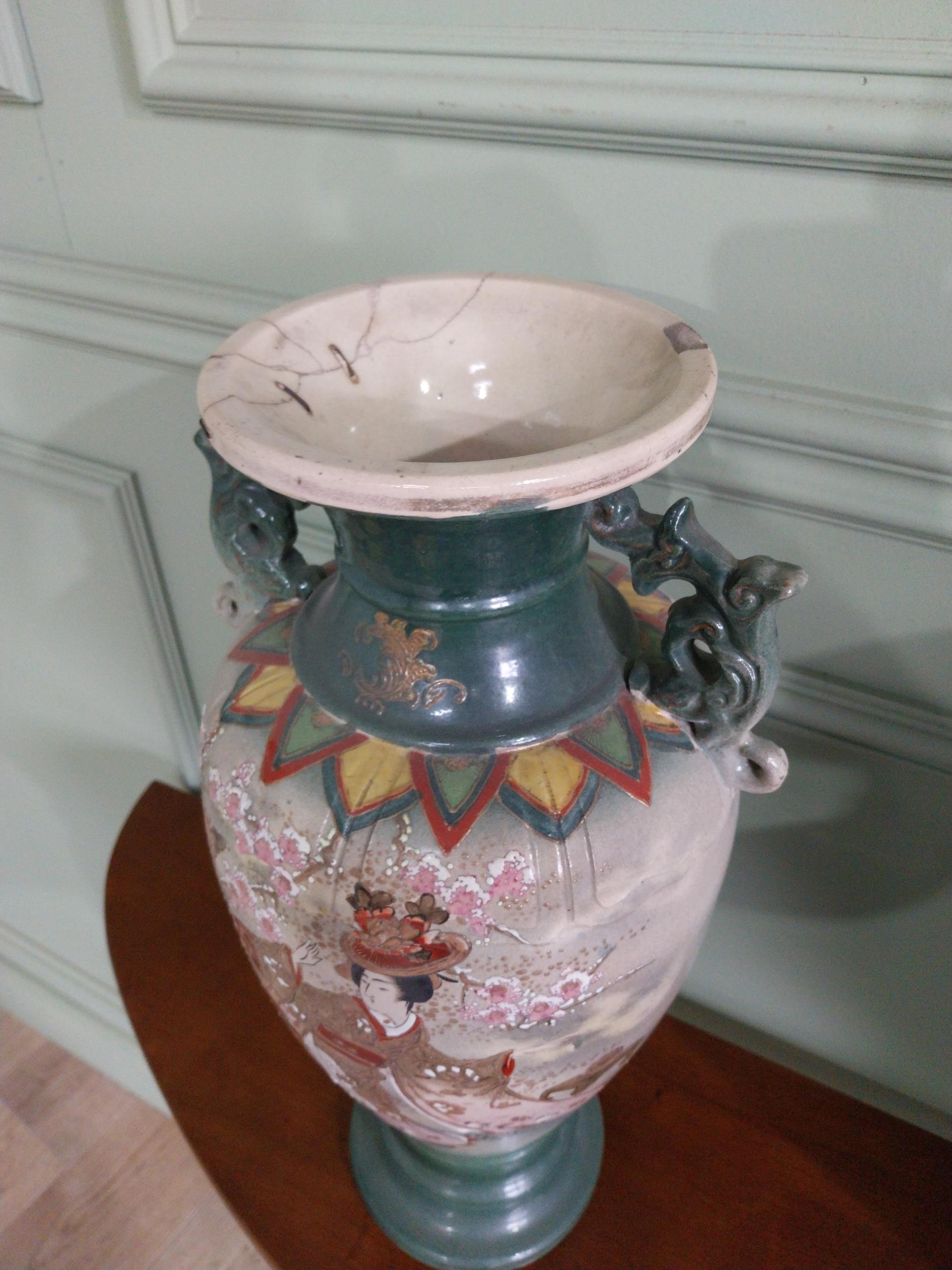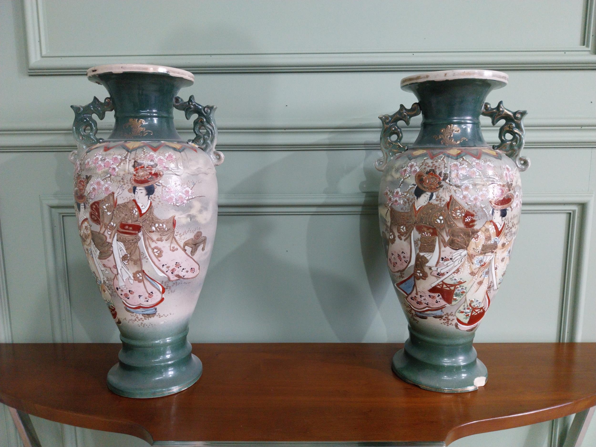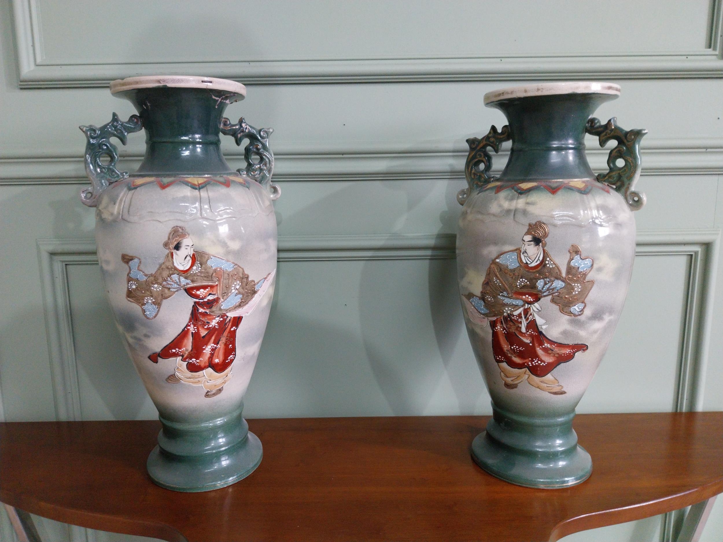 Pair of 19th C. oriental ceramic vases. {47 cm H x 23 cm Dia.}.