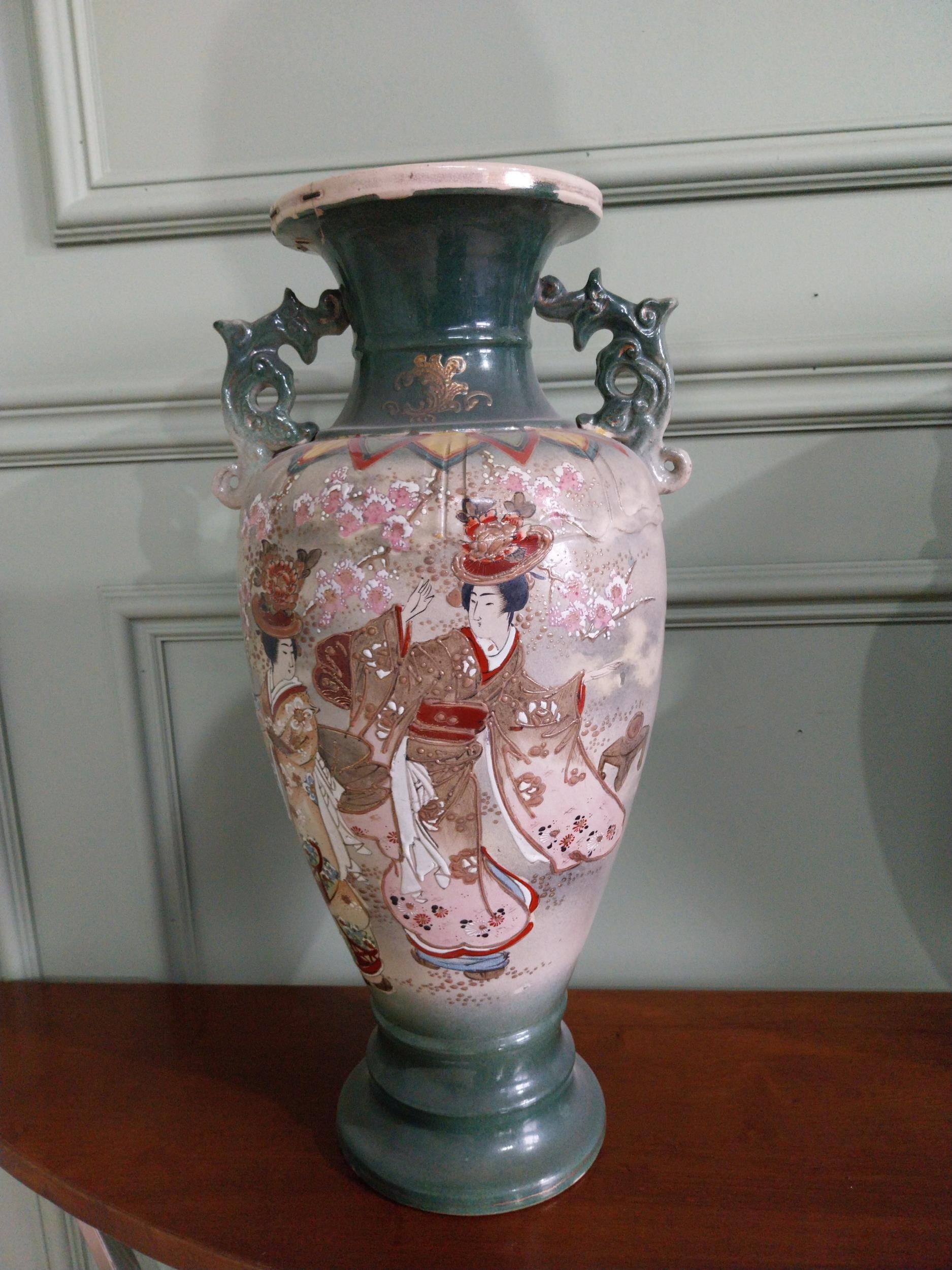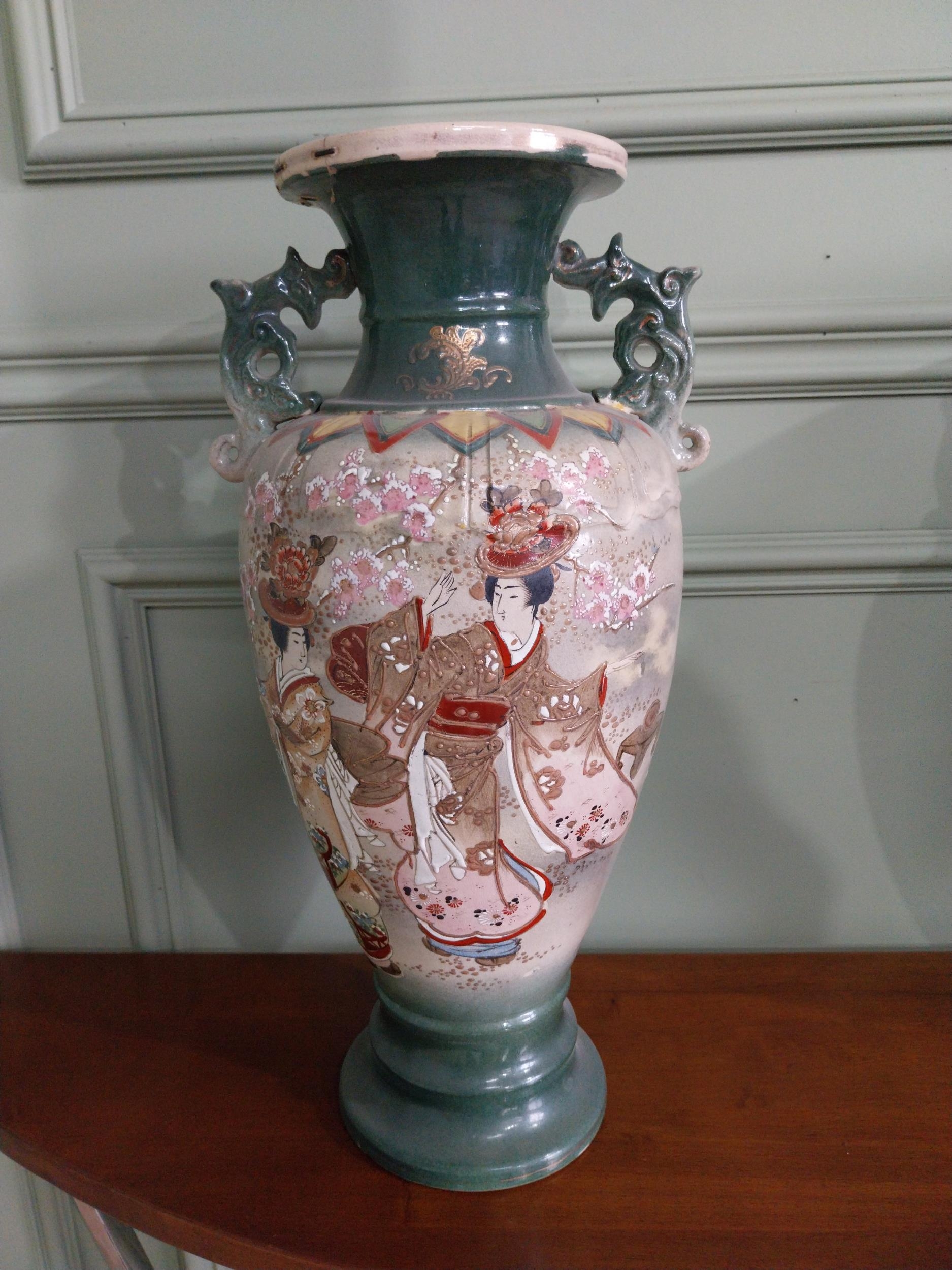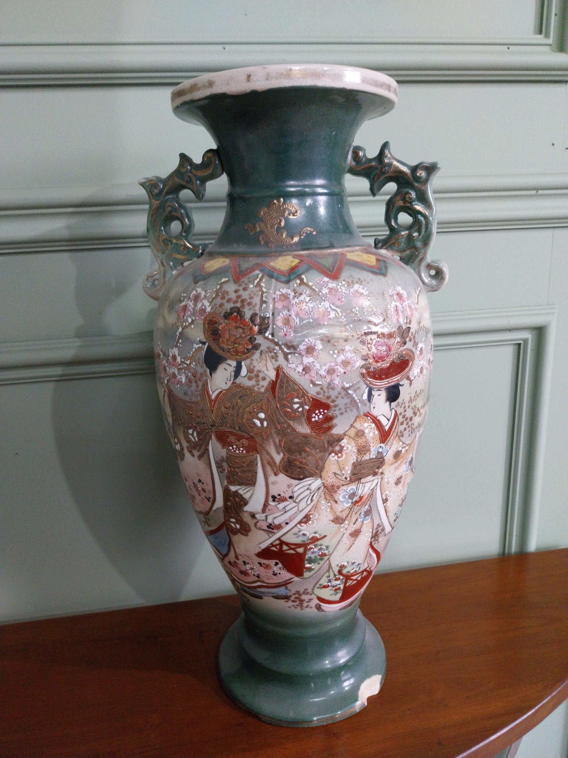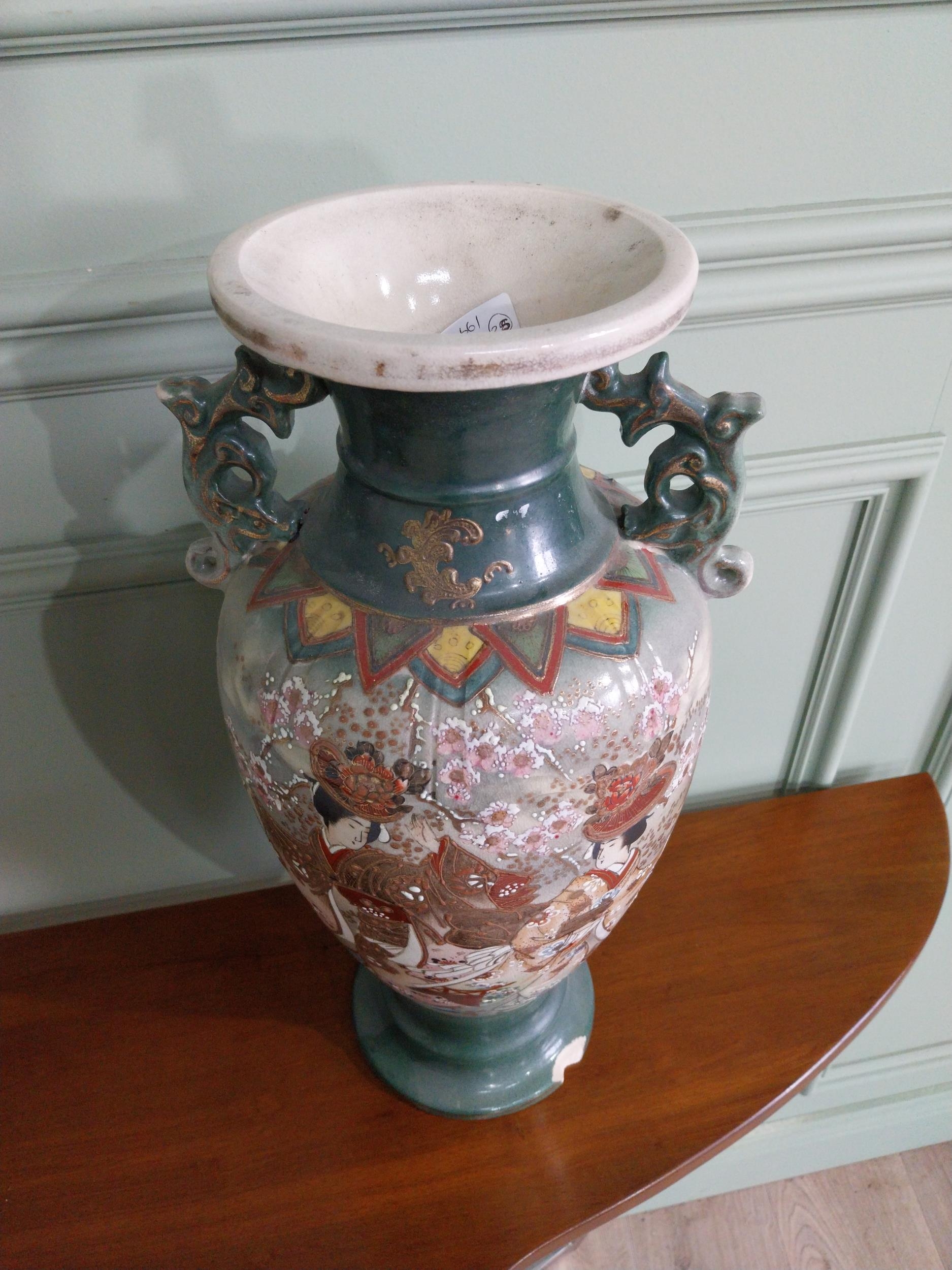 Pair of 19th C. oriental ceramic vases. {47 cm H x 23 cm Dia.}.