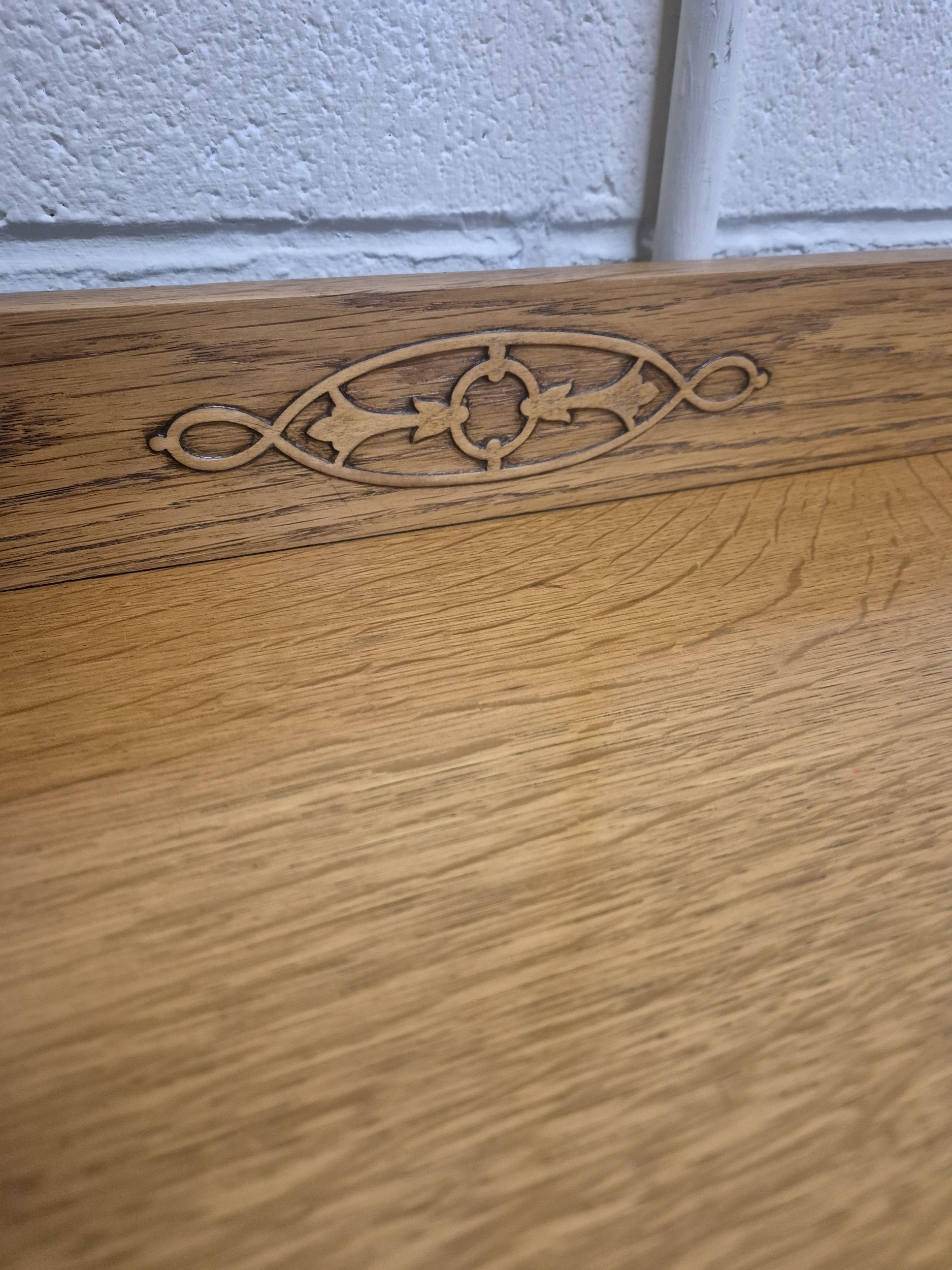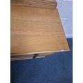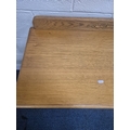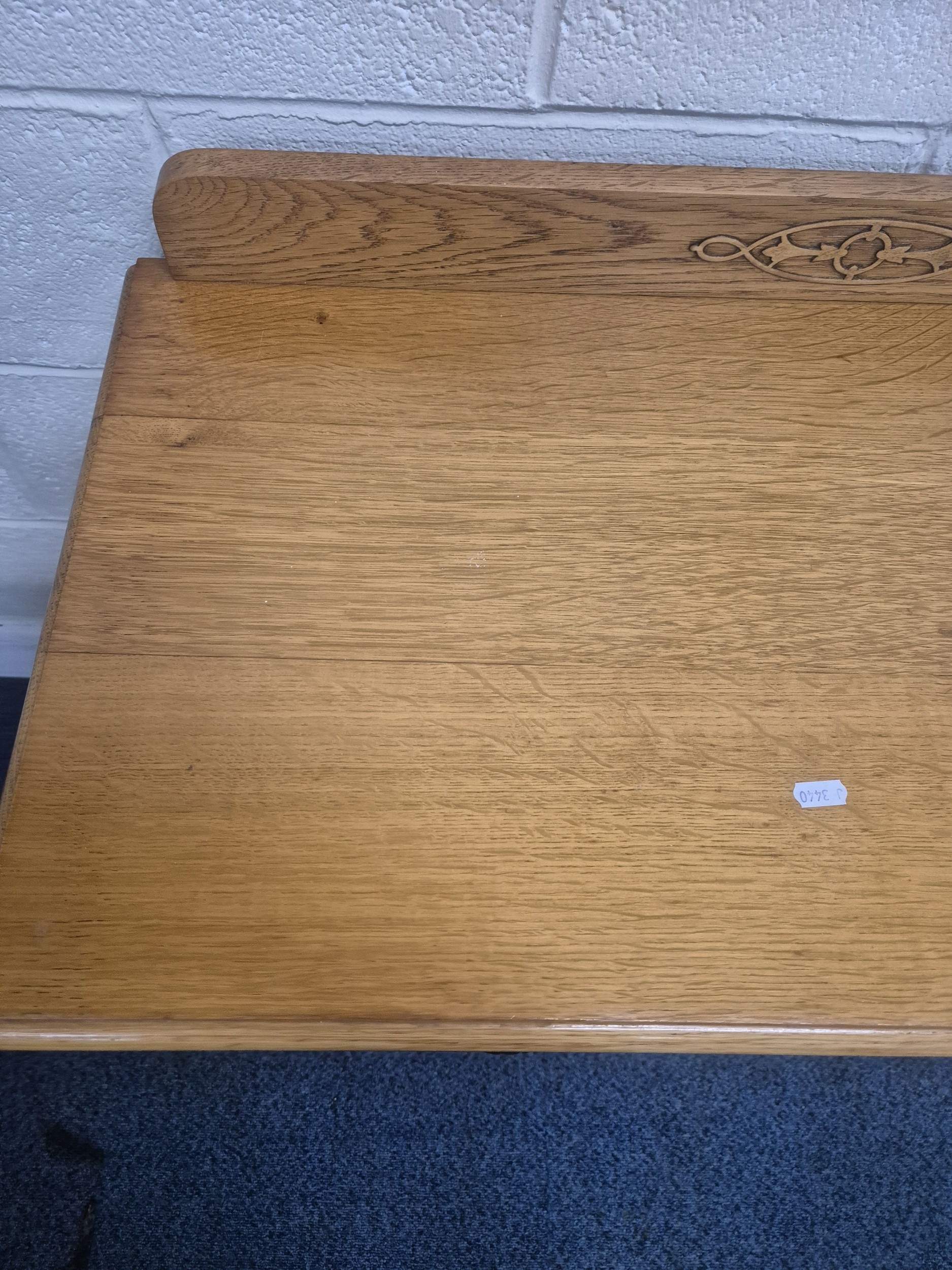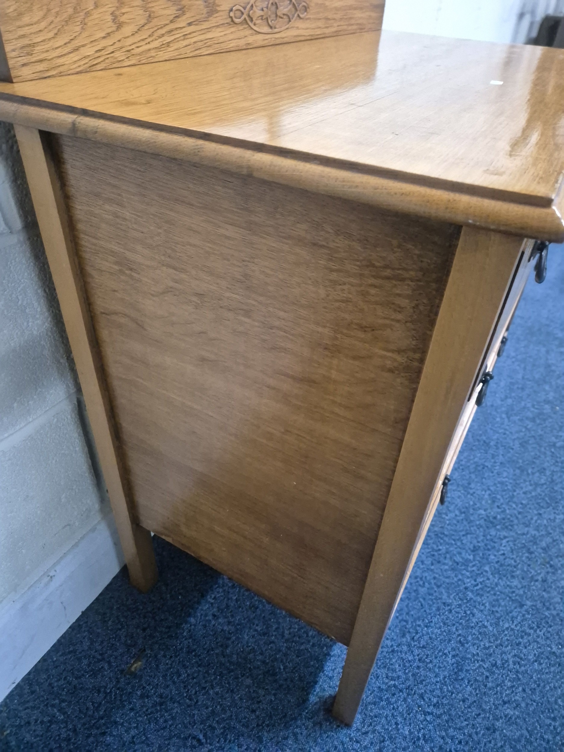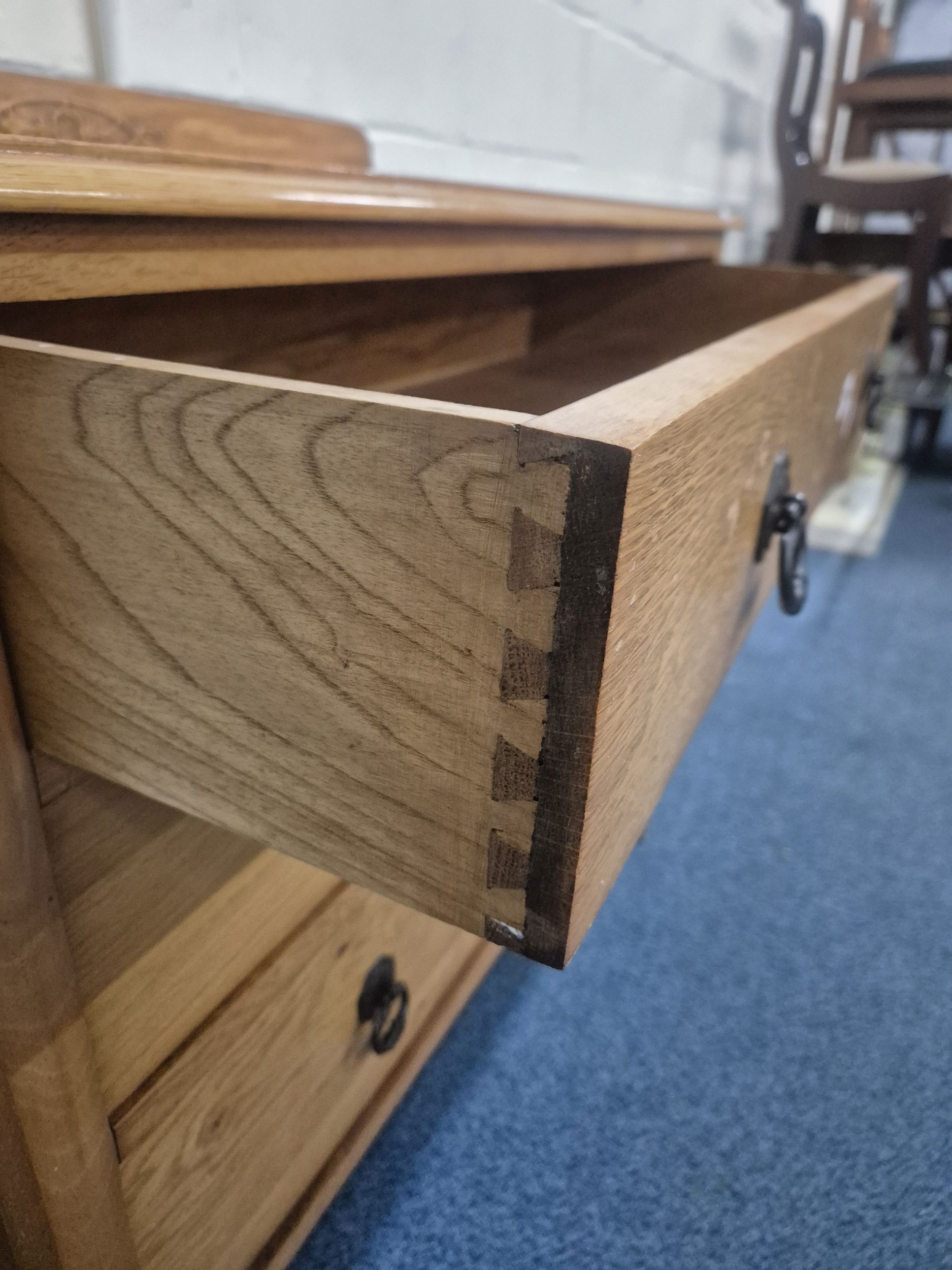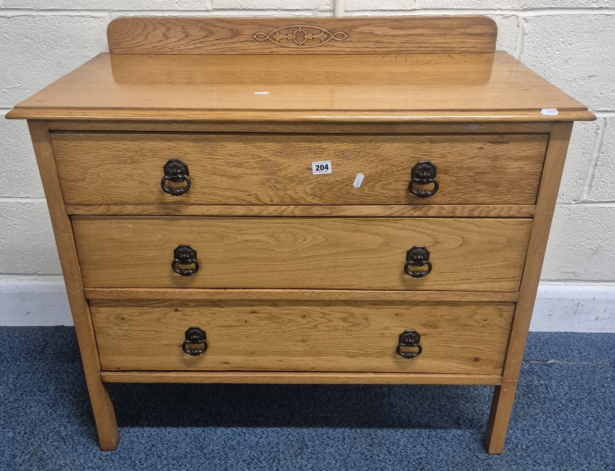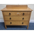 AN OAK LEDGE BACK CHEST OF THREE LONG DRAWERS, width 92cm x depth 46cm x height 83cm, condition report: general signs of wear and usage