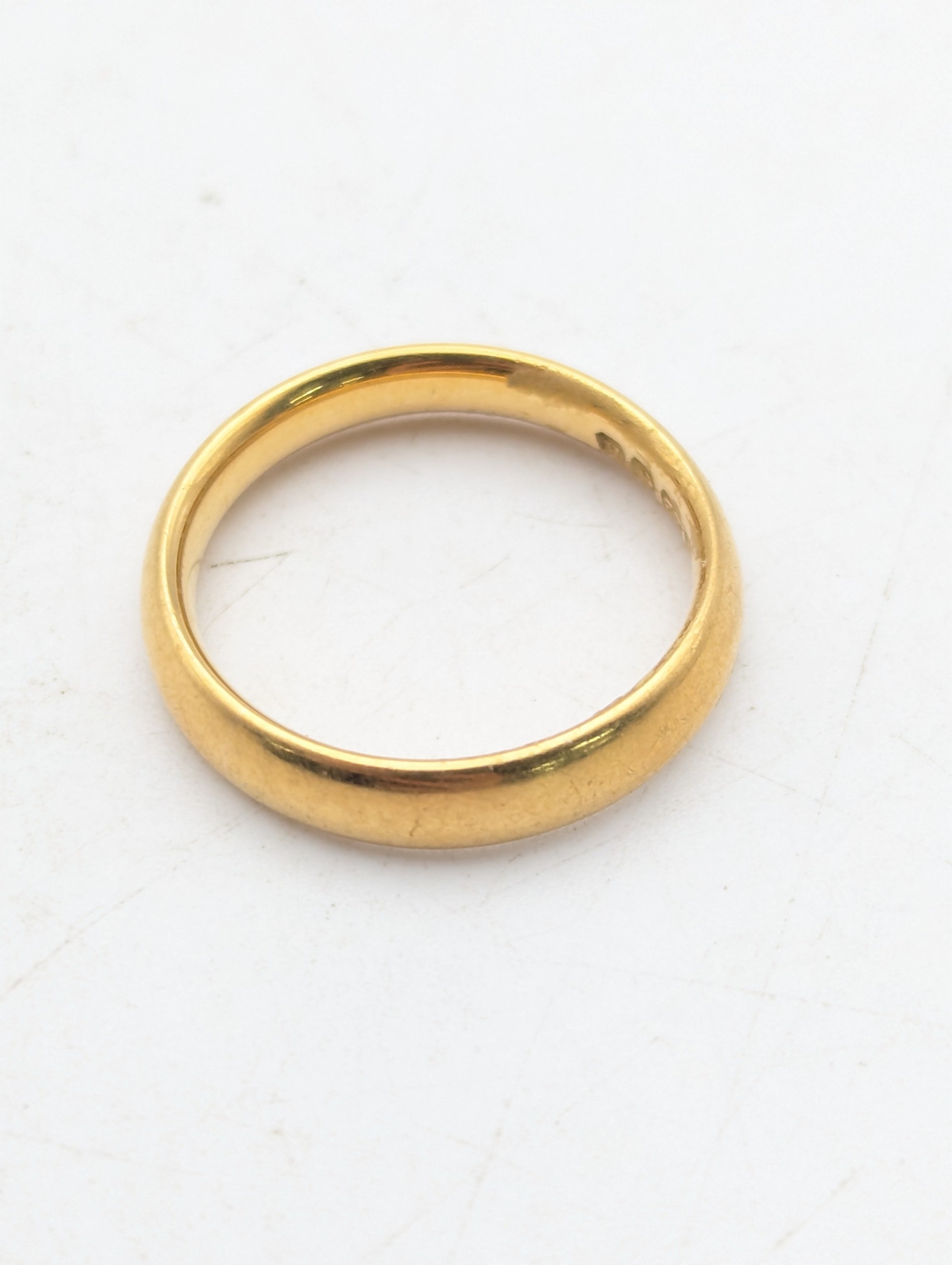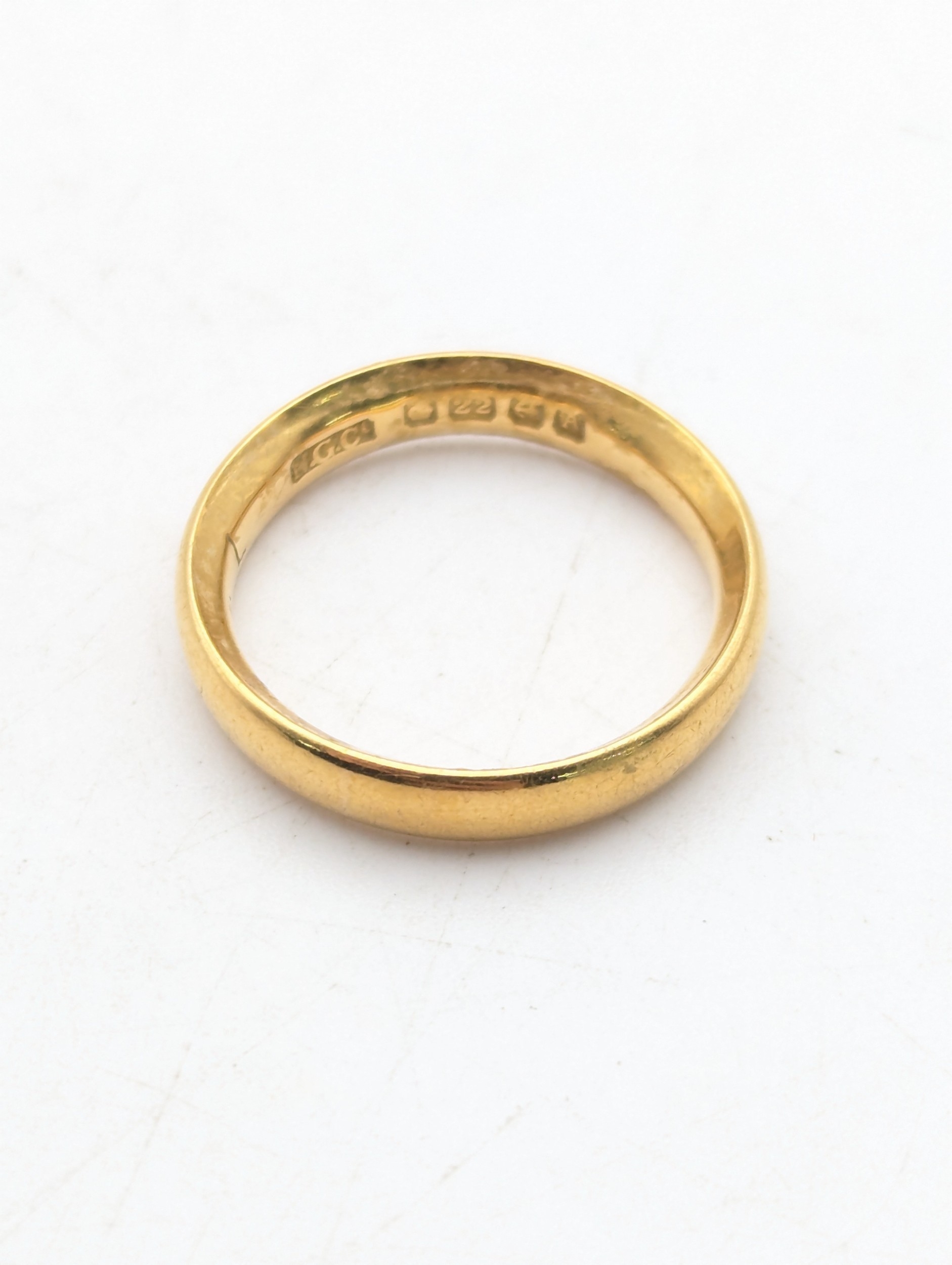 A 22ct yellow gold wedding band British hallmarks, size J, 4.2g