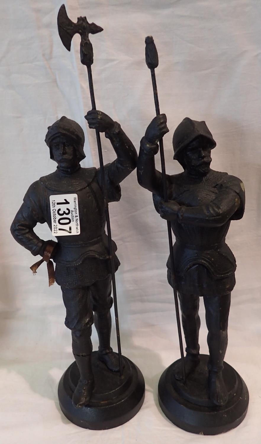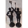 Pair of cast metal figures of Conquistadors, H: 30 cm. Not available for in-house P&P