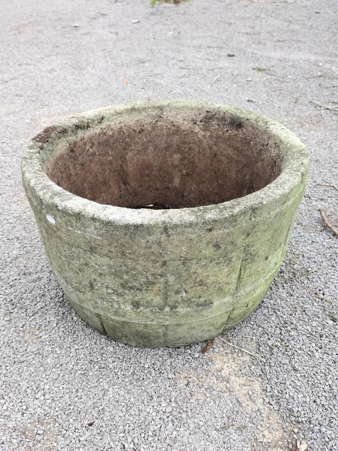 Barrel Effect Concrete Planter. 23cm High, 36cm Diameter. Collection Only.