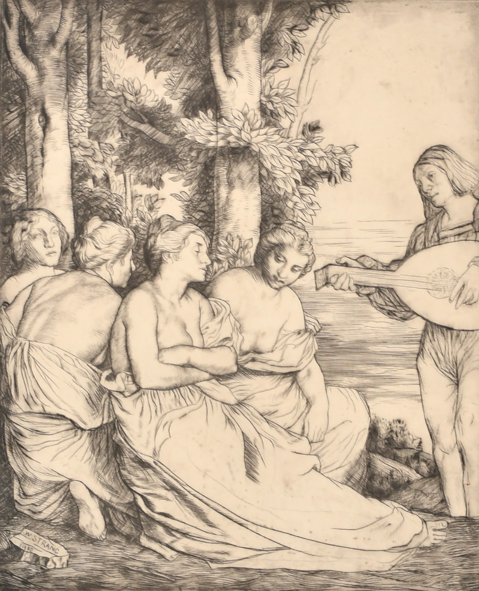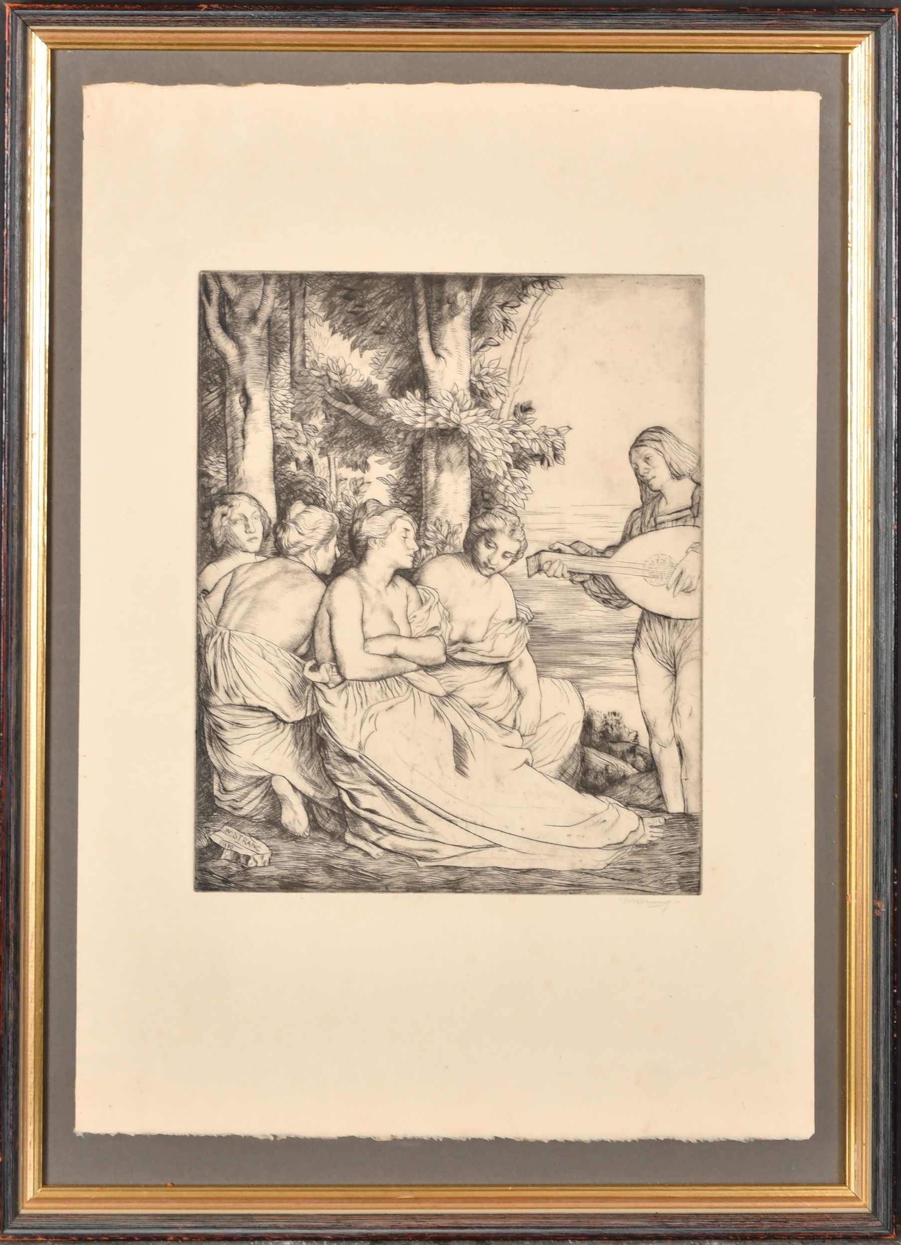 William Strang (1859-1921) British. "Music", Etching, Signed in pencil, 11.85" x 9.7" (30 x 24.7cm)