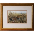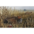 Grouse resting amongst corn stalks