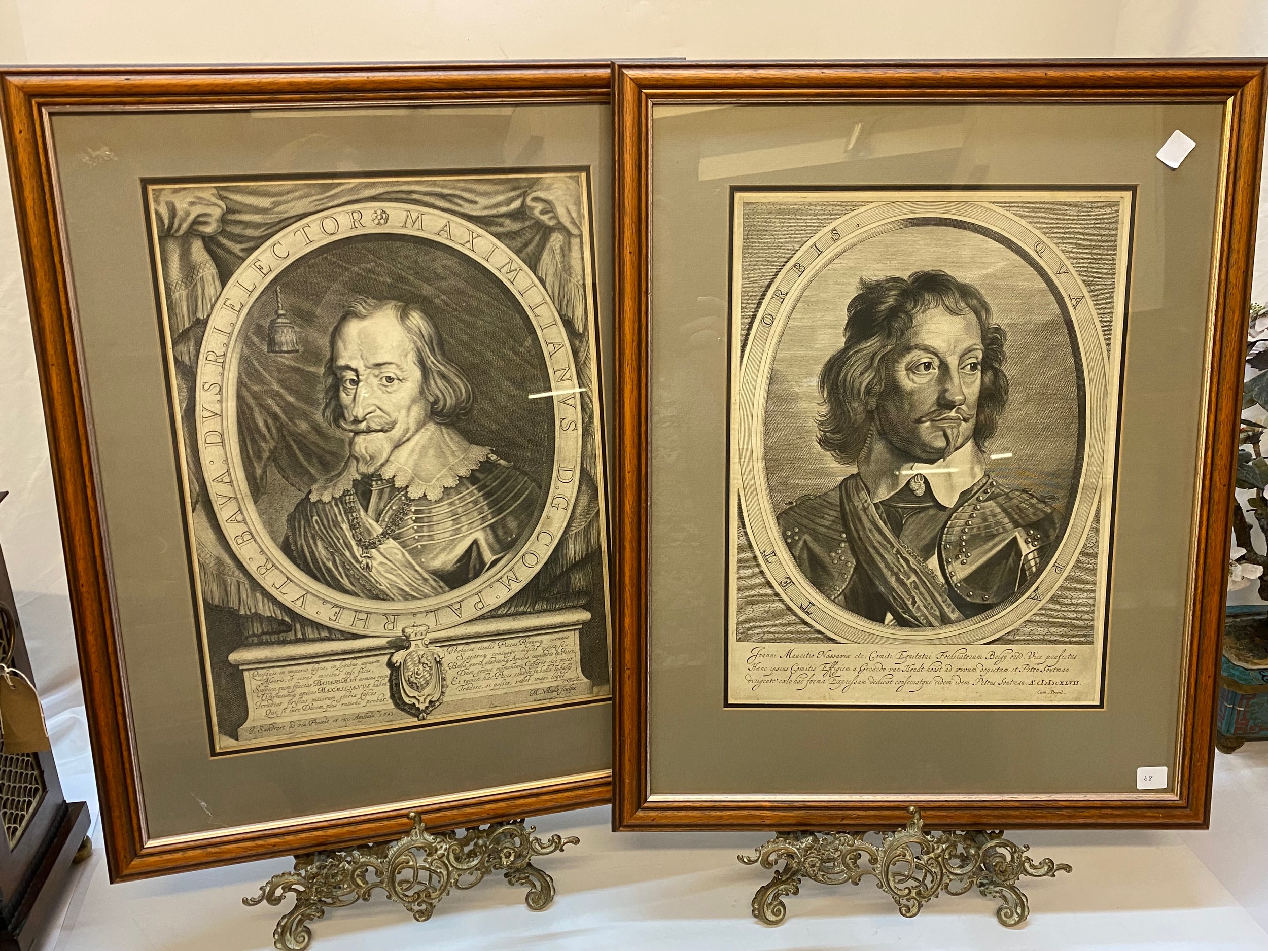 A pair of 17th Century black and white engravings of Elector Maximillanus, framed and glazed - 17 1/4in. x 13in.