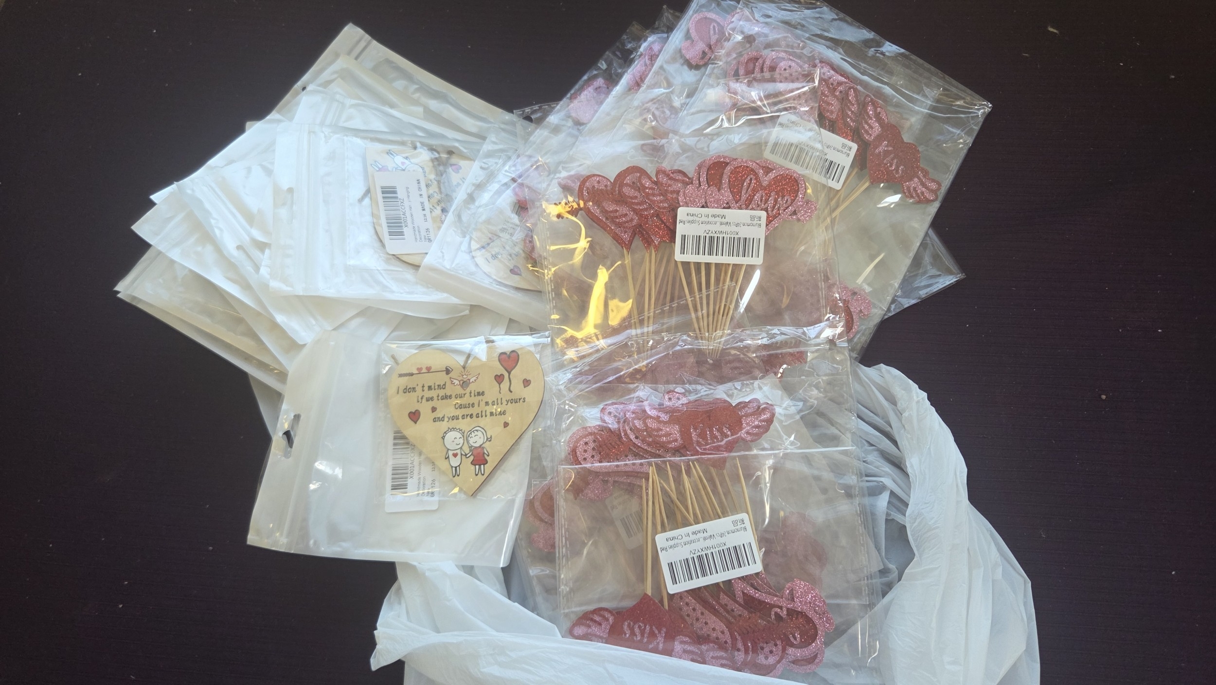 An Assortment of Wholesale Valentine's Day Party Decorations and Wooden Heart Plaques