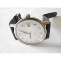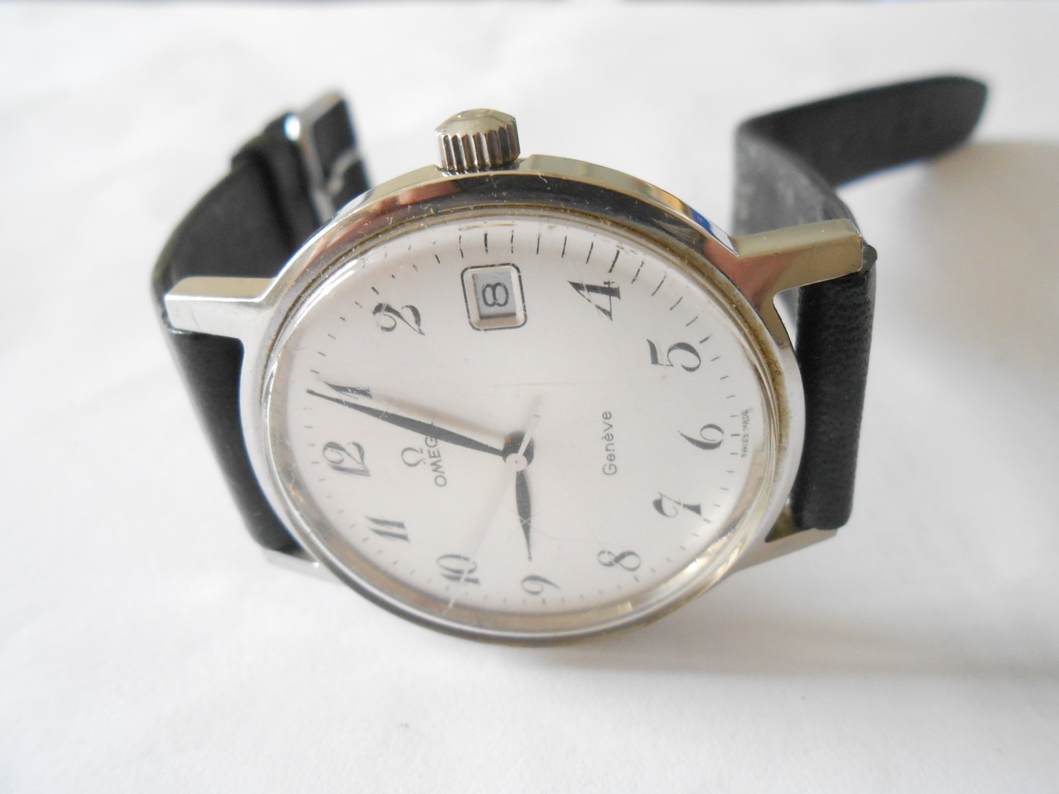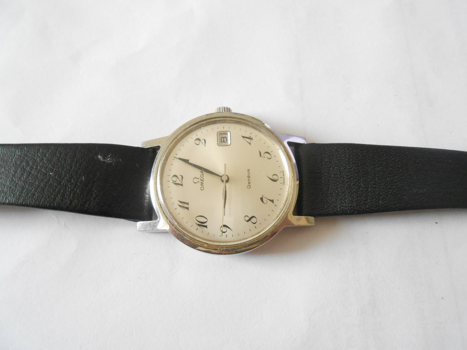 A gentleman's Omega wristwatch in a stainless steel case, on a black leather strap