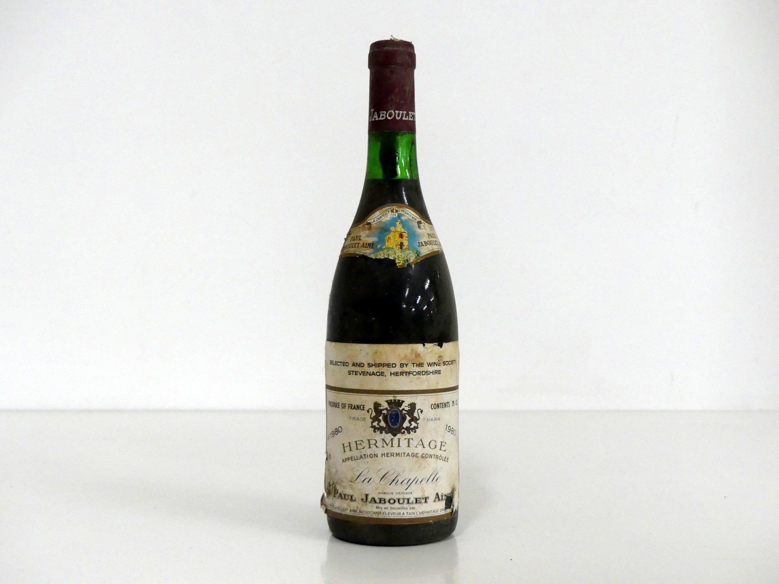 1 bt Hermitage La Chapelle 1980 Paul Jaboulet Aïne, ms/us, vsl bs, vsl torn/sl stl, Wine Society shipping label