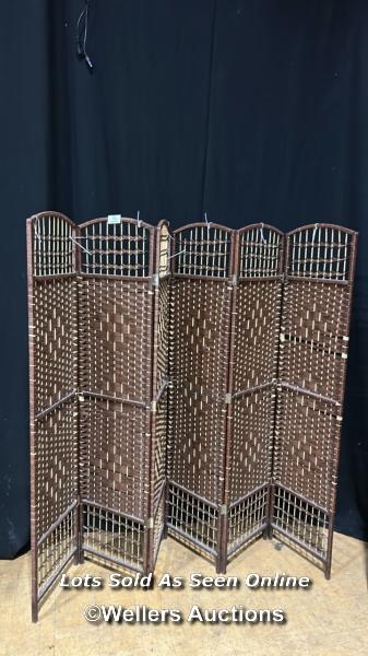 Six panel folding screen, each panel 170cm (h) x 40cm (w) / Buyer will be responsible for removal, located in the large hall / Lot Location: The Tropicana, Marine Parade, Weston-Super-Mare, North Somerset, BS23 1BE