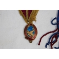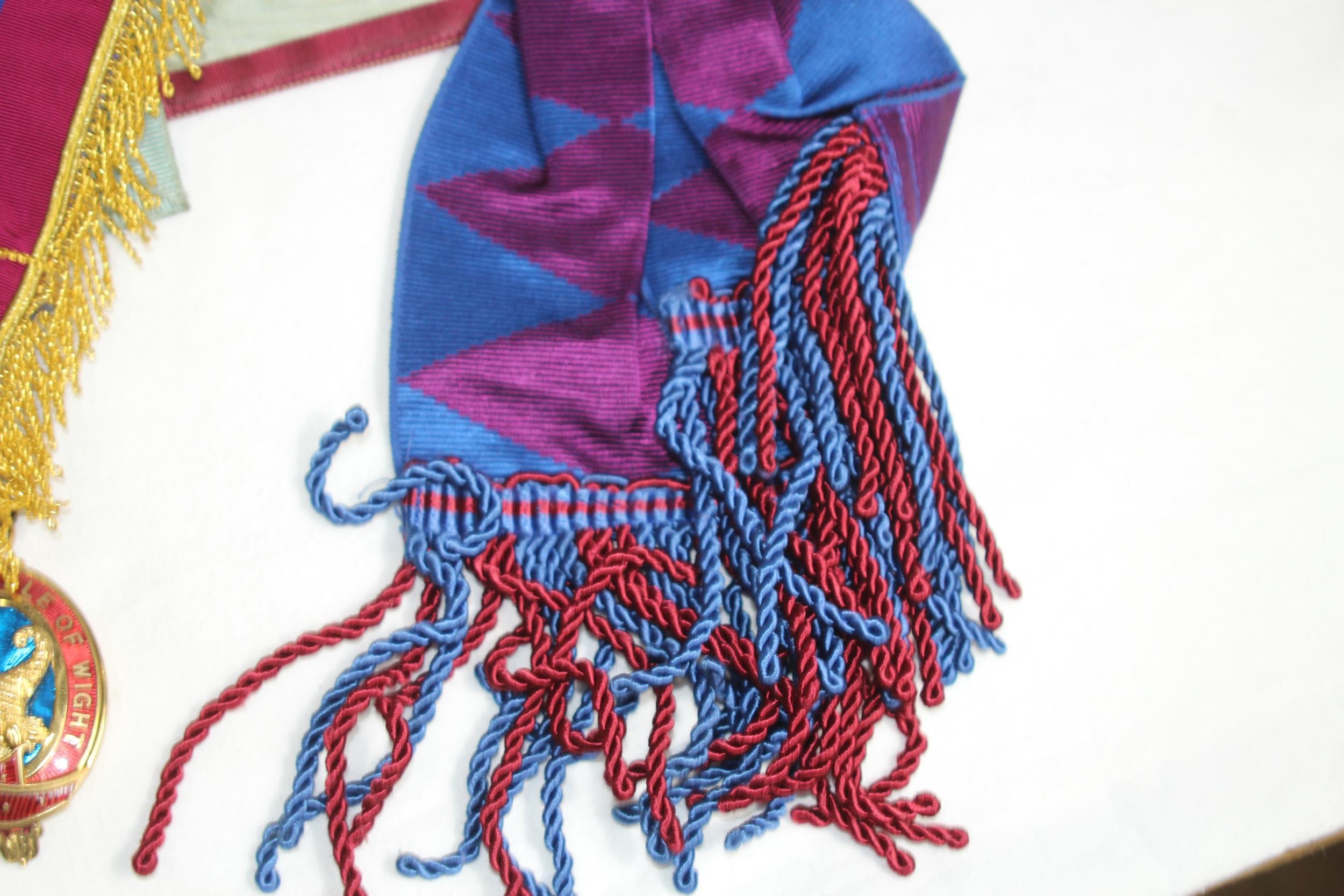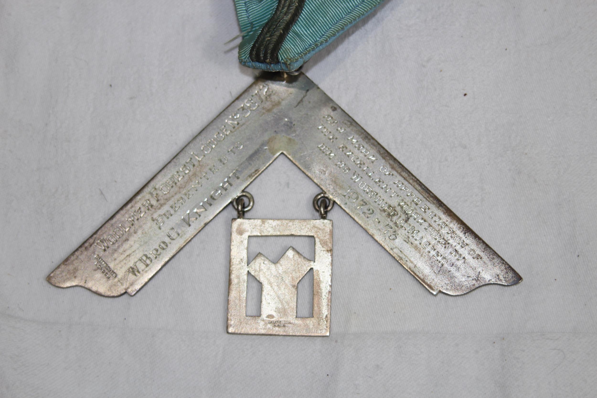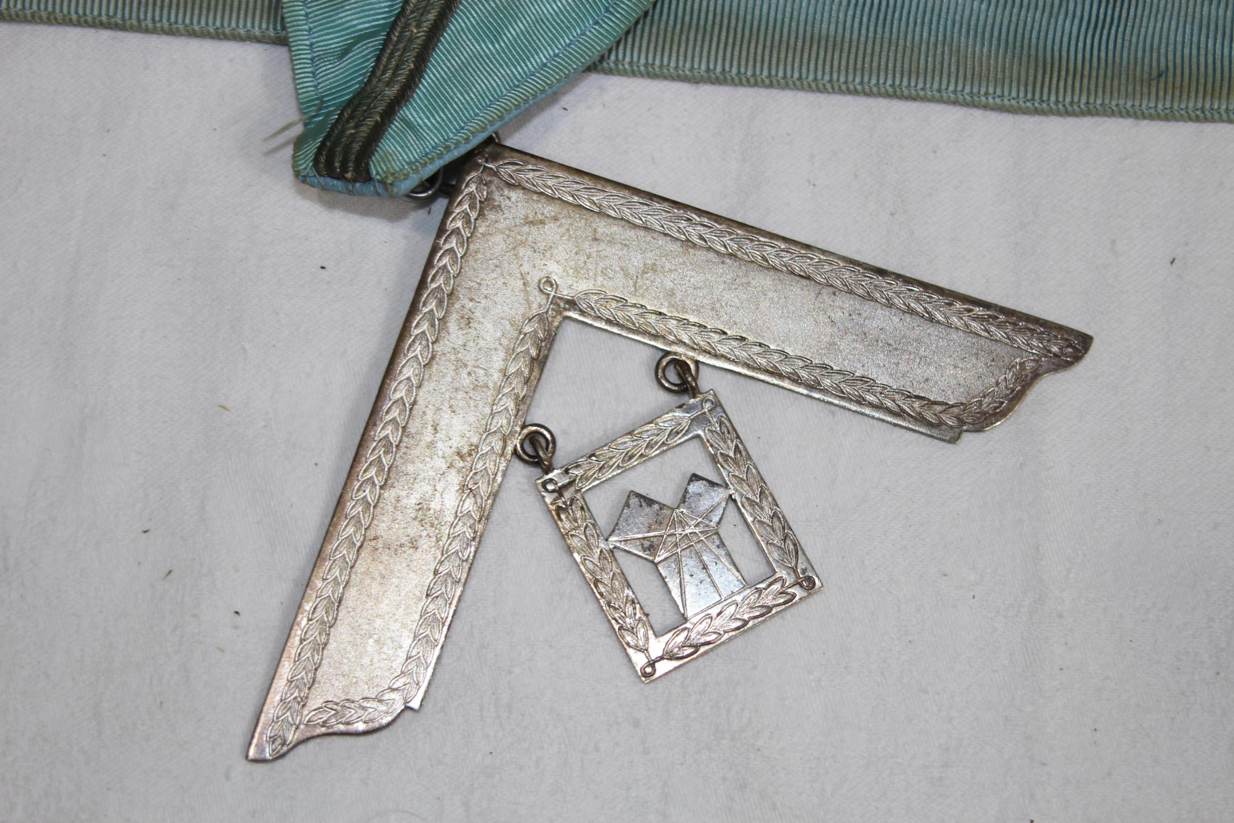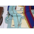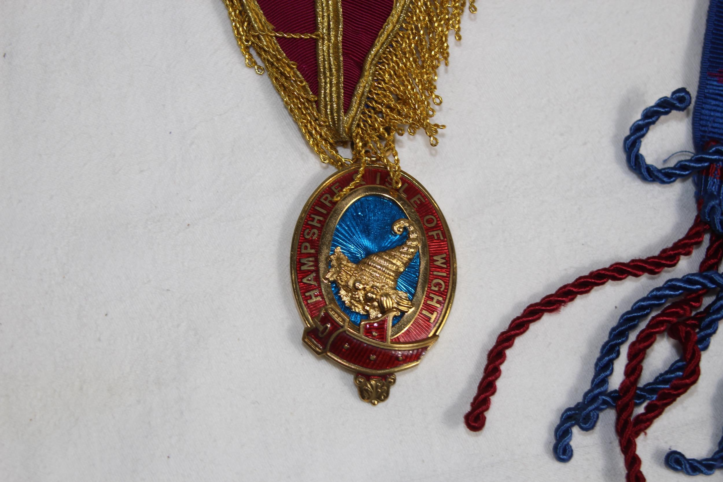 TWO VINTAGE LEATHER CASES WITH MASONIC JEWELLED COLLARS, APRONS, EPHEMERA AND SELECTION OF MASONIC MEDALS/JEWELS