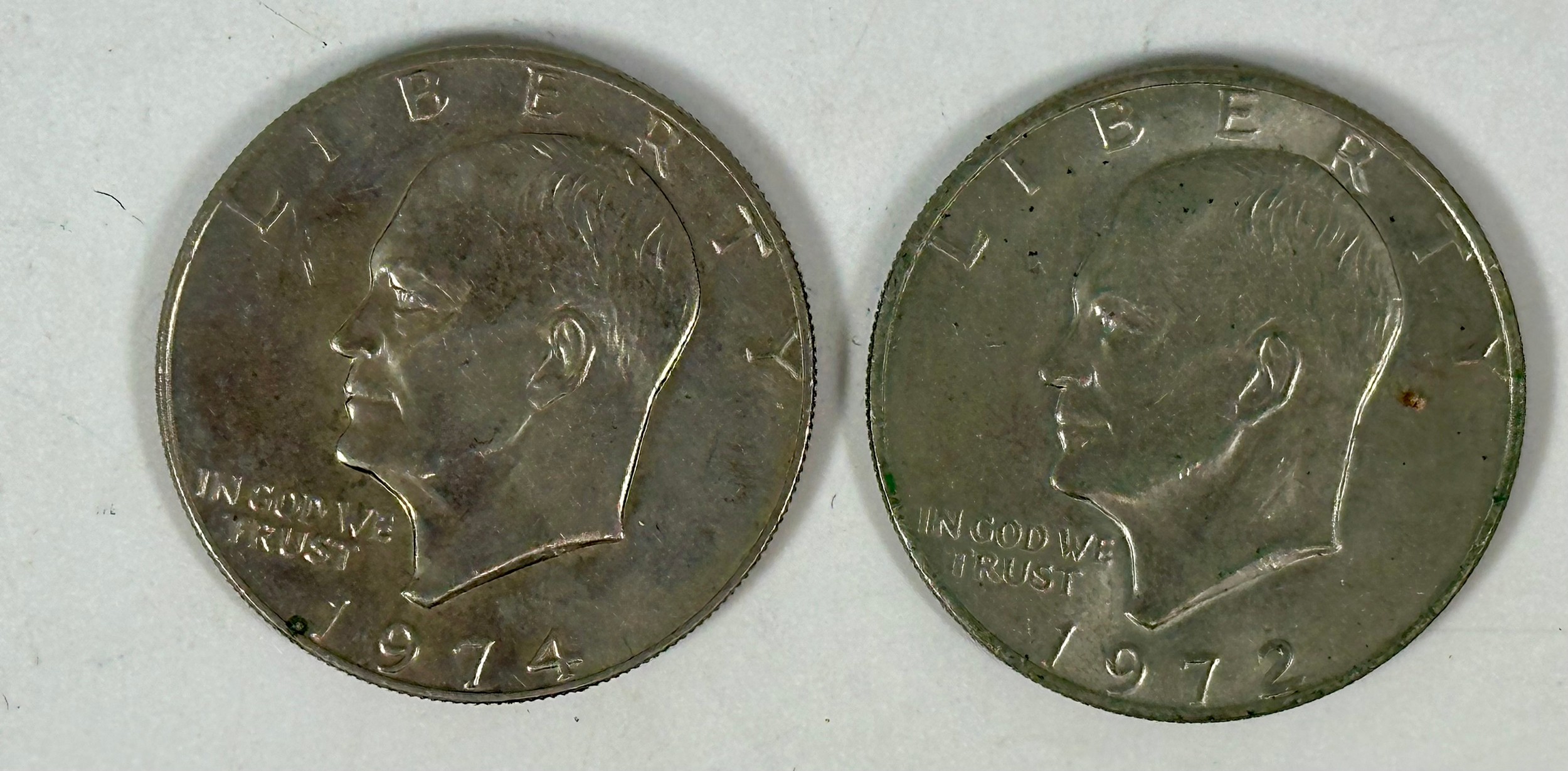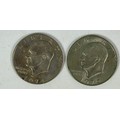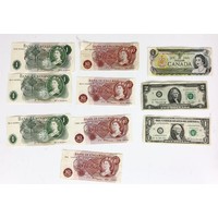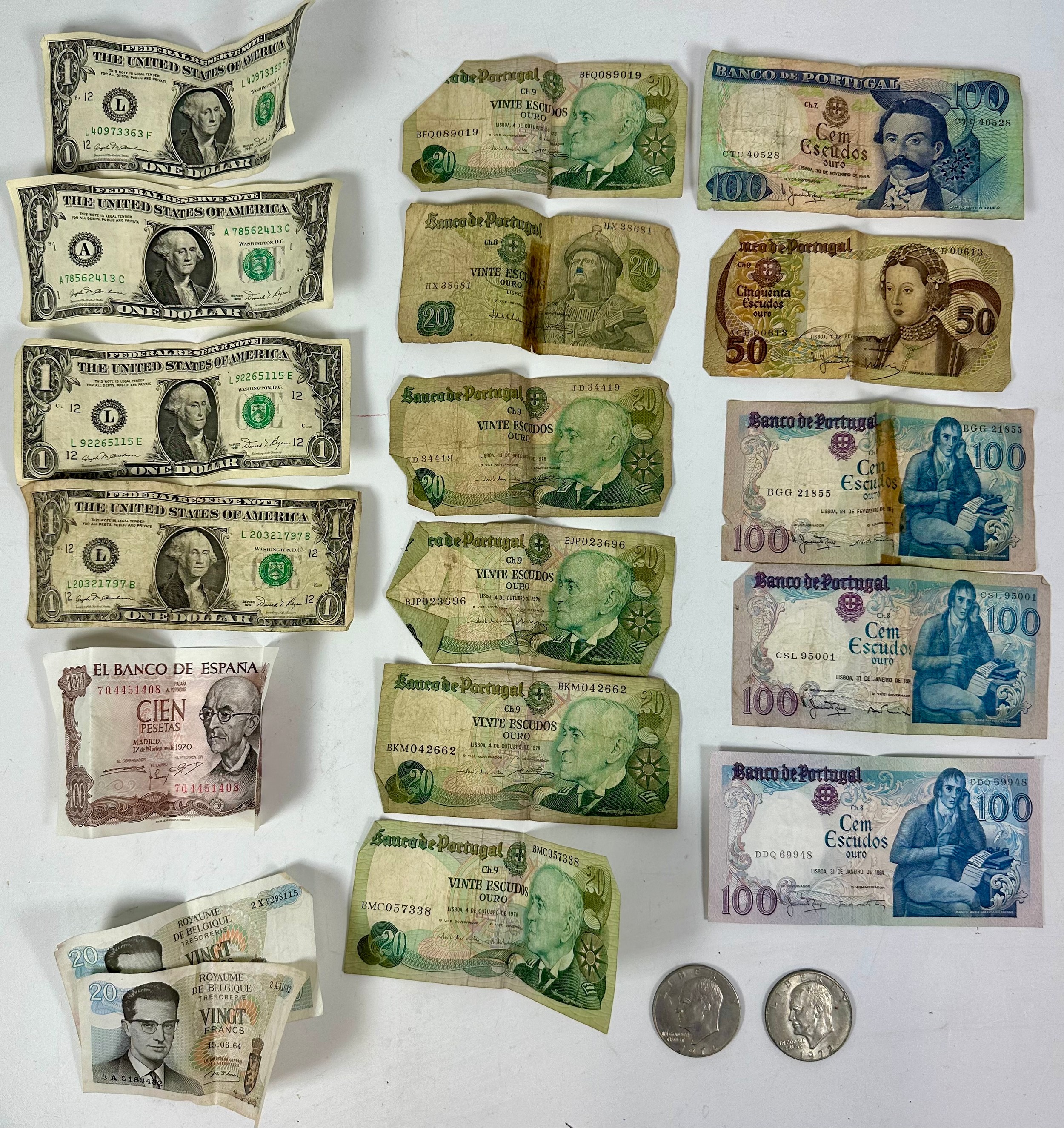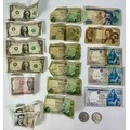 FOREIGN BANKNOTES AND 2 LIBERTY DOLLARS, 1972 AND 1974