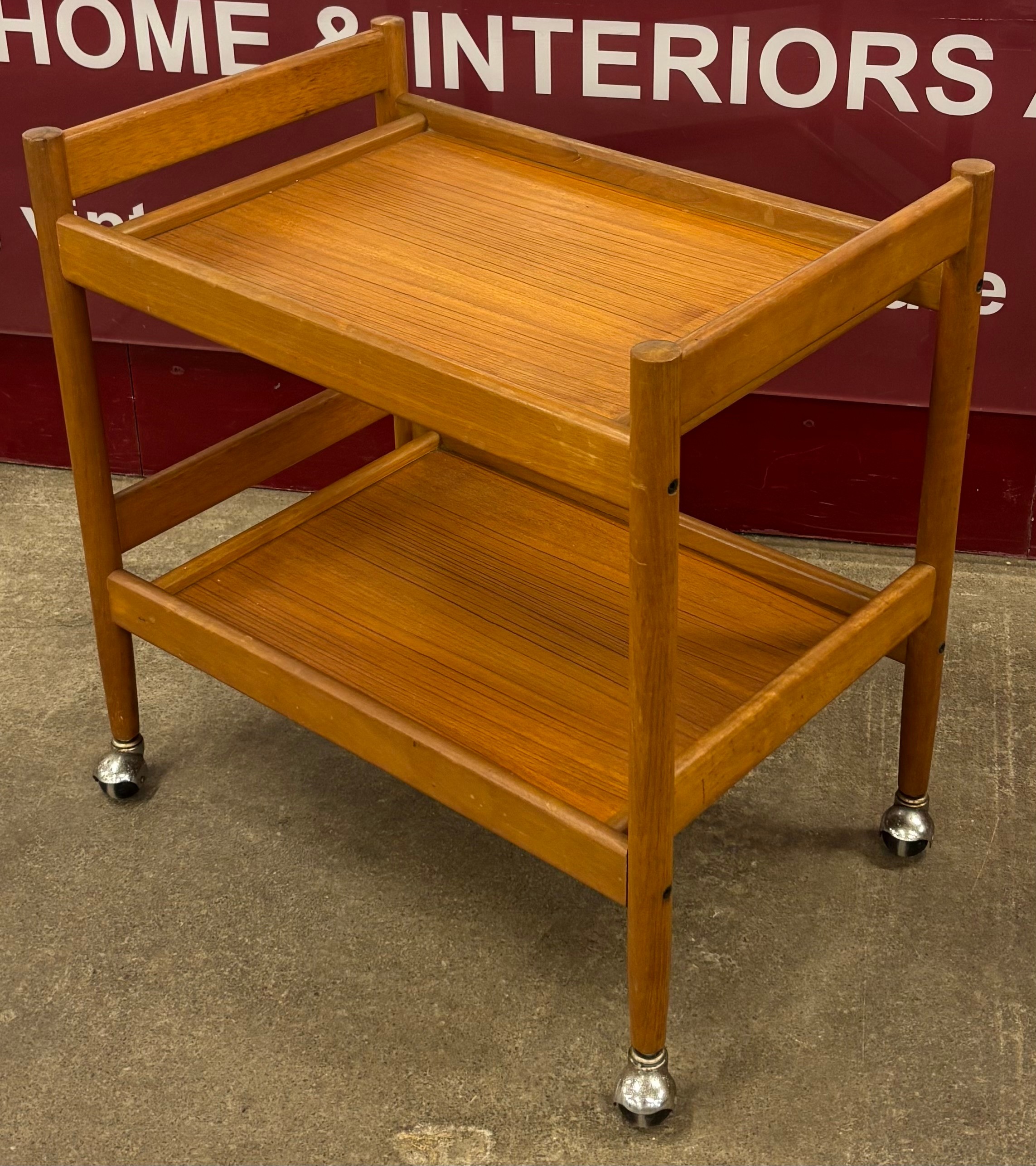 A Danish teak two tier cocktail trolley