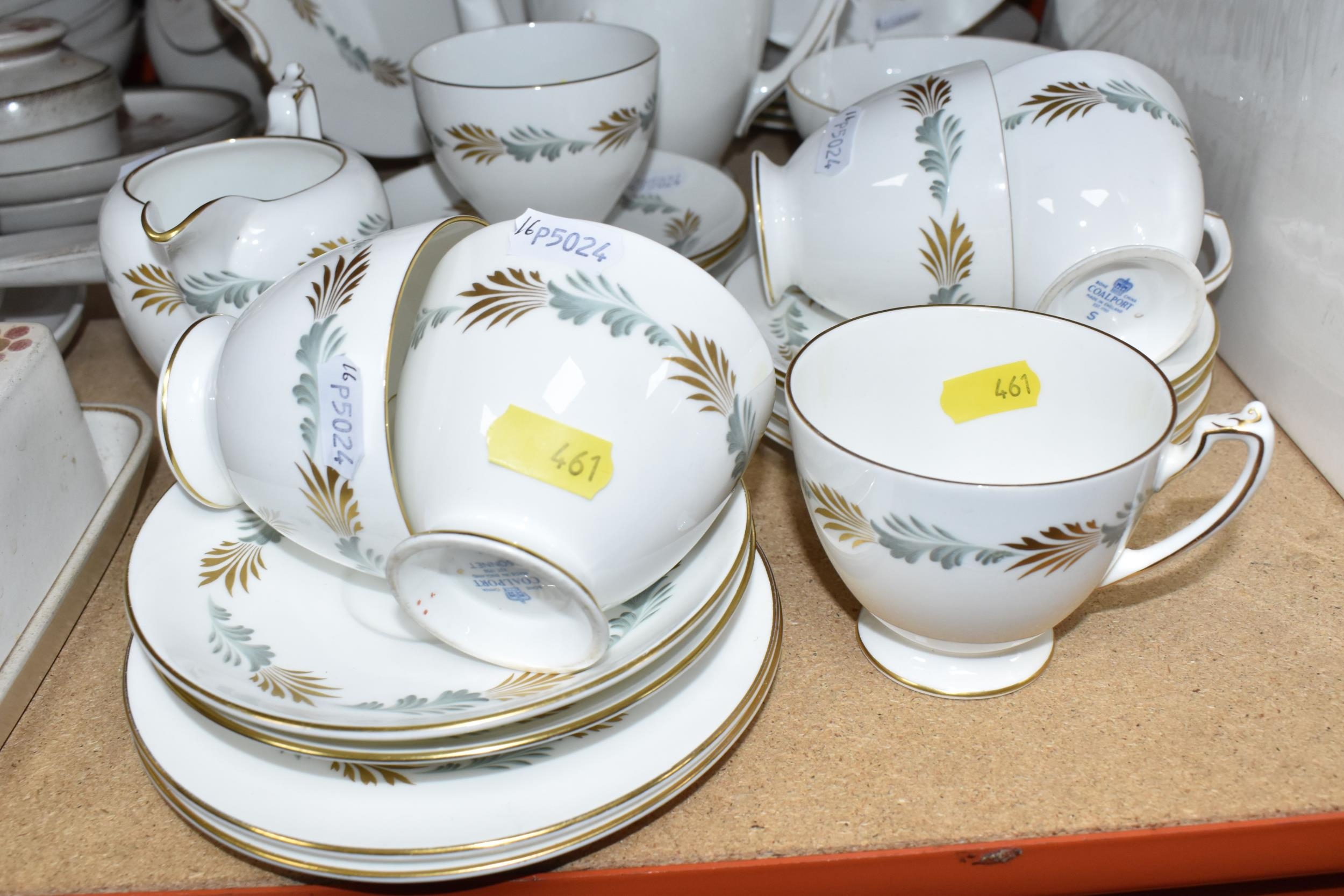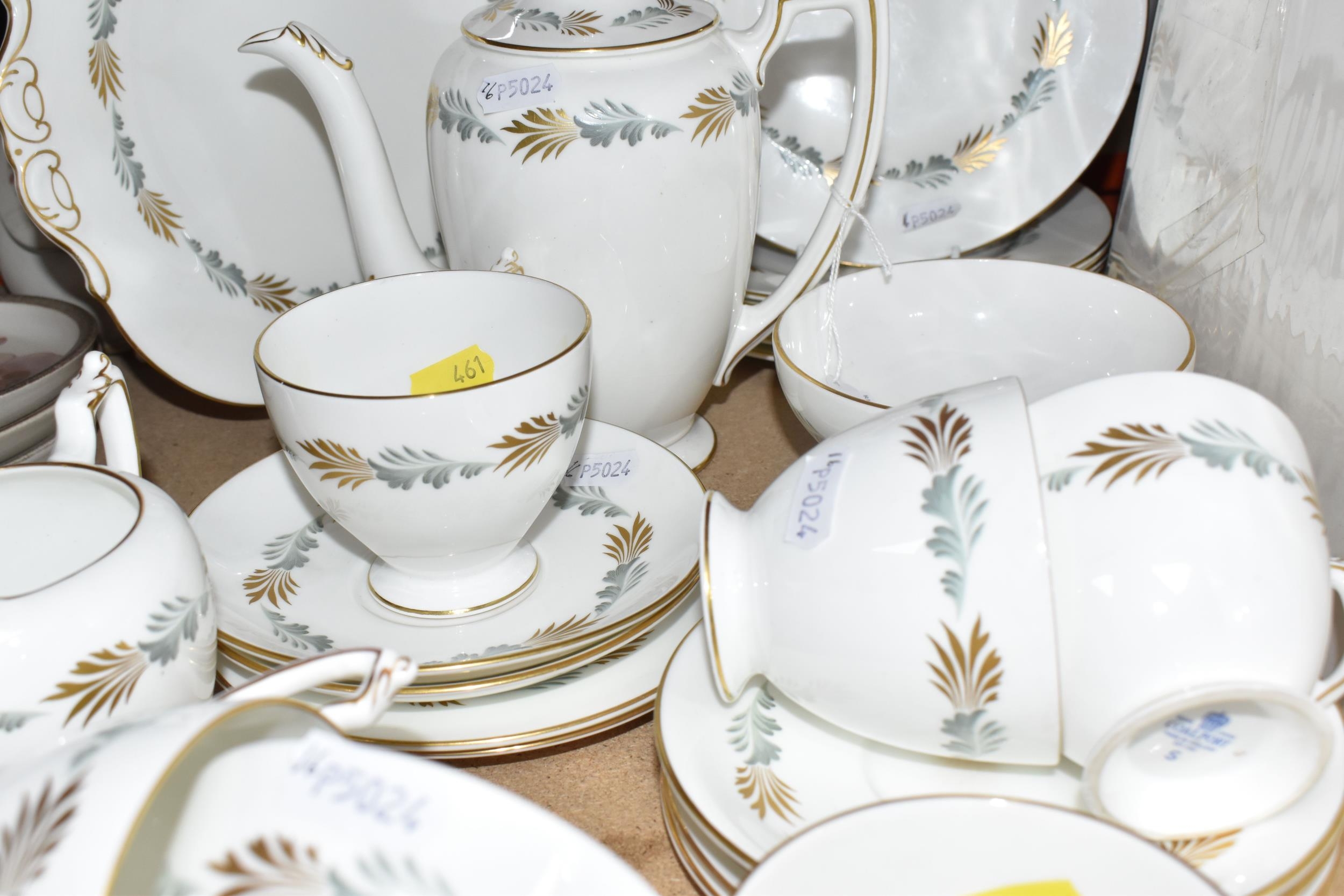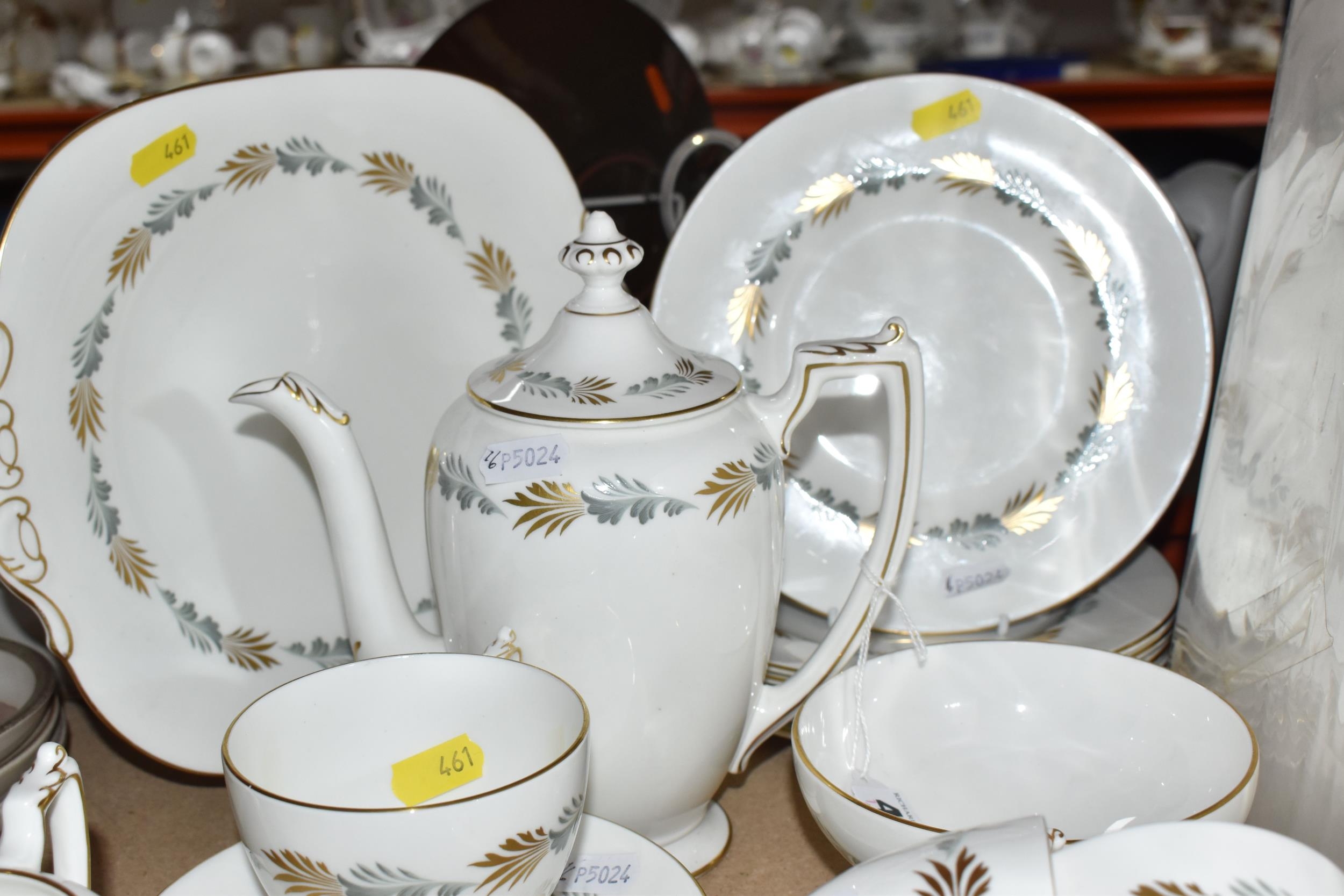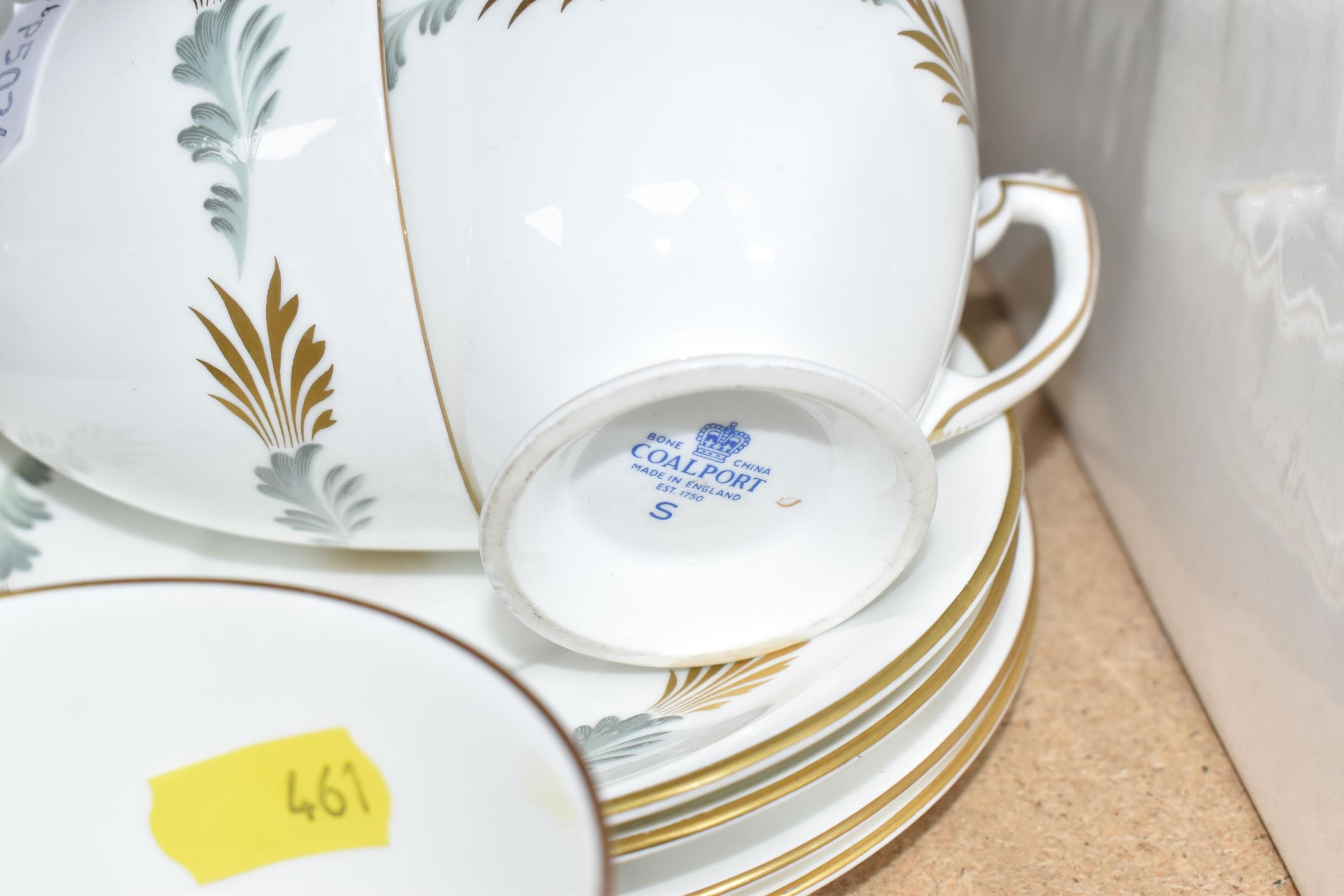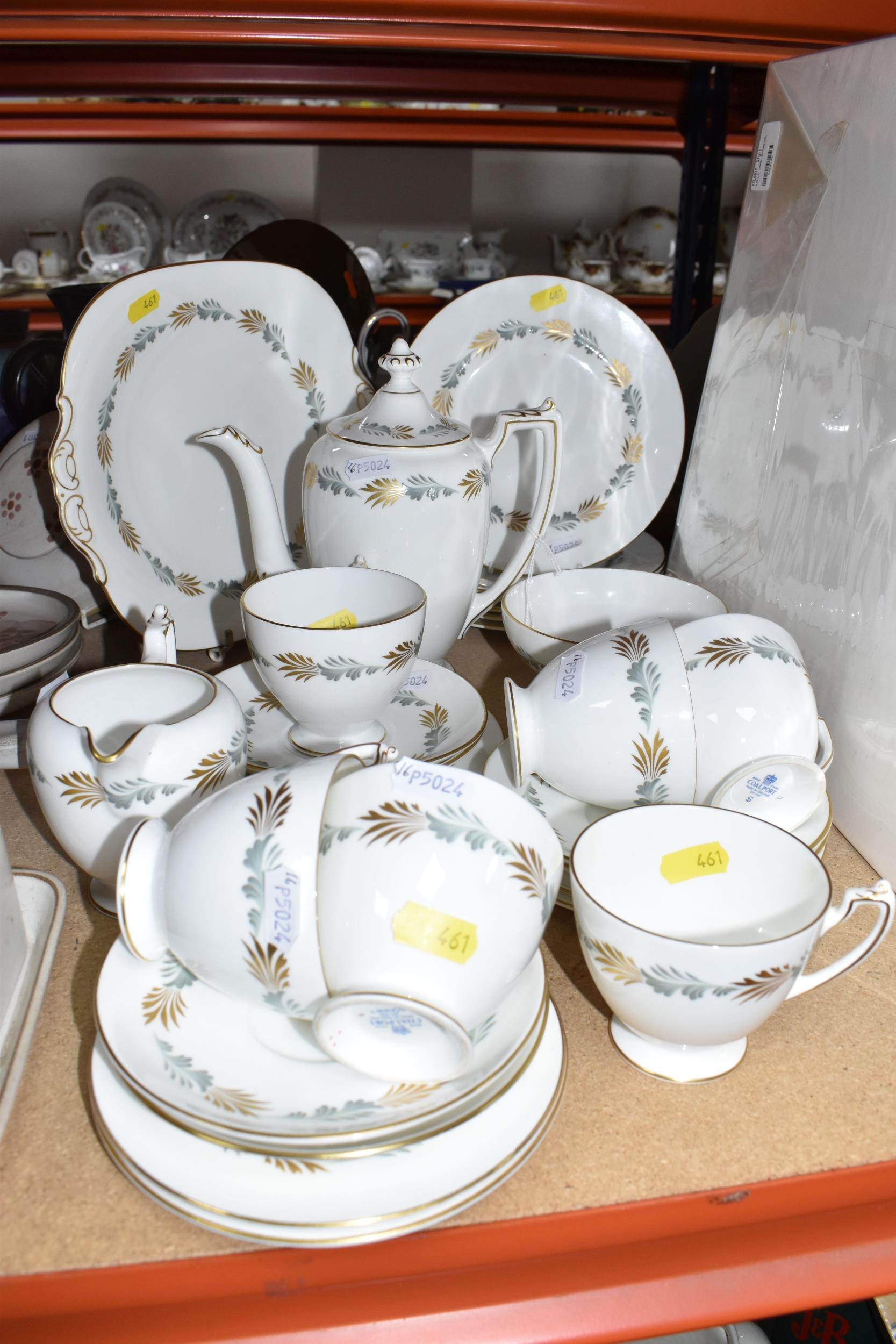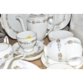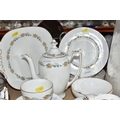 A TWENTY NINE PIECE COALPORT 'SONNET' COFFEE SET comprising a coffee pot (with a hairline crack near the handle), six coffee cups, six saucers (two cracked), six side plates (one with a hairline crack), a milk jug, a sugar bowl, a double handled cake plate, six dessert plates (29) (Condition Report: main issues listed above, some items could benefit from a clean, plates have light scratches indicative of use)