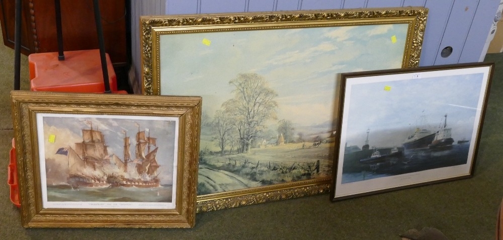 Three pictures and prints, The HMY Britannia entering Maryport Harbour, limited edition by E D Walker etc