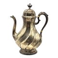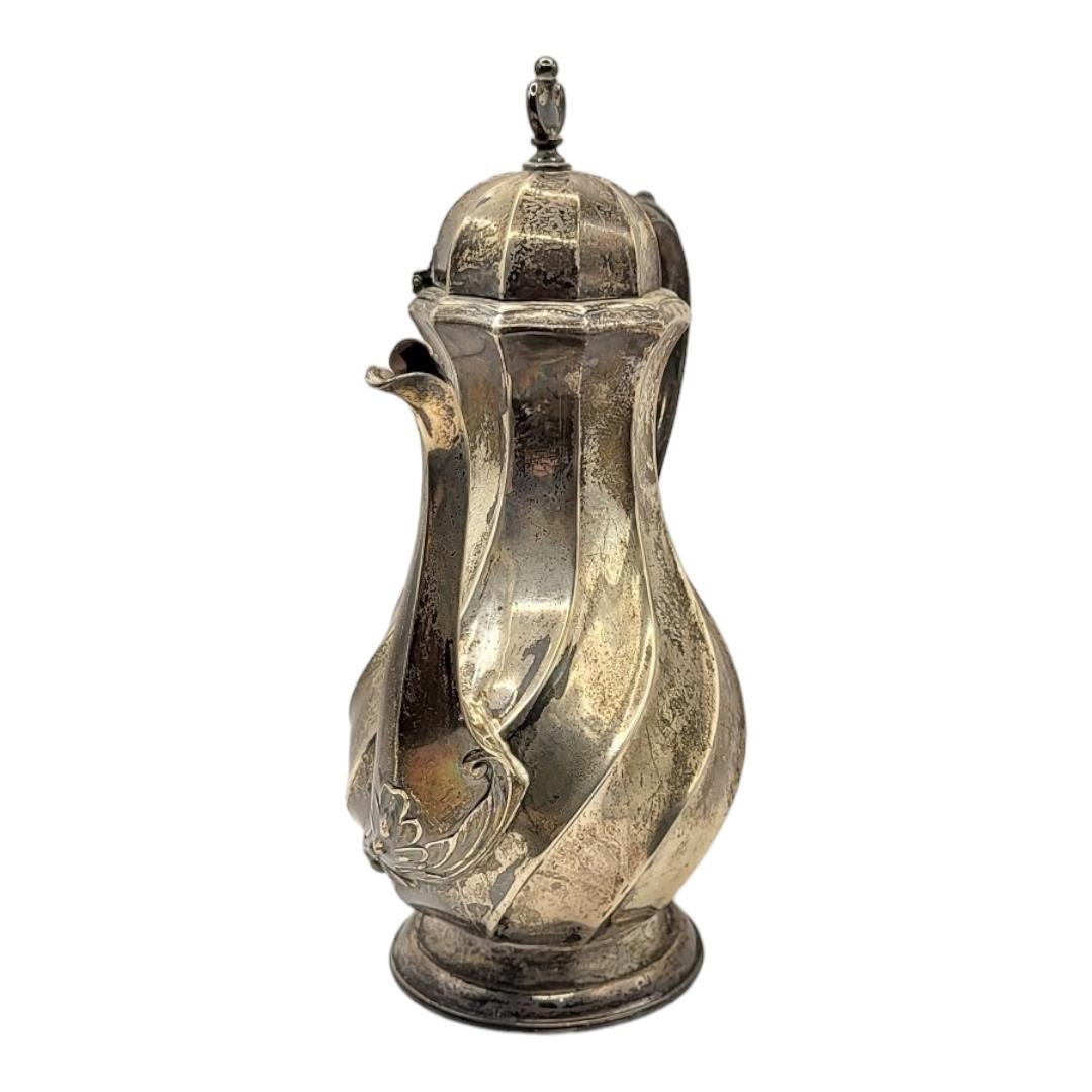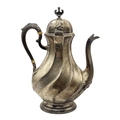 JOHN ROUND & SON LTD, A VICTORIAN ART NOUVEAU SILVER TEAPOT, HALLMARKED SHEFFIELD, 1894. Having stylised fluted body and lid, attached to an acanthus leaf thumb grip handle, raised upon ovular base.