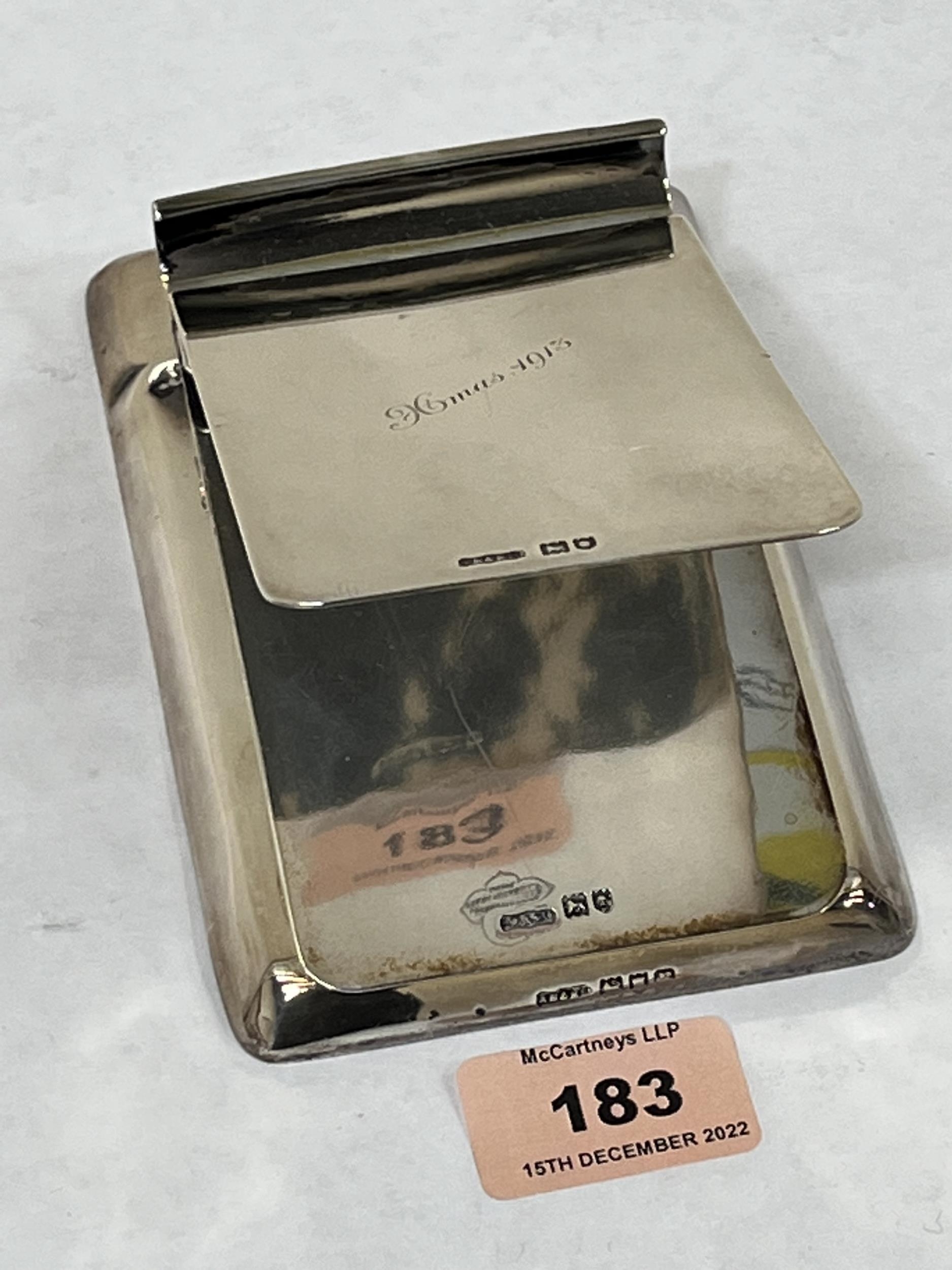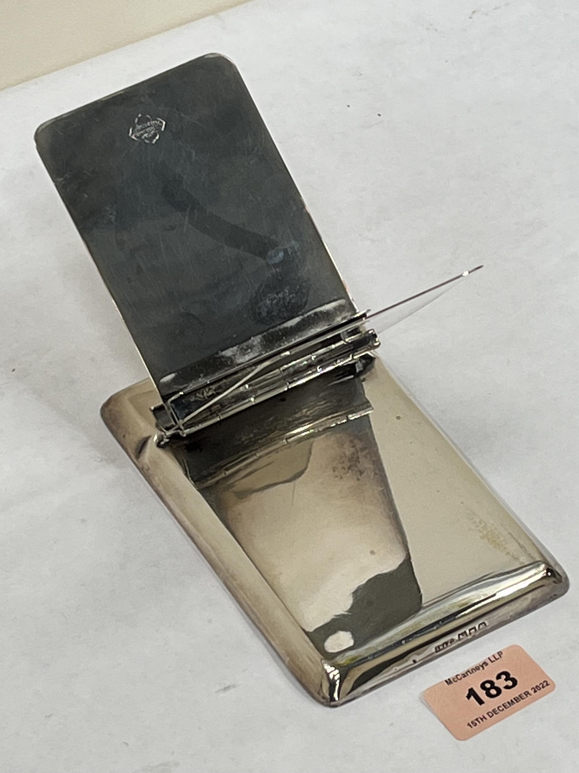 A George V silver notebook desk stand by A. Barrett & Sons, Piccadilly. Engraved 'Xmas 1913'. London 1912. 5½' high
