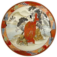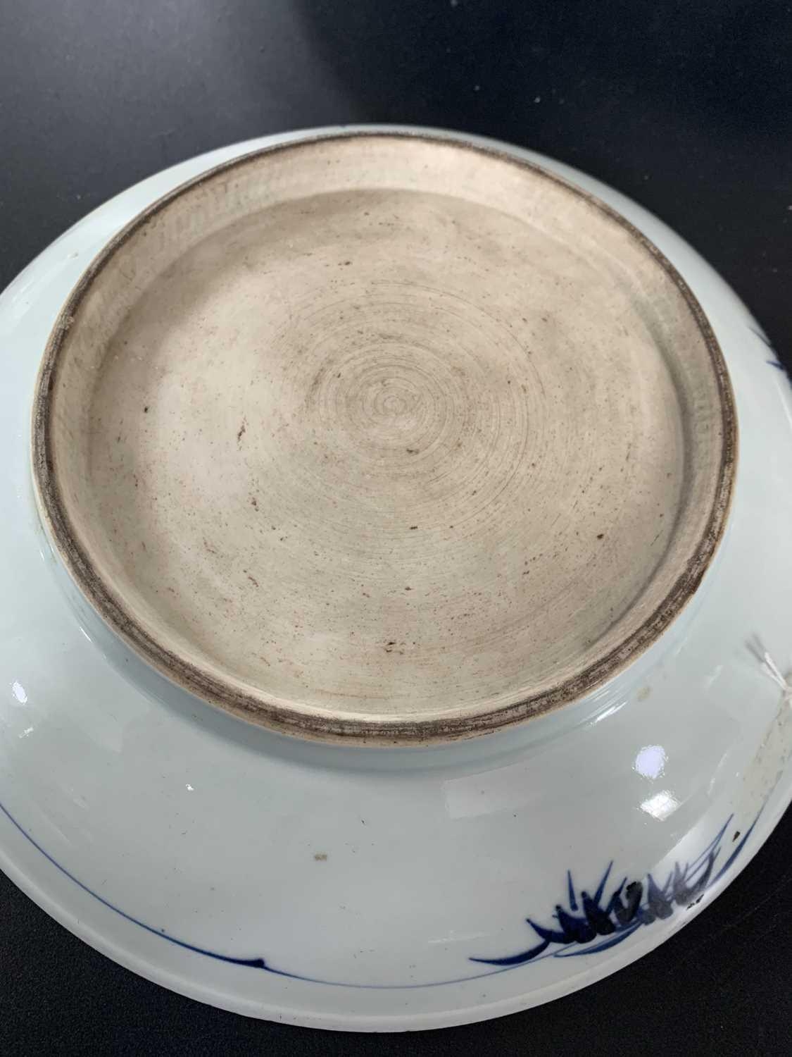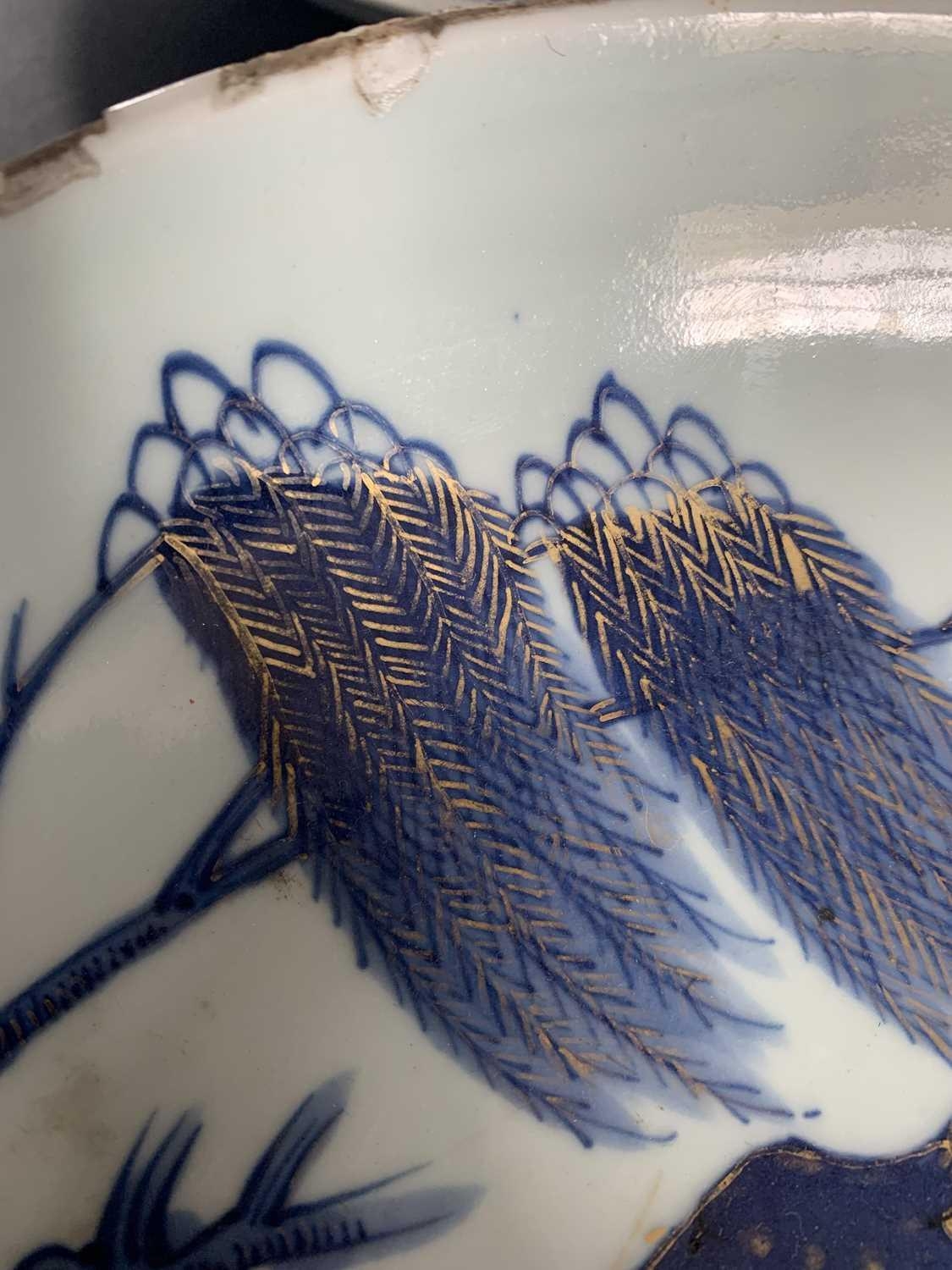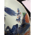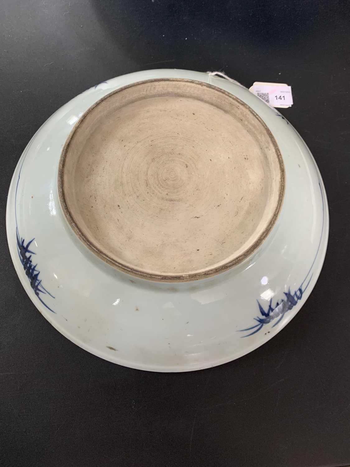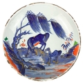 A Chinese Imari porcelain dish, 18th century. With horses in a landscape and standing beneath a willow tree, height 6.5cm, diameter 28cm. Many chips on the rim. Extra images on our website www.davidlay.co.uk