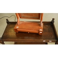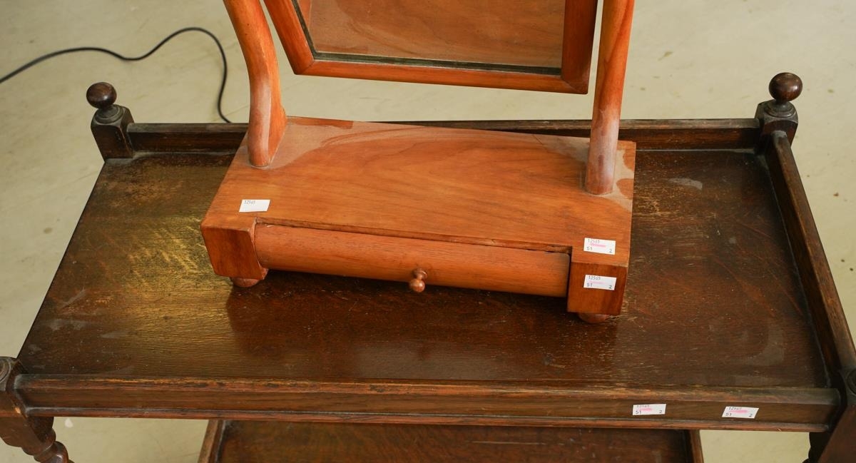A 1920s oak two tier tea trolley and a late victorian satin walnut toilet mirror with draw to base (2)