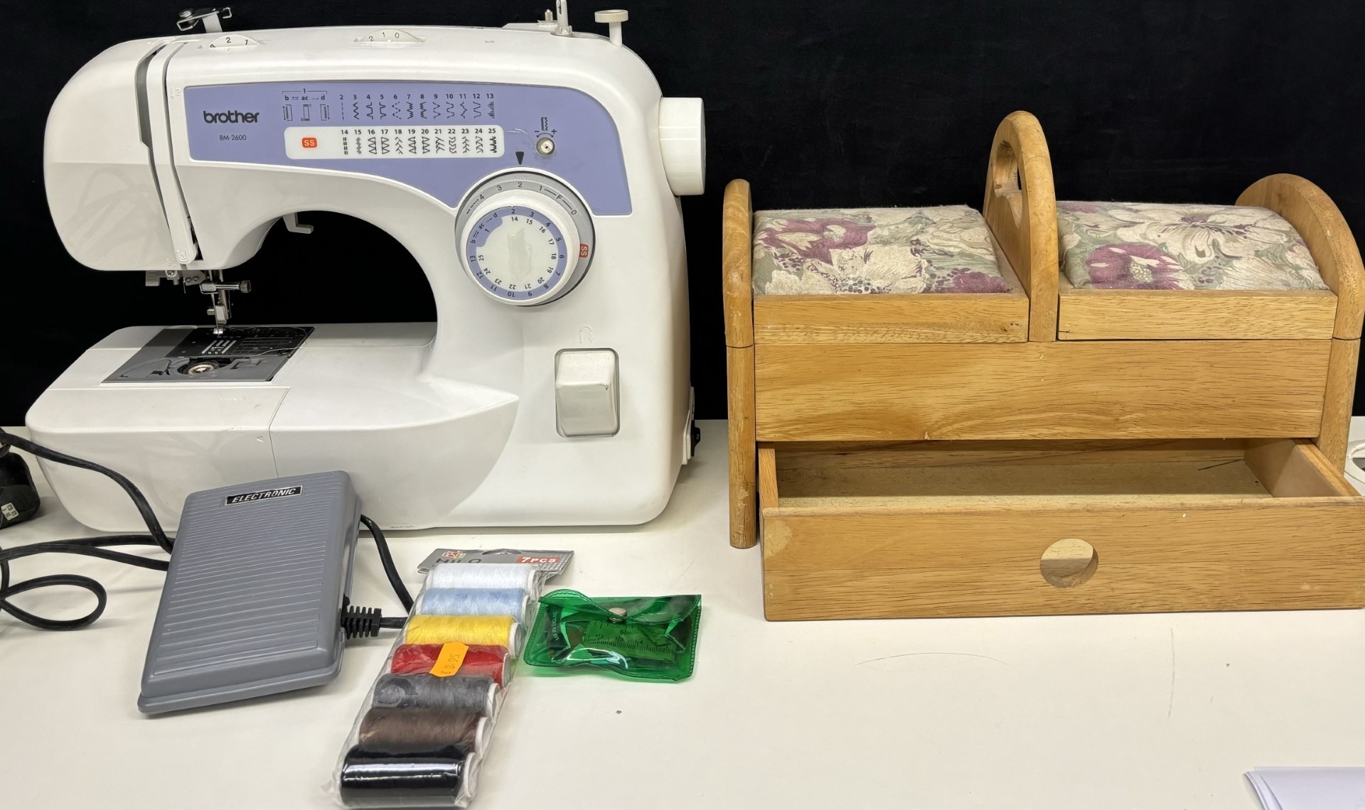 Brother BM-2600 electric sewing machine, together with sewing box & accessories.